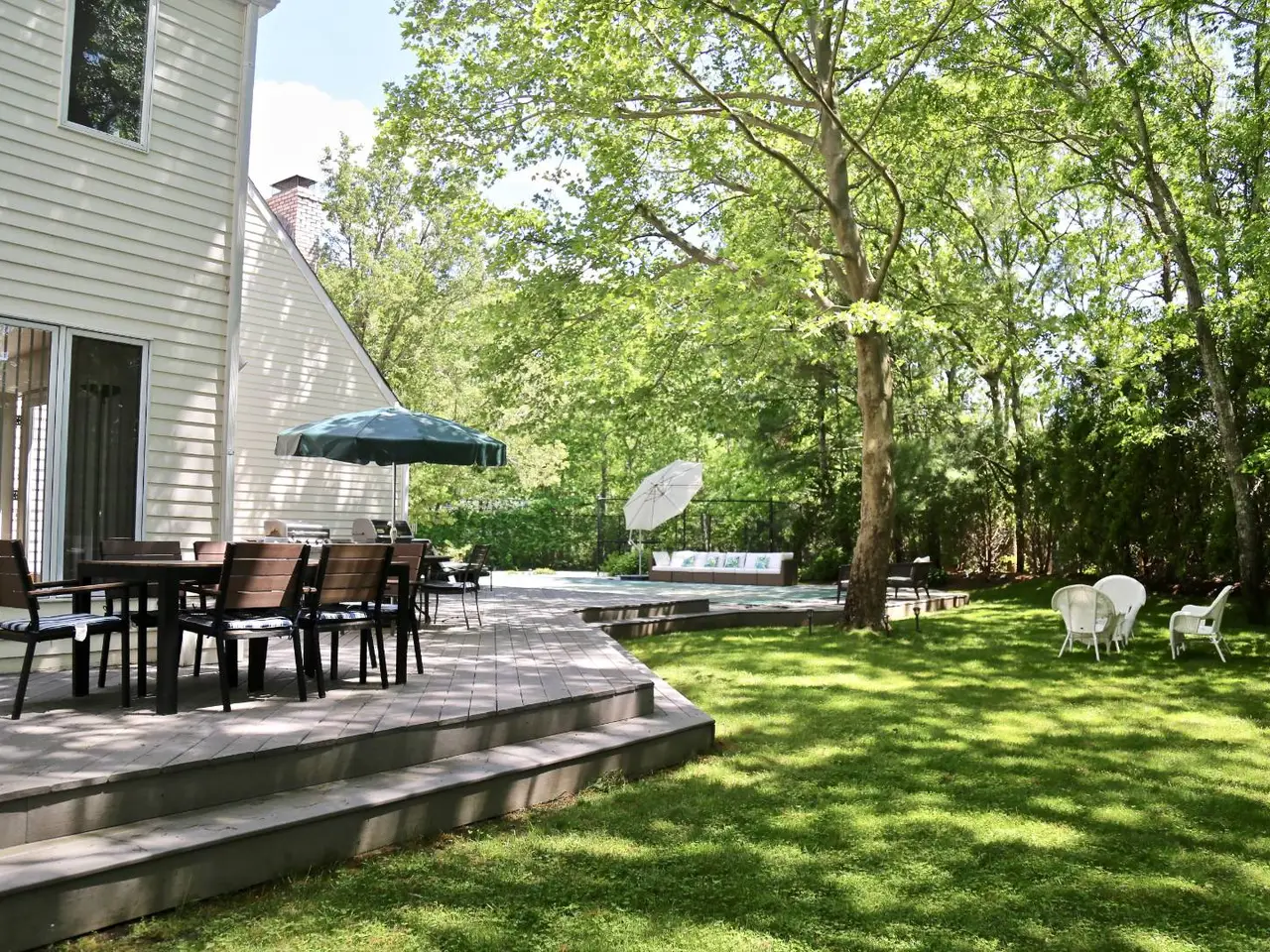 In a lovely location, in the village of Quogue, resides this 4 bedroom, 4.5 bath Contemporary. The home has an open living room, nice-sized kitchen, and dining room. The primary suite has a cozy loft and an enclosed porch overlooking the pool. The private yard features a large deck surrounding the heated pool, and a Har-Tru tennis court. Only minutes to the beach and village. Listing ID: 756412