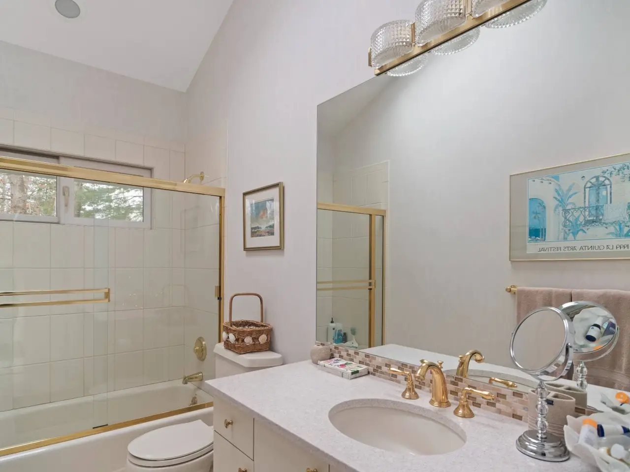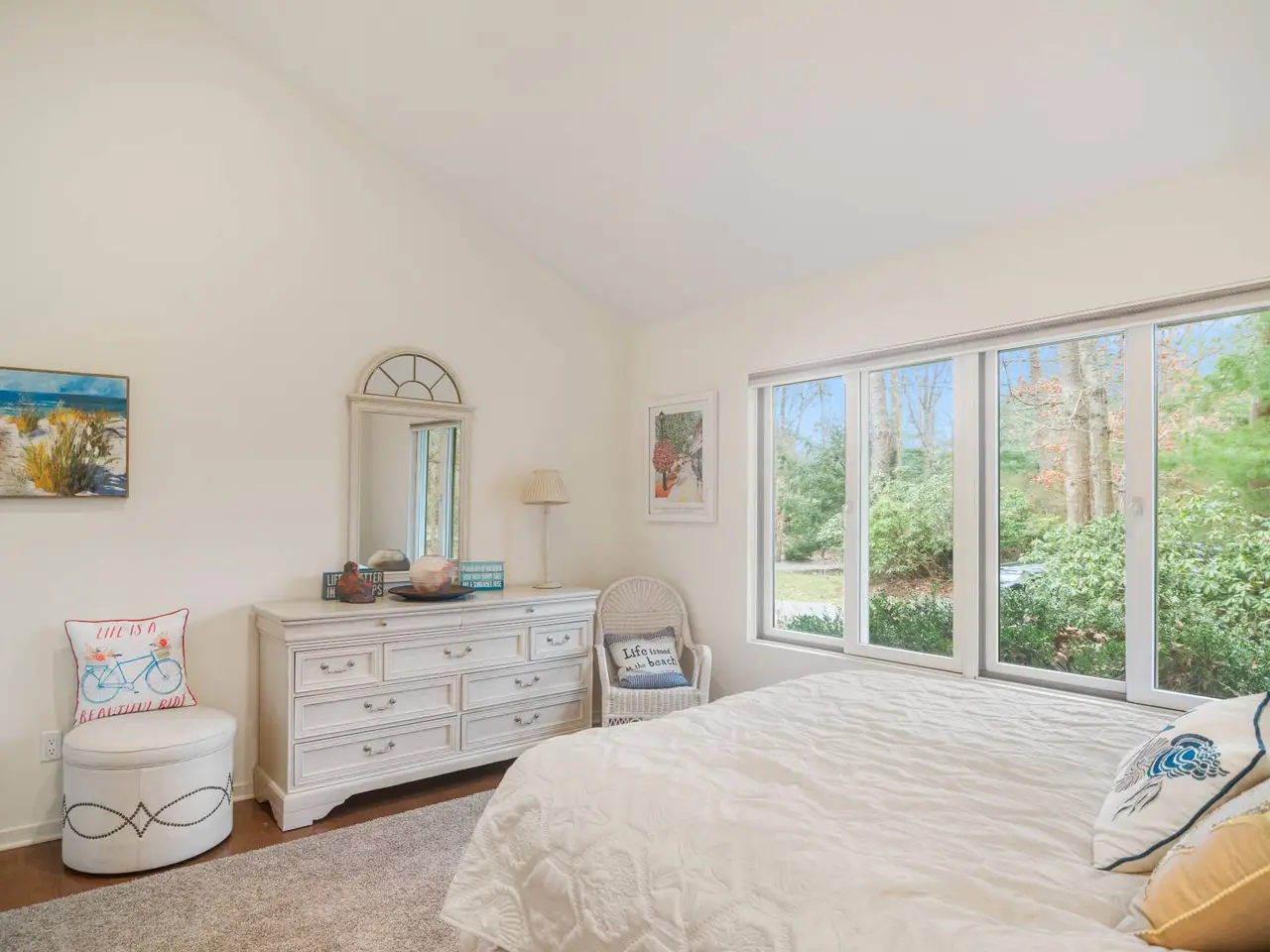 Down a private lane awaits this hidden gem. Open and filled with light the first floor hosts a great room with fireplace and built-in bookcases, a large renovated kitchen, a junior primary en suite bedroom, two guest bedrooms, hall bath and a powder room. The spacious primary suite with spa bath is set on the second floor for added privacy. An expansive deck is perfect for outdoor entertaining. A heated gunite pool, outdoor shower and a recently added outdoor pergola with a living room area create the perfect summer getaway. Access to the residents-only Quogue Village Beach. Listing ID: 737170