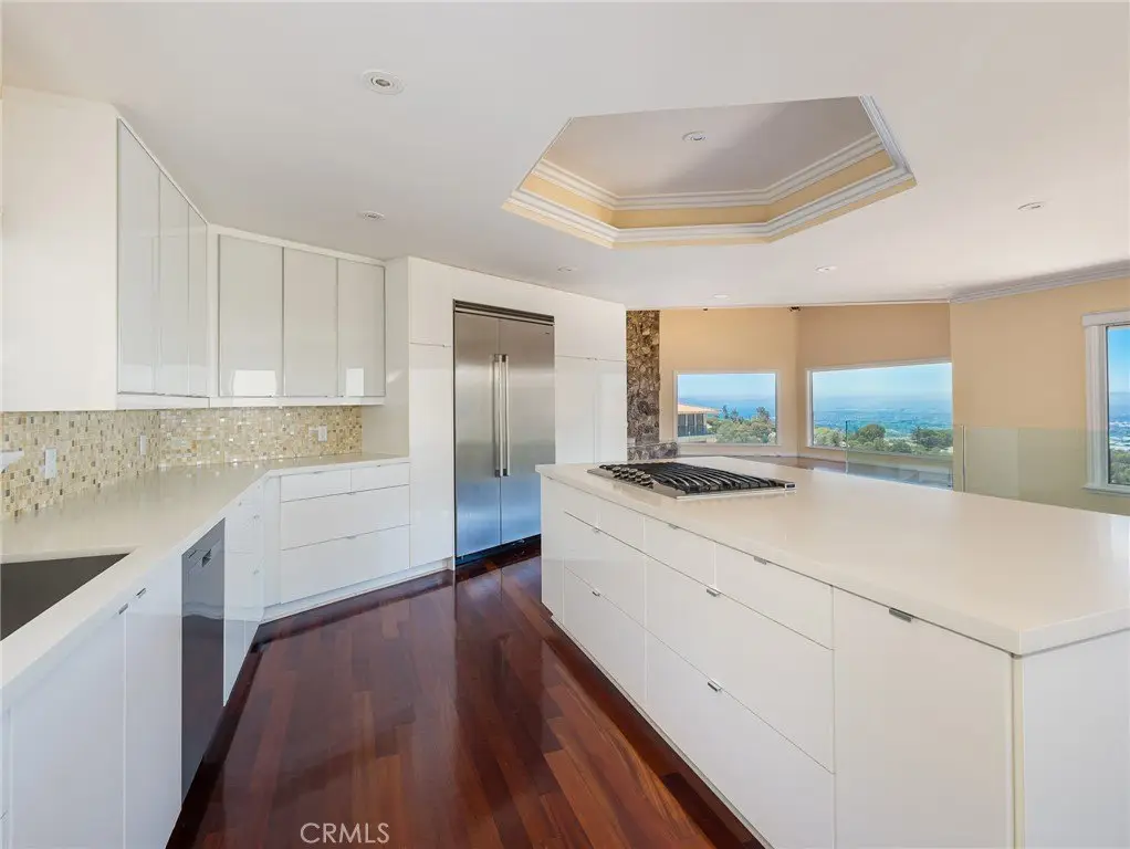 Absolutely amazing view!! This gorgeous, 4-bedroom contemporary home will treat you, your family and guests to an amazing panoramic view from Malibu to Long Beach from nearly every room in the house. A WALL OF GLASS GREETS YOU AS YOU ENTER THE HOME EXPOSING THE MOST JAW DROPPING VIEWS. Spacious and modern, the open floor plan and completely remodeled island-style kitchen with custom cabinets with soft touch close make this home perfect for entertaining. Further amenities include: stainless steel built-in appliances, cherry wood floors throughout including plank cherry wood stairs, double-pane windows, double glass doors for the main entrance, a 3-zone, high-efficiency heating and central cooling system, interior and exterior glass railings to maximize view from all rooms, recessed 4-inch lights with dimmer controls, high vaulted ceiling, three gas fire places and a wet bar. Plus, there are two patios and one large deck where everyone can enjoy the beautiful sunset views. There are custom build-in closets with ample storage both in the home and garage. Residents have access to the top-ranked Palos Verdes Schools such as Mira Catalina Elementary, Miraleste Intermediate, and your choice from two of the top ranked high schools in California. A must see, this listing will not last long!