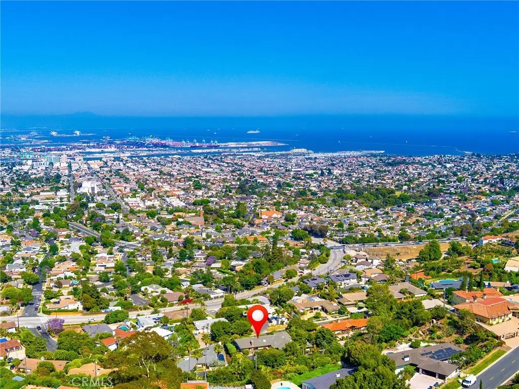 Mid Century Modern estate perfectly positioned off a quite private road with epic views of ocean, city and beyond. Recently appraised at 2.8 million the 7 bedroom 6 bath 4317 sq ft home sits on over half an acre and is being priced sharply at $2,540,000. The private road opens to a 7 car motor court with a two car garage and carport and lush landscaped grounds. Double doors open to black slate floors and a wall of glass exposing the views of ocean and city. The period perfect open floor plan is anchored by a cantilevered black slate fireplace surrounded by rustic stone. The open space maximizes enjoyment of a spacious living room and dining area ensuring return visits from friends and family. The granite kitchen with stainless steel appliances, butlers pantry and tons of cabinets opens to the amazing views. The master wing is oversized and enjoys numerous wood built-ins and a detailed orientated bathroom with separate tub and shower. Additional features include AC, work shop, very rare street to street lot with access on both sides. The Hawaii inspired parklike grounds are priceless with a huge covered patio area and mature fruit trees and flat grass areas. Fruit trees include apple, citrus, fig, avocado, apricot and more. Award winning Palos Verdes schools include Mira Catalina elementary, Miraleste Middle school and two of the best high schools in the State. Minutes away, you can enjoy a game of golf or dine at Terranea Resort. Or take a stroll through one of the many hiking trails, either way you are surrounded by the best of California coastal living.