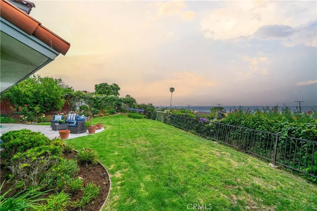 Enjoy the Coastal views and lifestyle in this wonderful home. Located within walking distance to the beautiful bluffs of the Palos Verdes Peninsula and easy access to Terranea Resort and multiple area golf courses and shopping. Featuring a 5 bedroom floor plan that is highlighted by a spacious living room with high beamed ceilings and panoramic ocean views. The kitchen / family room creates a great gathering spot for family dinners and entertaining. A lushly landscaped rear yard is ideal for outdoor living with a patio area overlooking the pacific ocean and catalina island.