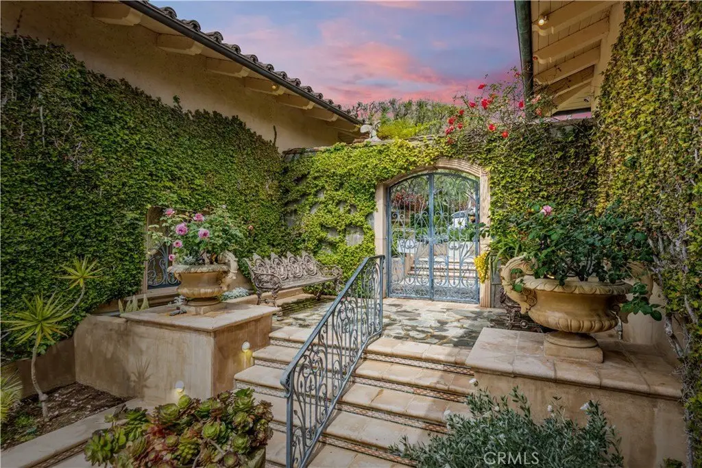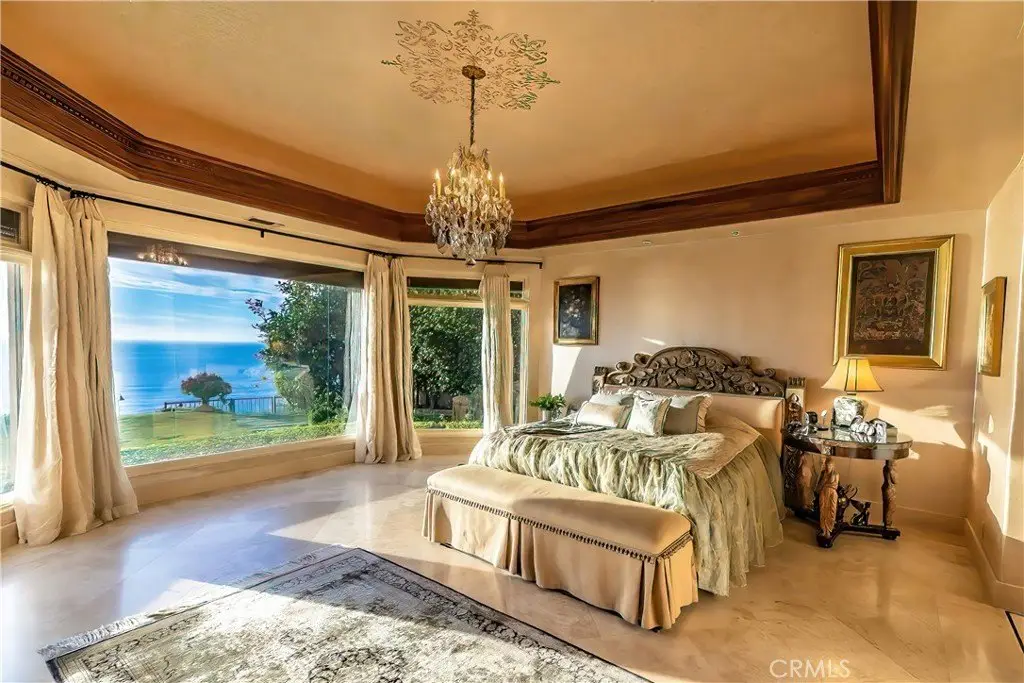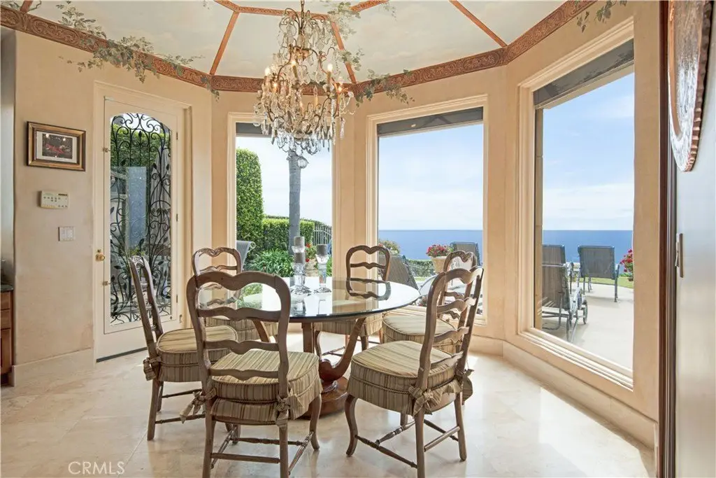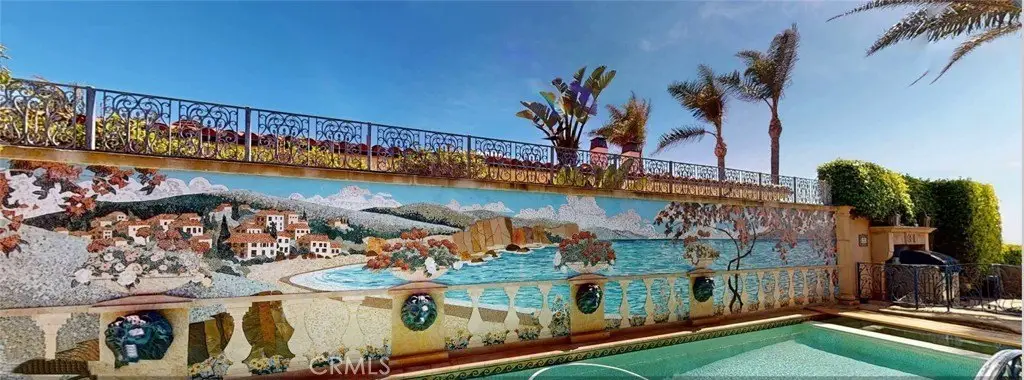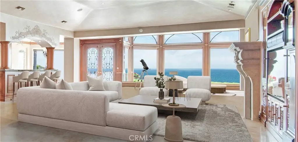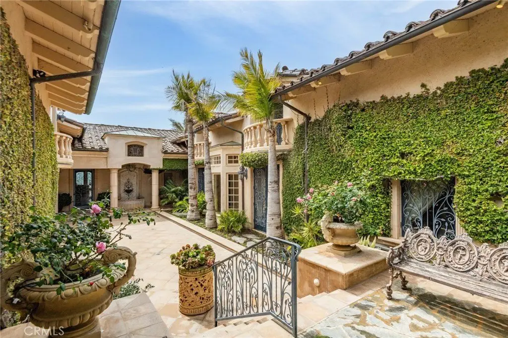 Welcome to a truly rare bluff-top home in Lunada Point and boasting unparalleled views of Catalina to Malibu. This magnificent home harkens back to an era when craftsmanship and quality was a high priority. Architecturally stunning, this Italian and French-designed masterpiece seamlessly blends handcrafted details into a captivating marvel. The grand entrance with wrought iron gates and open courtyard with Juliet balconies sets the tone for this wonderful estate. The stunning details command your attention and feature graceful arches, vaulted ceilings, mosaic inlaid travertine floors, historic chandeliers and sconces and wood carved pillars and coffered ceilings. The graceful style offers an elegant setting with a relaxed living environment. The homes highlight is a richly detailed oceanfront conservatory room that captures the bluff-top ambiance of the property with the azure water below. The 1.2 acre lot is enhanced with a mosaic tiled pool and spa and accent wall, outdoor fireplace and BBQ and an English Garden setting with terraced pathways to the bluff top.