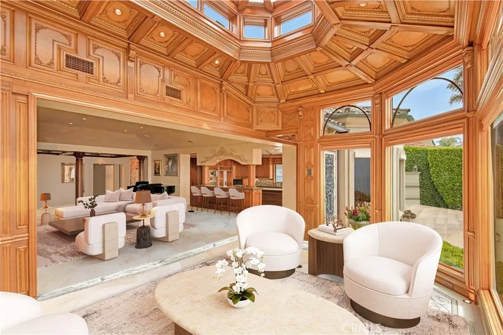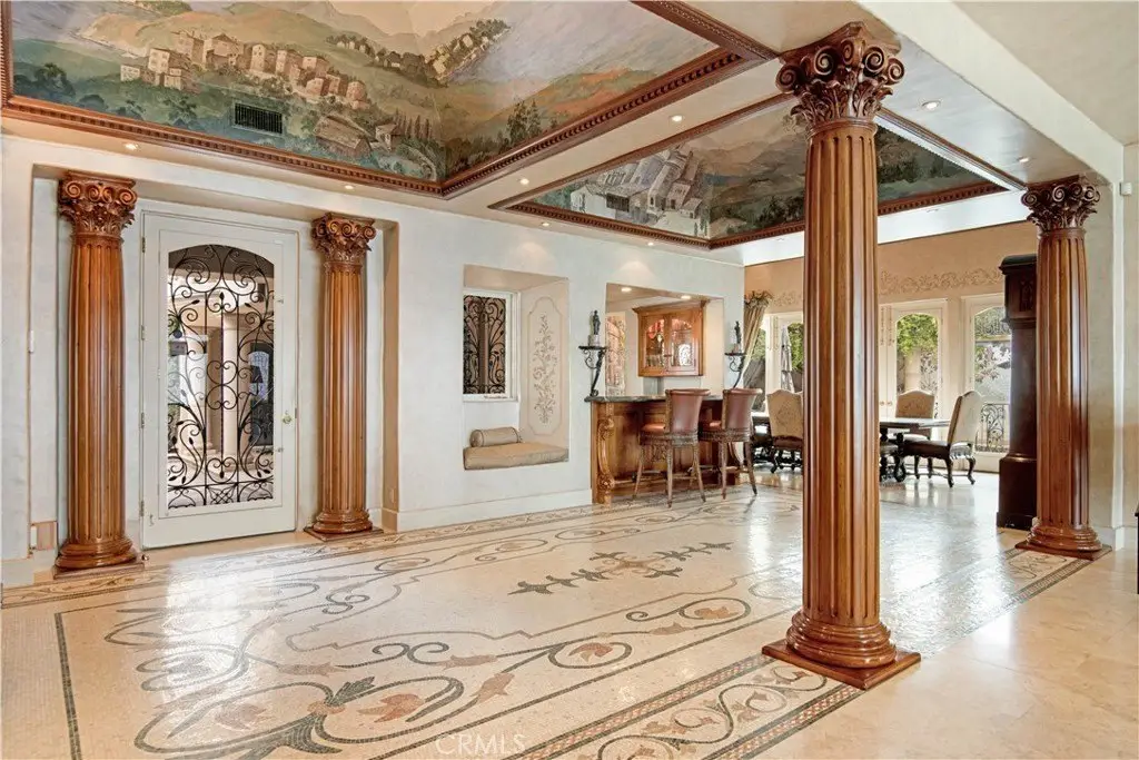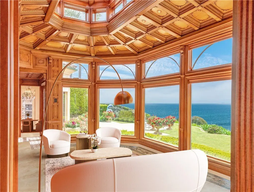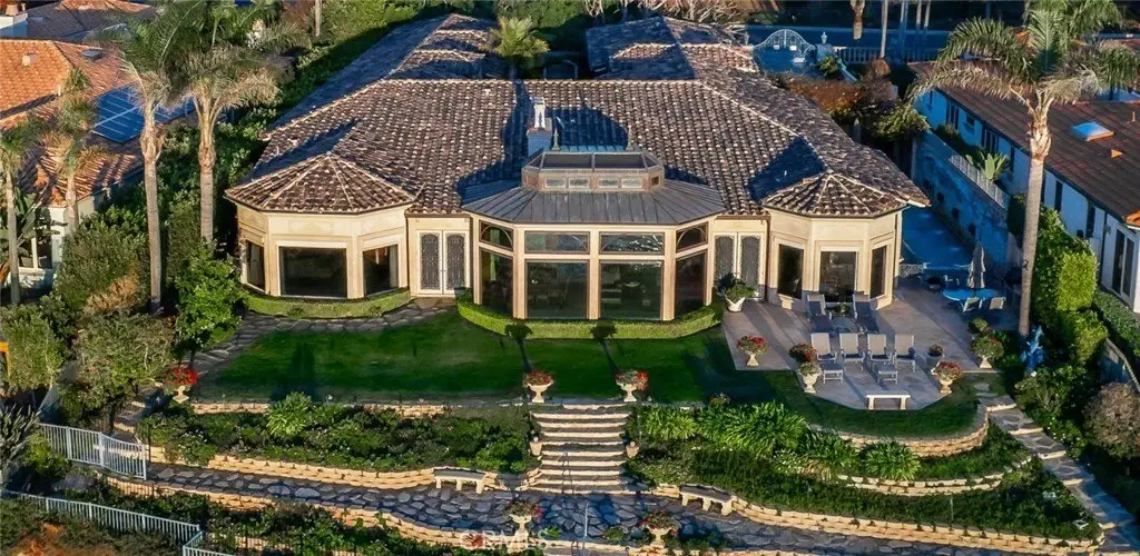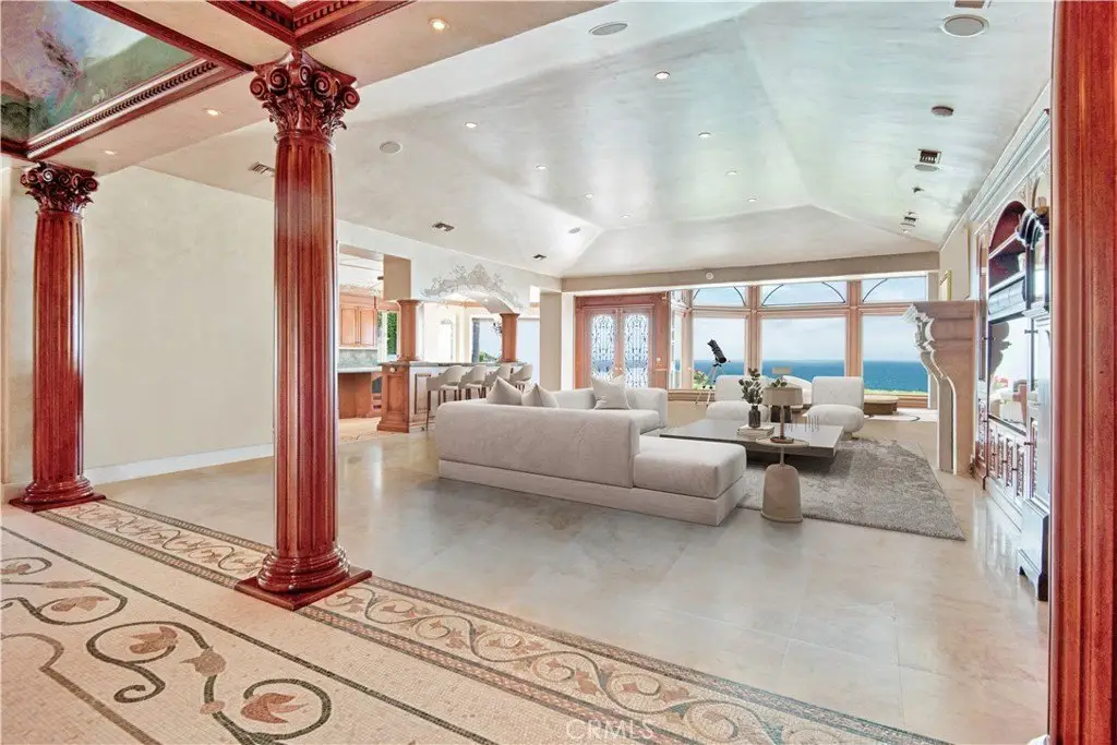 Welcome to a truly rare bluff-top home in Lunada Point and boasting unparalleled views of Catalina to Malibu. This magnificent home harkens back to an era when craftsmanship and quality was a high priority. Architecturally stunning, this Italian and French-designed masterpiece seamlessly blends handcrafted details into a captivating marvel. The grand entrance with wrought iron gates and open courtyard with Juliet balconies sets the tone for this wonderful estate. The stunning details command your attention and feature graceful arches, vaulted ceilings, mosaic inlaid travertine floors, historic chandeliers and sconces and wood carved pillars and coffered ceilings. The graceful style offers an elegant setting with a relaxed living environment. The homes highlight is a richly detailed oceanfront conservatory room that captures the bluff-top ambiance of the property with the azure water below. The 1.2 acre lot is enhanced with a mosaic tiled pool and spa and accent wall, outdoor fireplace and BBQ and an English Garden setting with terraced pathways to the bluff top.