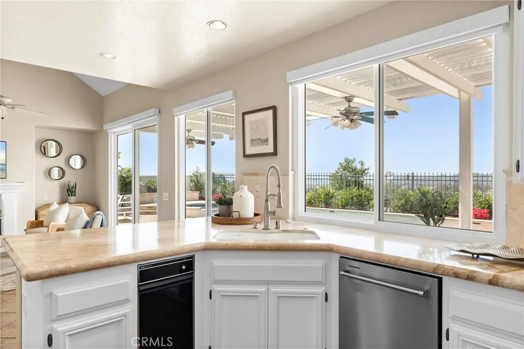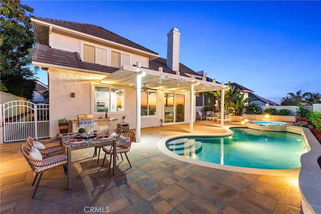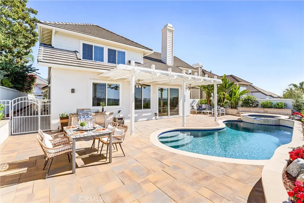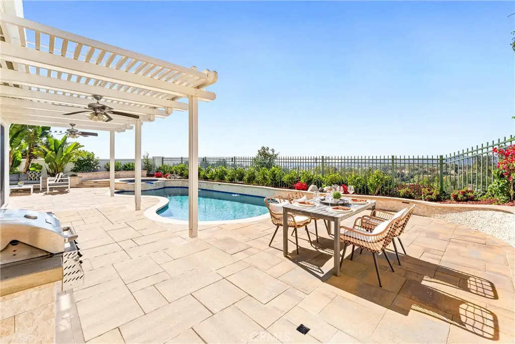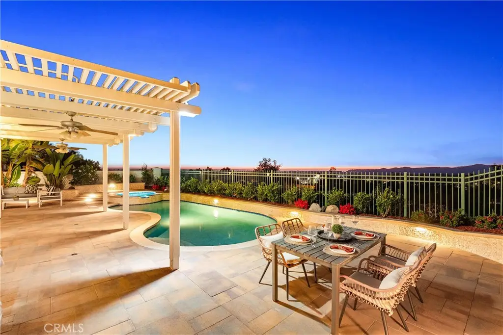Welcome to 29 Muirfield, a rare opportunity to secure a view estate with a pool in one of South Orange County's most exclusive golf course communities. An elegant 3-bedroom, 3-bathroom residence in the prestigious, guard gated community of Dove Canyon, blending refined interiors with resort-style outdoor living and panoramic canyon sunset views. Designed for versatility, the home features a main floor bedroom with adjacent full bath, plus a flexible office - bonus room to suit today's lifestyle needs. The chef's kitchen is a showcase of sophistication, with marble countertops, stainless steel appliances, a breakfast bar, and unobstructed hillside panoramic view--all opening seamlessly to the inviting family room with fireplace and new sliding door welcoming you to the breath taking backyard. Vaulted ceilings, new windows, new motorized blinds, plantation shutters, and designer tile flooring enhance the home's airy elegance, while a thoughtfully executed third garage bay conversion adds living space, currently styled as a private office with a private entrance. Upstairs, the primary suite captures serene canyon views and features a spa inspired bath with dual vanities, a soaking tub, a separate shower, and dual walk-in closets. A secondary ensuite bedroom provides both comfort and privacy for family or guests. Outdoors, the residence lives like a boutique resort: a newly renovated pool and spa, multiple al fresco terraces, and low maintenance landscaping set the stage for sunset entertaining or quiet retreat. Additional features include a 2-car garage with flexible bay and an extended driveway for ample parking on a cul-de-sac street. Residents enjoy access to scenic trails, tennis and pickleball courts, community pool and spa, and neighborhood parks. Nearby, Dove Canyon Country Club, a Jack Nicklaus designed signature course offers optional membership for golf, dining, and a vibrant social calendar.