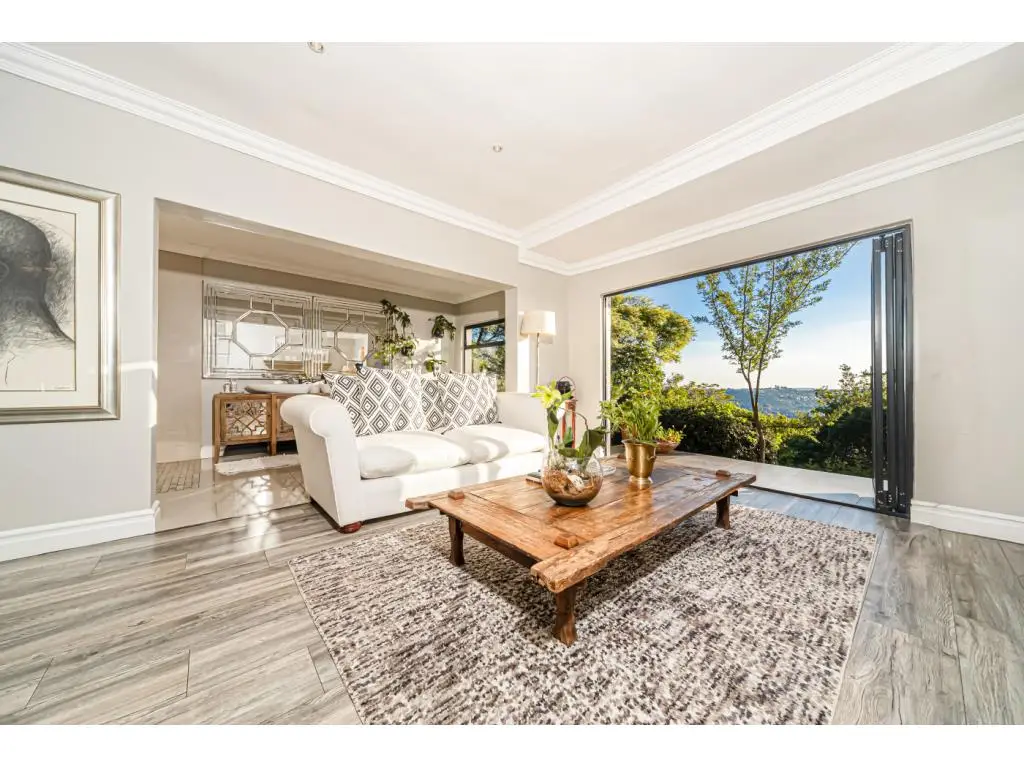 A Nature-Infused Masterpiece in Northcliff - Where Style Meets Soul Perched on the majestic Northcliff ridge, this home isn't just a property - it's an immersive experience. Thoughtfully designed to blend architectural finesse with natural tranquillity, it offers a lifestyle that is as elevated as its panoramic views. From the moment you enter the gated, boomed-off enclave with dedicated security, a sense of peace settles in. The beautifully landscaped entrance courtyard, complete with a koi stream winding through sculpted greenery, sets the tone for what lies ahead: serenity, sophistication, and seamless indoor-outdoor living. Stepping through the grand glass doors, you're welcomed by a light-filled, open-plan interior where spaces flow effortlessly. A striking double-sided fireplace anchors the lounge and dining room, casting warmth across the elegant wood-look flooring. Floor-to-ceiling stacker doors peel away to reveal a private timber deck and a heated mosaic swimming pool - perfect for soaking up the sun or enjoying twilight views of Johannesburg's skyline. The dining area, framed by lush greenery and wide vistas, spills into a gourmet kitchen designed for both function and flair. Here, no detail has been spared: a double Whirlpool oven, gas hob, built-in fridge, microwave, dishwasher, coffee machine, and a wine cooler create a seamless culinary experience. Tucked just behind is a generous scullery adorned with bespoke cabinetry and stone countertops, keeping everything crisp and clutter-free. Just off the main living space, the TV lounge offers a cozy, intimate space with calming views over the English-style front garden and tranquil water feature. To the left wing of the home, two luxurious bedrooms boast open-plan en-suite bathrooms, underfloor heating, private toilets, and glass doors that open onto a patio with breathtaking views. The main suite is a sanctuary of warmth and refinement, featuring a gas fireplace, a freestanding bath, and sliding doors that frame uninterrupted treetop and city views. The right wing reveals even more to love: a secondary open-plan kitchen and lounge area opens into the garden and wraps around the koi pond - ideal for guests or dual living. Upstairs, two additional bedrooms each feature their own en-suite bathrooms and private balconies that overlook the manicured garden and surrounding landscape. Two double garages, one with direct access into the home, offer practicality and security, while external beams and an independent alarm system in the guest wing provide peace of mind. With approximately 550sqm under roof and set on a lush 2,016sqm stand, this residence invites you to live beautifully, surrounded by nature and luxury. This is not just a Northcliff home - it's a timeless, soulful retreat where design, landscape, and lifestyle live in perfect harmony.