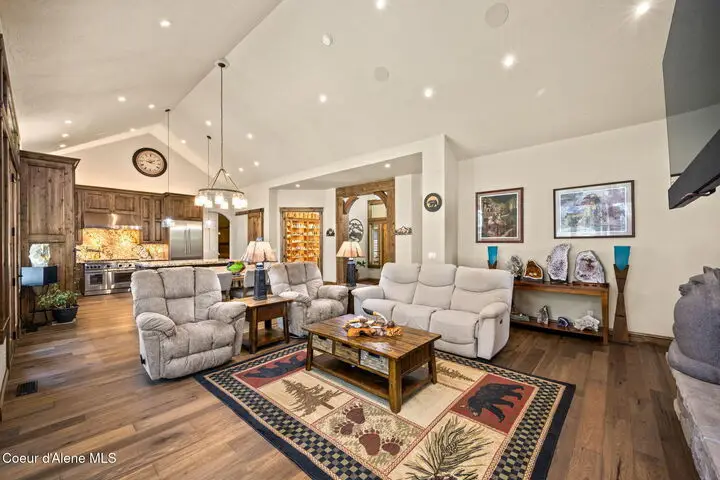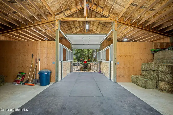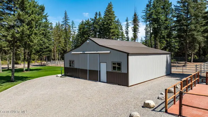 Stunning 3 bed, 3 bath 3,252 SF luxury home on 4.76 acres, built by an award-winning builder in in The Glades a 5-acre paved subdivision in Rathdrum. High-end finishes throughout: hardwood floors, Pella windows, live-edge granite countertops, Thermador Pro Series appliances, custom knotty alder cabinetry, wood-wrapped windows and trim. Spa-like primary suite with oversized mud-set walk-in shower and soaking tub. Expansive covered patio with gas firepit overlooks beautifully parked-out, wooded grounds—perfect for entertaining. Incredible amenities include a 30x60 fenced & lighted pickleball court, large fenced garden, green house, garden shed, 12x16 storage shed, huge graveled parking and driveway to barn. Custom 36x36 2 stall barn with runs & enclosed tack room leads to 5-rail pipe corral—ideal for equestrian lovers. This location is minutes from Dining, Shopping, Medical, Lakes, Mountains & Riding trails & all the recreation North Idaho has to offer!