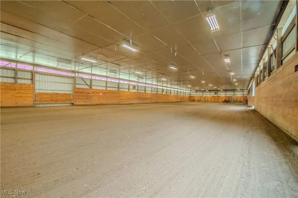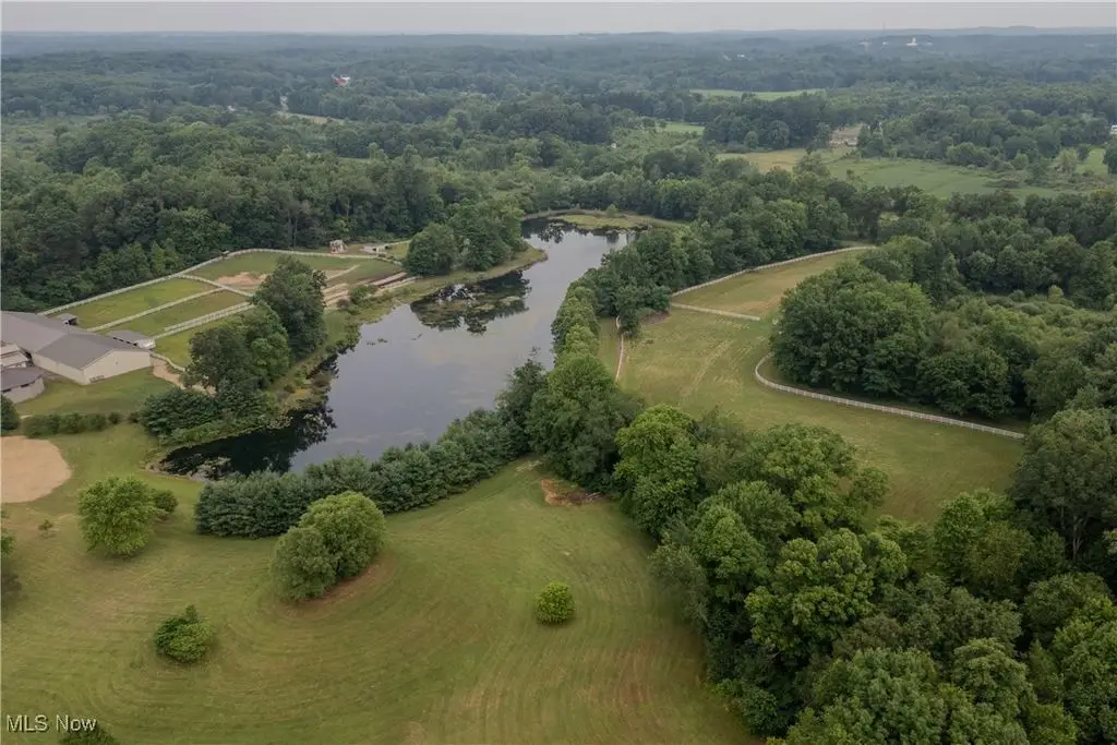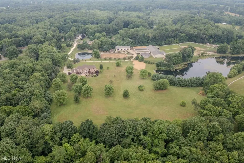 58.5 acre horse farm with gorgeous 10,000 sq ft of finished space. 4 car attached garage & 4 car detached. 7 bedrooms, 7.5 bath, in-law suite, open floorplan, 3 fireplaces. Custom woodwork & antique stained glass throughout. 1st floor has 10ft ceilings & 8ft doors. 2nd floor has 9ft ceilings. All of the doors, trim & cabinetry are solid cherry. Entire house is hardwired for internet & has whole house stereo with individual controls. 2 laundry rooms, butler's pantry with frig, ice maker & dishwasher. Great room with coffered ceiling, fireplace, floor to ceiling windows & built-ins. Large sunken family room with access to patio. Kitchen is a cook's dream with 2 islands, walk-in pantry, professional oven, prep sink & so much more. The owner's suite is amazing with separate sitting area, nursery or office, fireplace & HUGE closet with built-ins. Guest bedroom has private bath & princess balcony. Remaining bedrooms are generously sized with private Jack & Jill baths. In-law suite has living room, kitchen, bath & bedroom. Outbuildings include 40x100ft barn with 4 overhead doors, 2 horse barns at 40x80ft, 60x240ft indoor arena, 60ft round pen & 5 run-in sheds. 26 stalls with automatic heated waterers & swing out feeders. Outdoor riding arena. Three of the horse barns are leased to a trainer & the trainer would like to stay but lease is month to month. The property has a small pond in front & a 7 acre stocked lake in back. A stream also runs along the back of the property. Nature lover's dream with deer, turkey, ducks & more. Updated landscaping with expansive decks, pavers, multi-tiered waterfall & dog kennel. New roof in 2024. Within 45 min of Cleve or Youngstown, 25 min to Akron or Canton. Plenty of education options with Bio-Med, an independent STEM school (12 min), Western Reserve Academy (20 min)Ravenna LSD or Kent (10 min), where current owner's children attended. There is an adjoining 1.5 acre property & home also available. Your own private paradise.