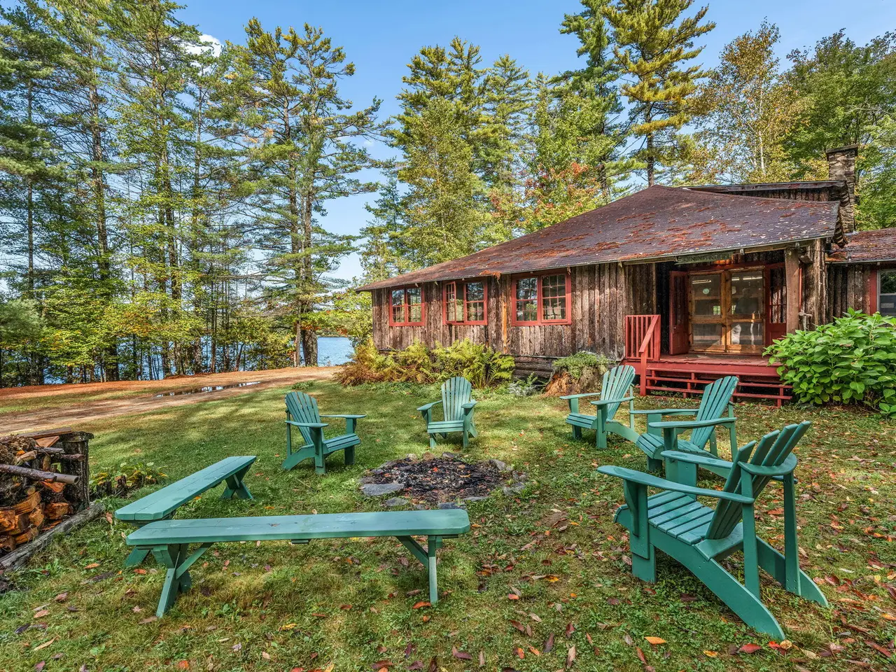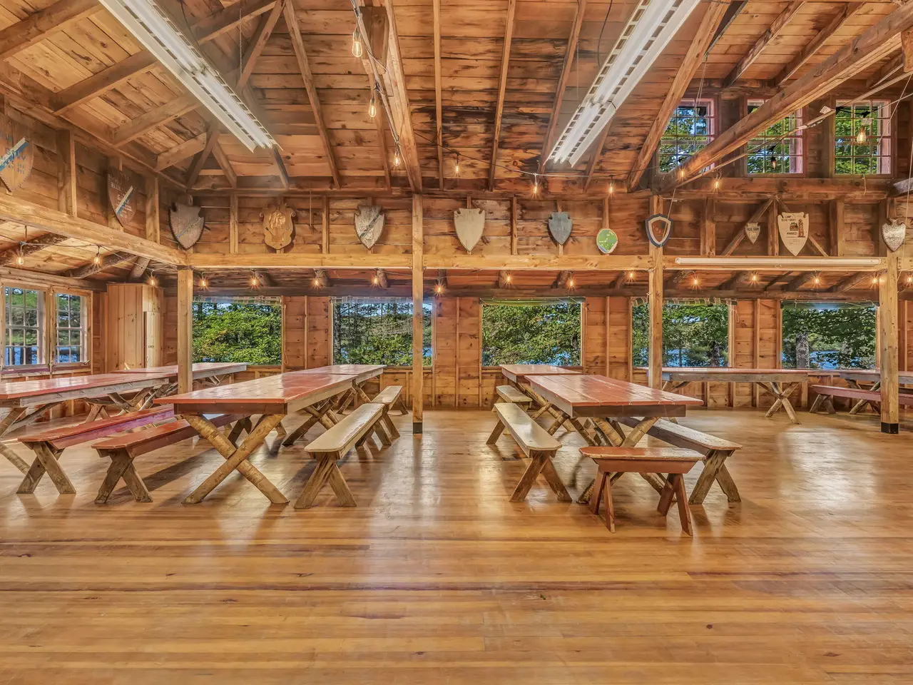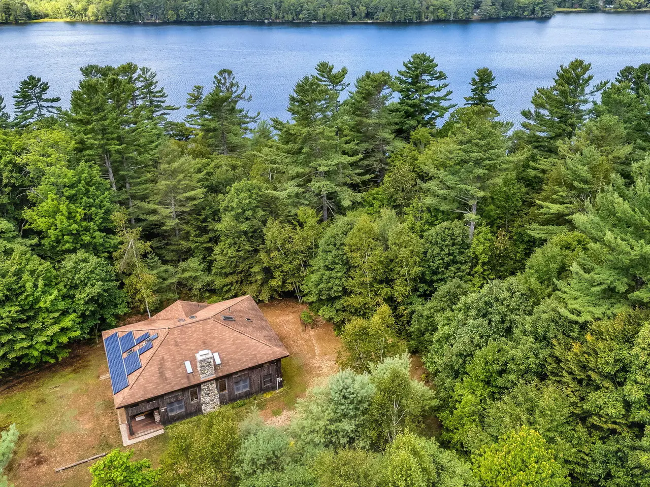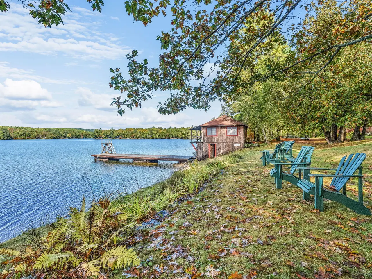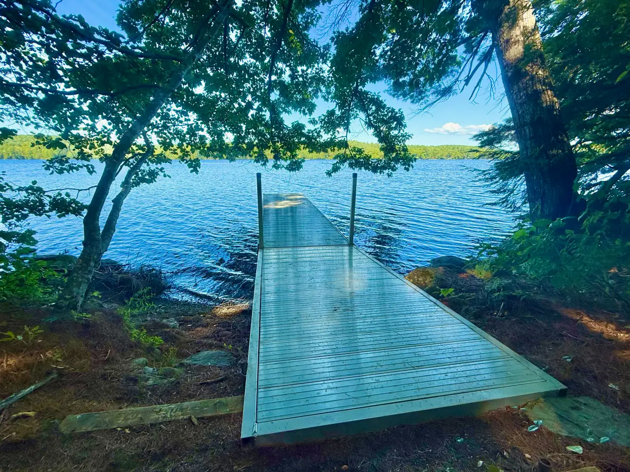 LOVEJOY POND Magnificent custom built Maine lodge architecturally designed to provide that classic, rustic feel with all the modern day amenities & system! Originally the Menatoma Camp ''Lodge'' sadly destroyed in a fire, this 2001 structure was built to encompass everything it means to be in nature at the lake with loved ones! The central living room is a wonderful place to gather around the gorgeous natural stone fireplace that reaches to a lofty ceiling with grand staircases on each side. Open game room & two dedicated dining areas adjacent to a fully equipped kitchen is ideal for entertaining large groups. Office/den & laundry room with half bath complete the main level, while 4 spacious bedrooms, two full baths, 2 walk-in linen closets & a nice sitting area complete the second level. Outside is a covered porch, 2 open decks & a wonderful screen porch allowing you to enjoy the outdoors while listening to the loons. The property is made up of 2 separate lots with 400' of beautiful lakefront with a gently sloping, pebble bottom swim area & private dock which can be accessed by a park-like walking path through the woods, or your own private road. While surrounded by woodlands on 3.74 acres, the rest of the association's amenities next door can easily be accessed by footpath or road. Dues include access to over 36 acres, 770' of shared lakefront with a sandy beach, protected swimming area with float, 2 large permanent docks, swim float & diving platform, Dining Hall, Laundry Building, Craft Shop, Tennis/Basketball/Pickleball Courts, Baseball Field, dumpster, grounds & tree service. Lovejoy is a beautiful lake with no public boat ramp, no invasive aquatic plants & excellent sport fishing with breeding pairs of loons that raise chicks on the lake each year! Lodge is fully insulated, has an 18 panel solar array supporting all needs, private septic system & access high speed internet if desired. Welcome to a comfortable, easy life at the lake with room for all!