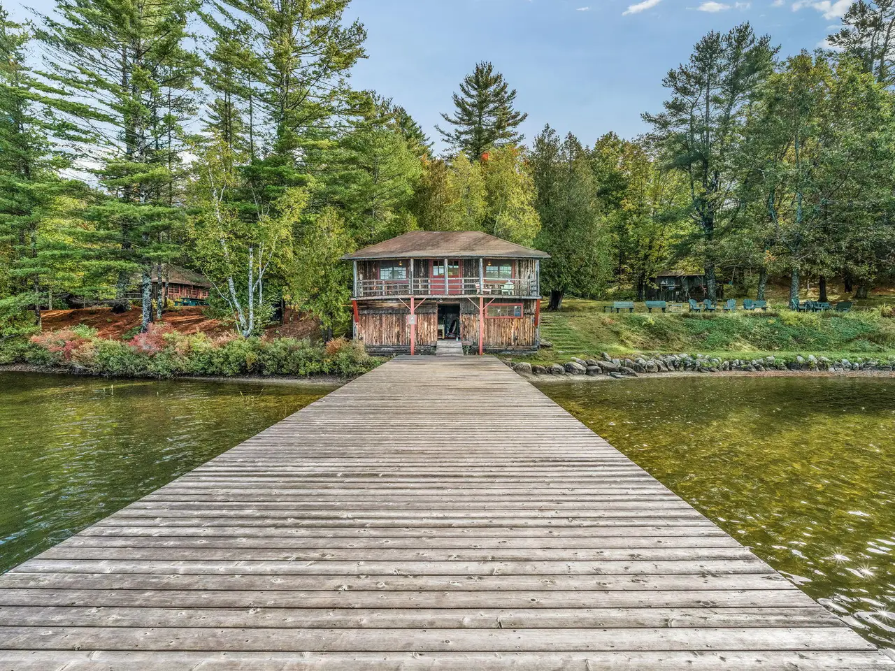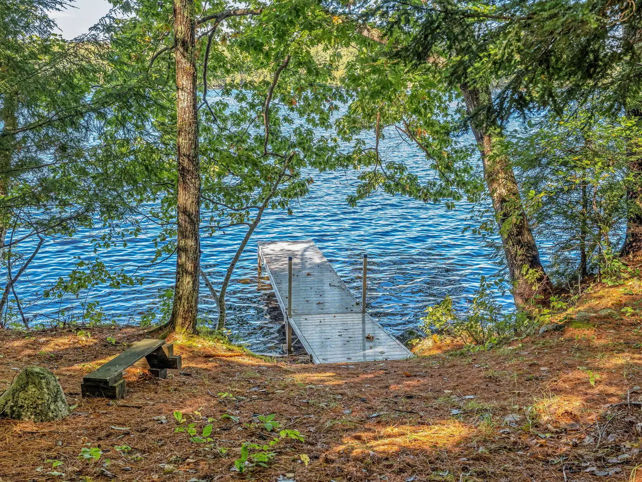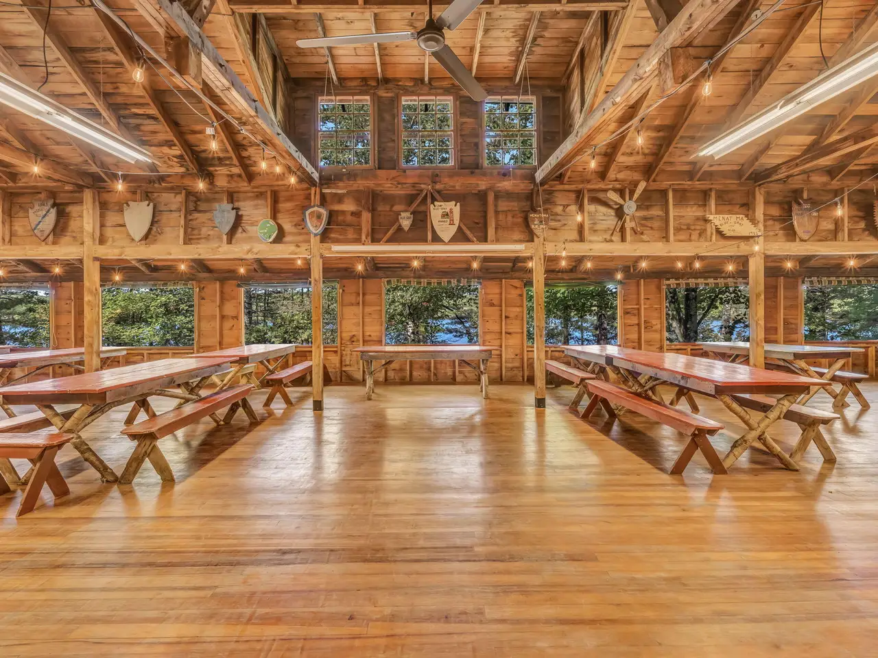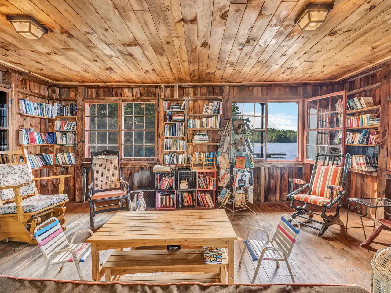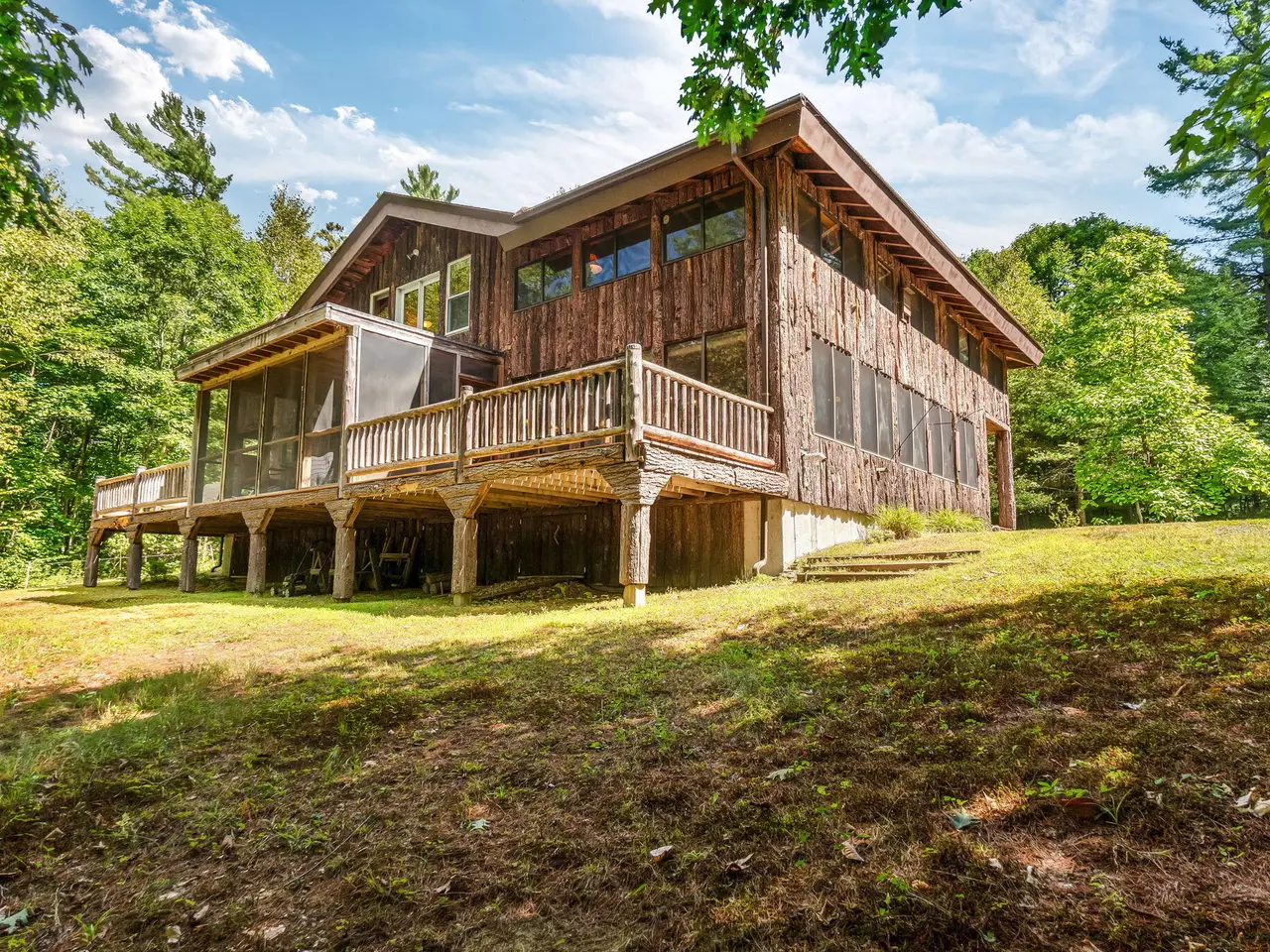 LOVEJOY POND Magnificent custom built Maine lodge architecturally designed to provide that classic, rustic feel with all the modern day amenities & system! Originally the Menatoma Camp ''Lodge'' sadly destroyed in a fire, this 2001 structure was built to encompass everything it means to be in nature at the lake with loved ones! The central living room is a wonderful place to gather around the gorgeous natural stone fireplace that reaches to a lofty ceiling with grand staircases on each side. Open game room & two dedicated dining areas adjacent to a fully equipped kitchen is ideal for entertaining large groups. Office/den & laundry room with half bath complete the main level, while 4 spacious bedrooms, two full baths, 2 walk-in linen closets & a nice sitting area complete the second level. Outside is a covered porch, 2 open decks & a wonderful screen porch allowing you to enjoy the outdoors while listening to the loons. The property is made up of 2 separate lots with 400' of beautiful lakefront with a gently sloping, pebble bottom swim area & private dock which can be accessed by a park-like walking path through the woods, or your own private road. While surrounded by woodlands on 3.74 acres, the rest of the association's amenities next door can easily be accessed by footpath or road. Dues include access to over 36 acres, 770' of shared lakefront with a sandy beach, protected swimming area with float, 2 large permanent docks, swim float & diving platform, Dining Hall, Laundry Building, Craft Shop, Tennis/Basketball/Pickleball Courts, Baseball Field, dumpster, grounds & tree service. Lovejoy is a beautiful lake with no public boat ramp, no invasive aquatic plants & excellent sport fishing with breeding pairs of loons that raise chicks on the lake each year! Lodge is fully insulated, has an 18 panel solar array supporting all needs, private septic system & access high speed internet if desired. Welcome to a comfortable, easy life at the lake with room for all!