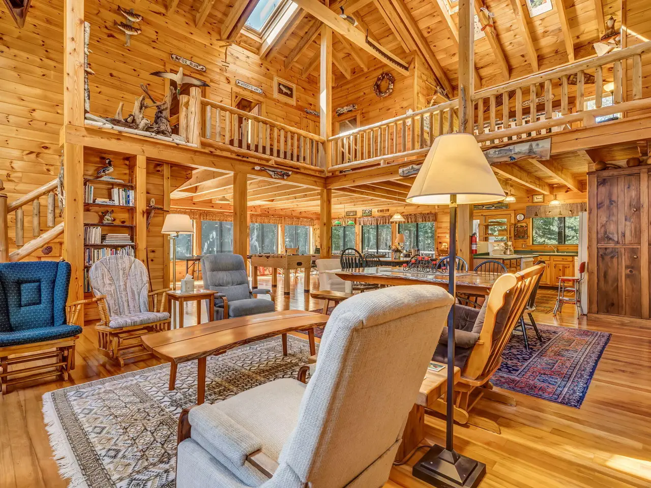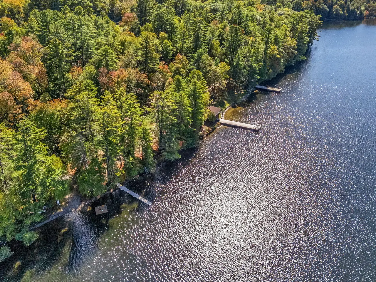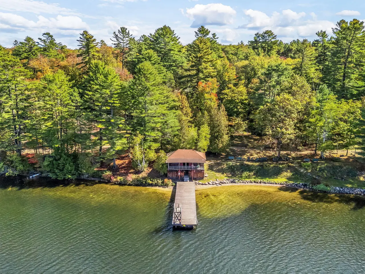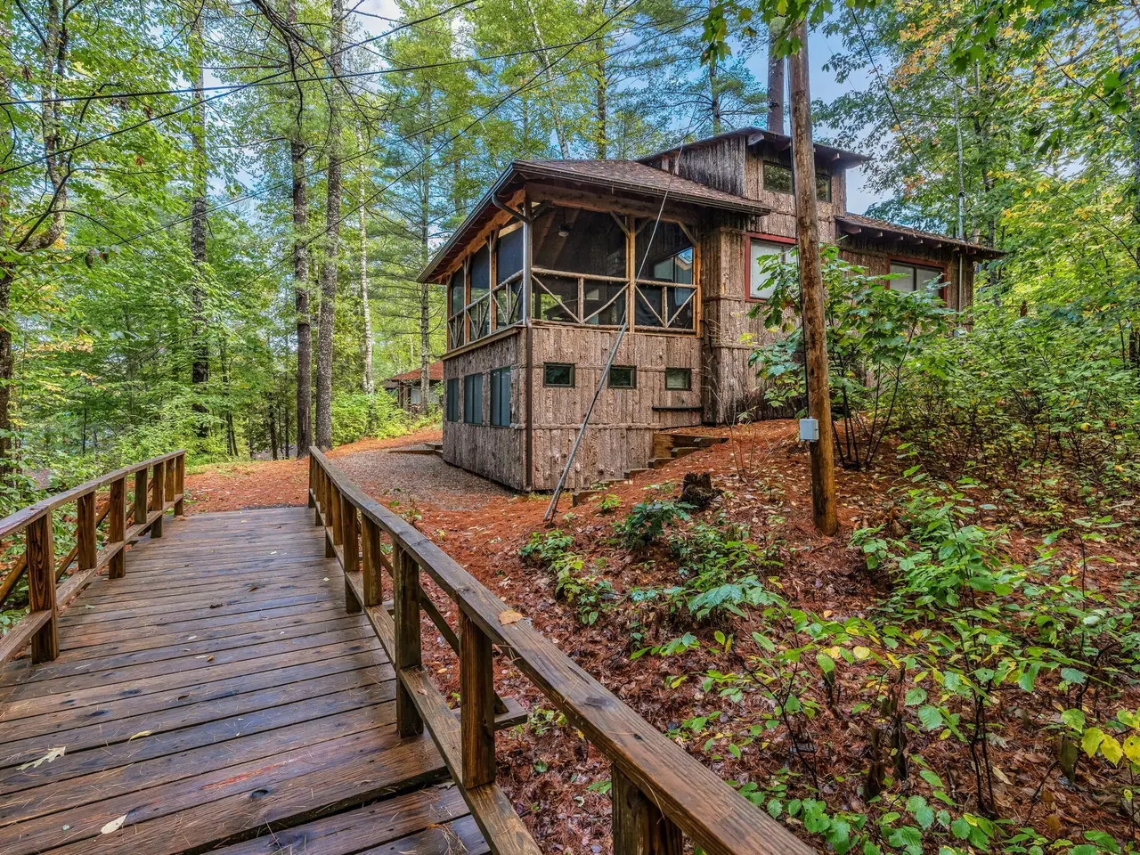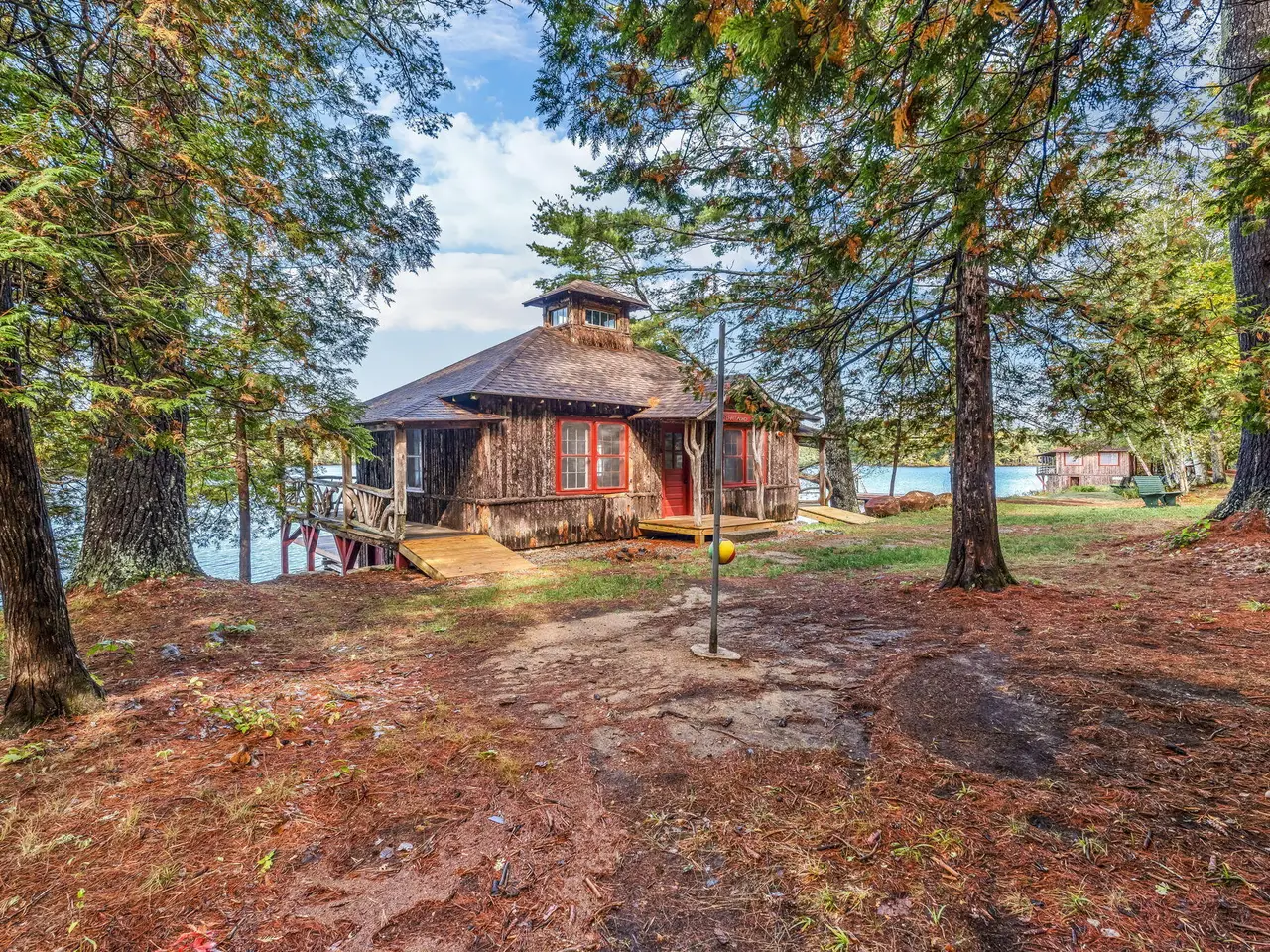 LOVEJOY POND Magnificent custom built Maine lodge architecturally designed to provide that classic, rustic feel with all the modern day amenities & system! Originally the Menatoma Camp ''Lodge'' sadly destroyed in a fire, this 2001 structure was built to encompass everything it means to be in nature at the lake with loved ones! The central living room is a wonderful place to gather around the gorgeous natural stone fireplace that reaches to a lofty ceiling with grand staircases on each side. Open game room & two dedicated dining areas adjacent to a fully equipped kitchen is ideal for entertaining large groups. Office/den & laundry room with half bath complete the main level, while 4 spacious bedrooms, two full baths, 2 walk-in linen closets & a nice sitting area complete the second level. Outside is a covered porch, 2 open decks & a wonderful screen porch allowing you to enjoy the outdoors while listening to the loons. The property is made up of 2 separate lots with 400' of beautiful lakefront with a gently sloping, pebble bottom swim area & private dock which can be accessed by a park-like walking path through the woods, or your own private road. While surrounded by woodlands on 3.74 acres, the rest of the association's amenities next door can easily be accessed by footpath or road. Dues include access to over 36 acres, 770' of shared lakefront with a sandy beach, protected swimming area with float, 2 large permanent docks, swim float & diving platform, Dining Hall, Laundry Building, Craft Shop, Tennis/Basketball/Pickleball Courts, Baseball Field, dumpster, grounds & tree service. Lovejoy is a beautiful lake with no public boat ramp, no invasive aquatic plants & excellent sport fishing with breeding pairs of loons that raise chicks on the lake each year! Lodge is fully insulated, has an 18 panel solar array supporting all needs, private septic system & access high speed internet if desired. Welcome to a comfortable, easy life at the lake with room for all!
