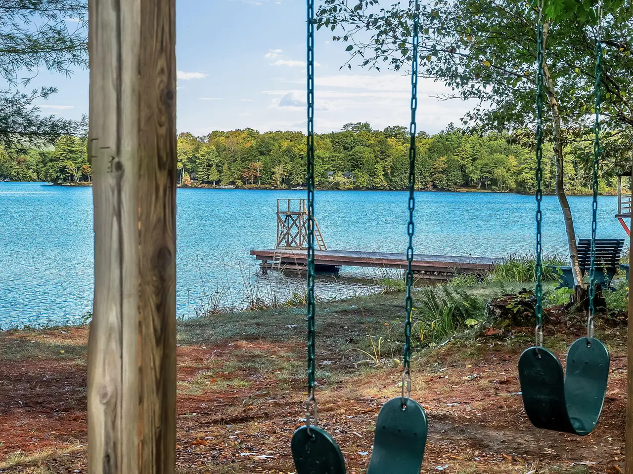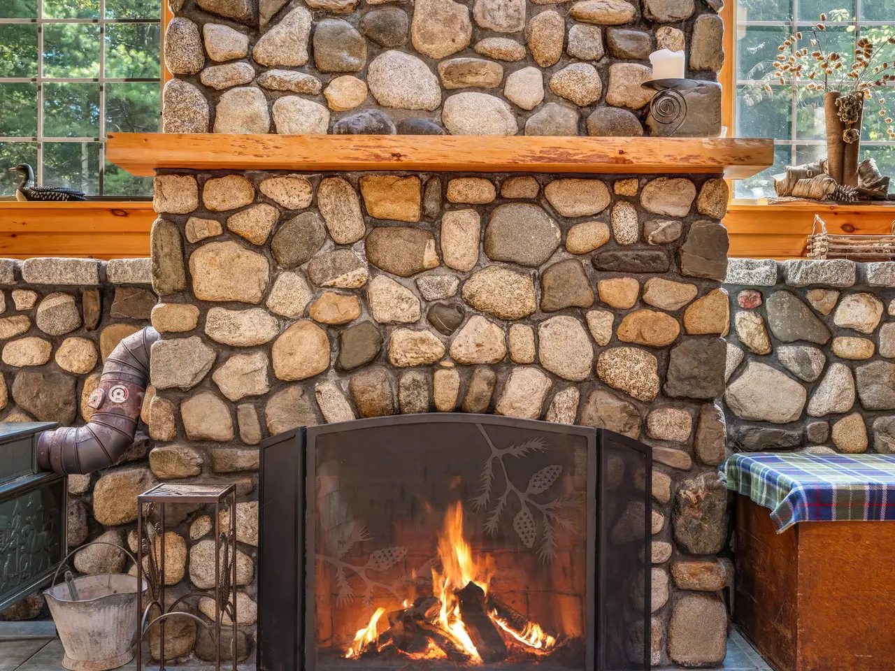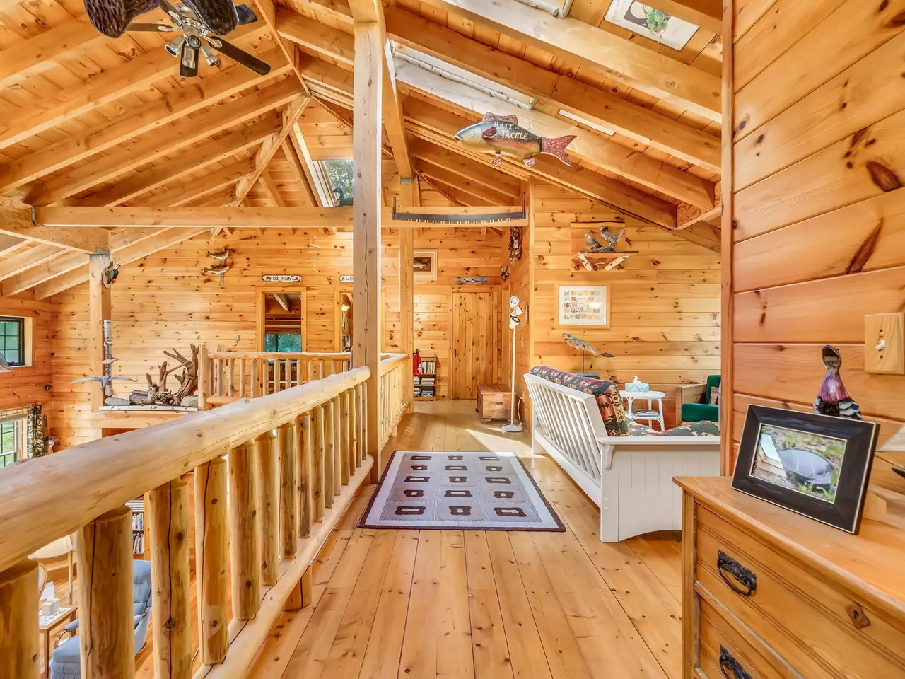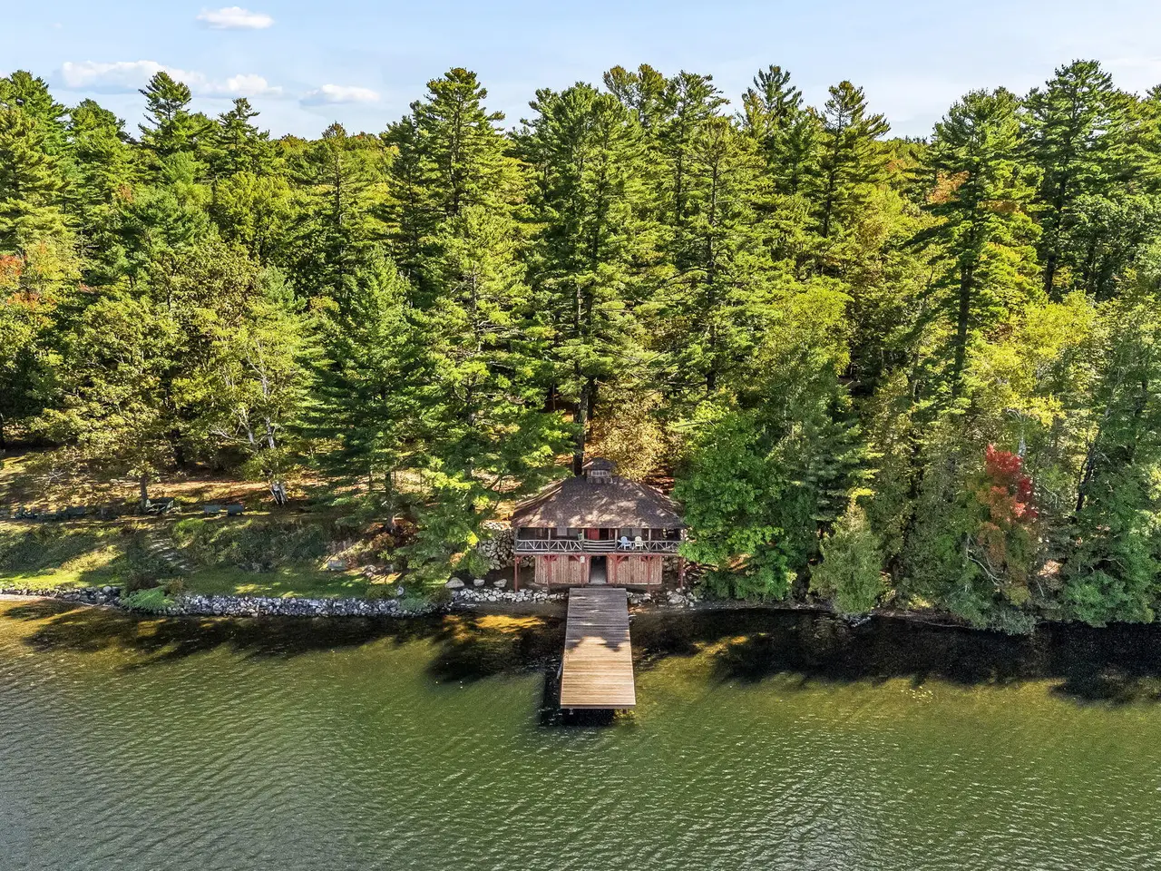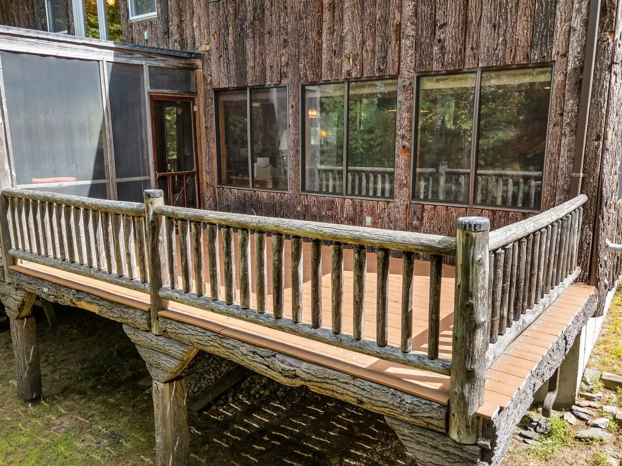 LOVEJOY POND Magnificent custom built Maine lodge architecturally designed to provide that classic, rustic feel with all the modern day amenities & system! Originally the Menatoma Camp ''Lodge'' sadly destroyed in a fire, this 2001 structure was built to encompass everything it means to be in nature at the lake with loved ones! The central living room is a wonderful place to gather around the gorgeous natural stone fireplace that reaches to a lofty ceiling with grand staircases on each side. Open game room & two dedicated dining areas adjacent to a fully equipped kitchen is ideal for entertaining large groups. Office/den & laundry room with half bath complete the main level, while 4 spacious bedrooms, two full baths, 2 walk-in linen closets & a nice sitting area complete the second level. Outside is a covered porch, 2 open decks & a wonderful screen porch allowing you to enjoy the outdoors while listening to the loons. The property is made up of 2 separate lots with 400' of beautiful lakefront with a gently sloping, pebble bottom swim area & private dock which can be accessed by a park-like walking path through the woods, or your own private road. While surrounded by woodlands on 3.74 acres, the rest of the association's amenities next door can easily be accessed by footpath or road. Dues include access to over 36 acres, 770' of shared lakefront with a sandy beach, protected swimming area with float, 2 large permanent docks, swim float & diving platform, Dining Hall, Laundry Building, Craft Shop, Tennis/Basketball/Pickleball Courts, Baseball Field, dumpster, grounds & tree service. Lovejoy is a beautiful lake with no public boat ramp, no invasive aquatic plants & excellent sport fishing with breeding pairs of loons that raise chicks on the lake each year! Lodge is fully insulated, has an 18 panel solar array supporting all needs, private septic system & access high speed internet if desired. Welcome to a comfortable, easy life at the lake with room for all!