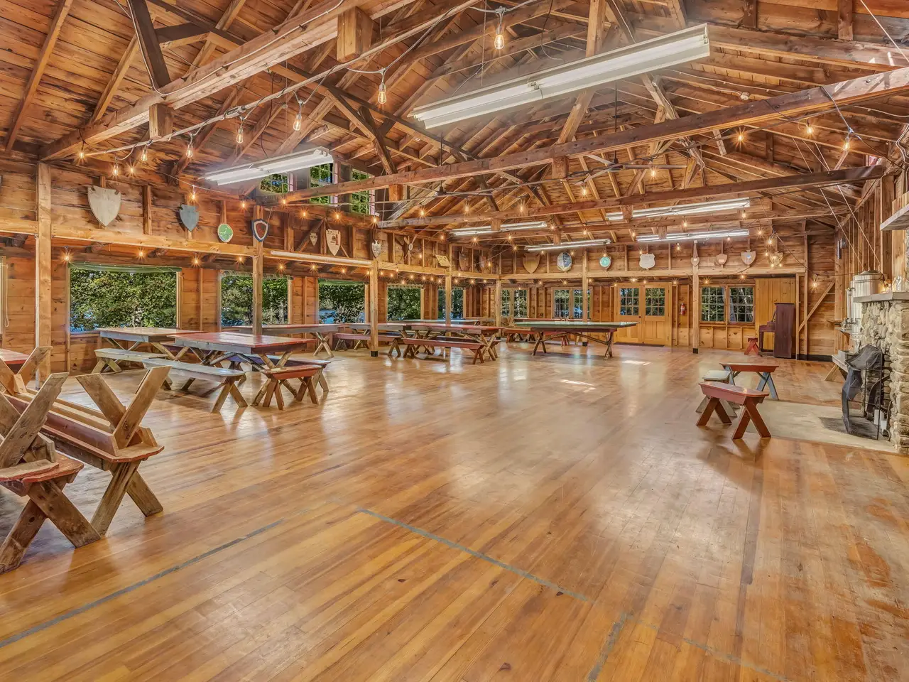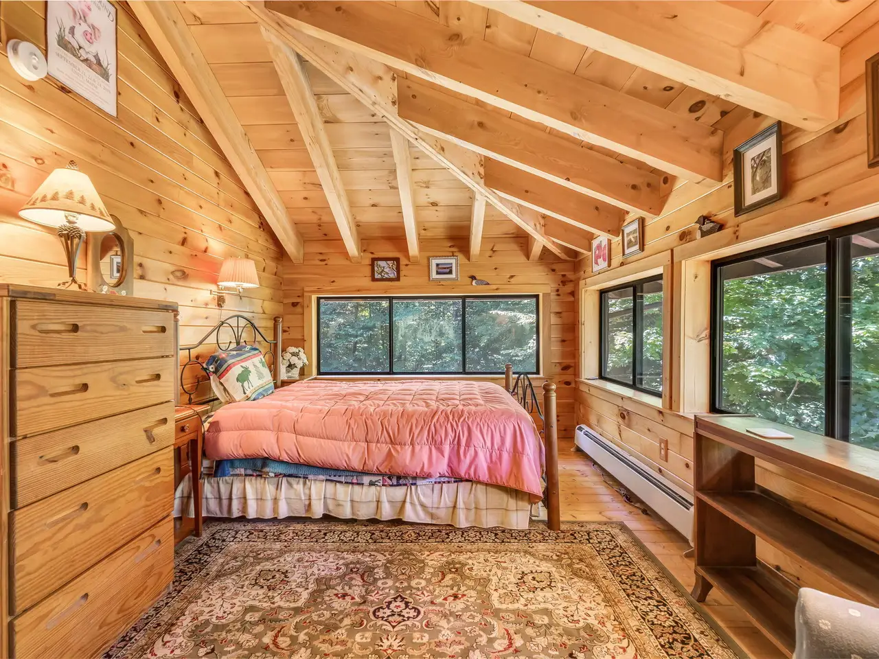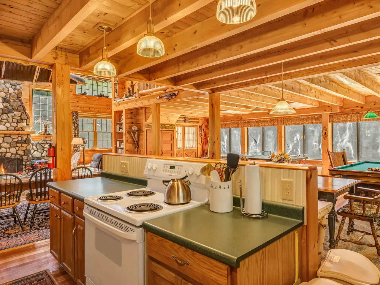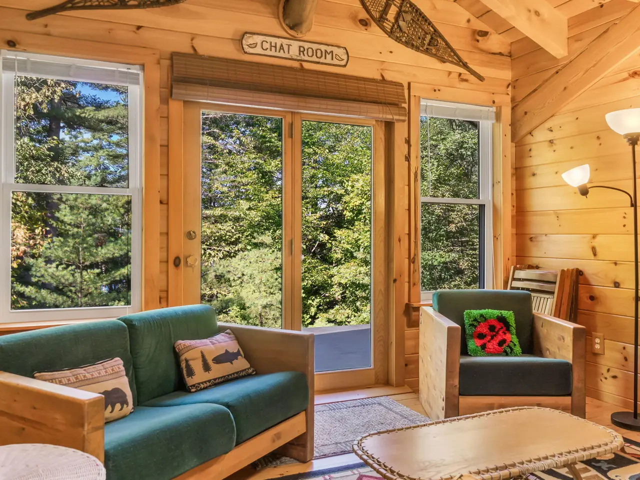 LOVEJOY POND Magnificent custom built Maine lodge architecturally designed to provide that classic, rustic feel with all the modern day amenities & system! Originally the Menatoma Camp ''Lodge'' sadly destroyed in a fire, this 2001 structure was built to encompass everything it means to be in nature at the lake with loved ones! The central living room is a wonderful place to gather around the gorgeous natural stone fireplace that reaches to a lofty ceiling with grand staircases on each side. Open game room & two dedicated dining areas adjacent to a fully equipped kitchen is ideal for entertaining large groups. Office/den & laundry room with half bath complete the main level, while 4 spacious bedrooms, two full baths, 2 walk-in linen closets & a nice sitting area complete the second level. Outside is a covered porch, 2 open decks & a wonderful screen porch allowing you to enjoy the outdoors while listening to the loons. The property is made up of 2 separate lots with 400' of beautiful lakefront with a gently sloping, pebble bottom swim area & private dock which can be accessed by a park-like walking path through the woods, or your own private road. While surrounded by woodlands on 3.74 acres, the rest of the association's amenities next door can easily be accessed by footpath or road. Dues include access to over 36 acres, 770' of shared lakefront with a sandy beach, protected swimming area with float, 2 large permanent docks, swim float & diving platform, Dining Hall, Laundry Building, Craft Shop, Tennis/Basketball/Pickleball Courts, Baseball Field, dumpster, grounds & tree service. Lovejoy is a beautiful lake with no public boat ramp, no invasive aquatic plants & excellent sport fishing with breeding pairs of loons that raise chicks on the lake each year! Lodge is fully insulated, has an 18 panel solar array supporting all needs, private septic system & access high speed internet if desired. Welcome to a comfortable, easy life at the lake with room for all!