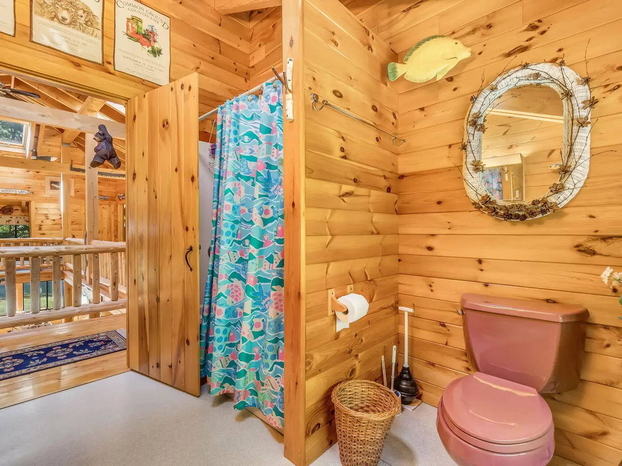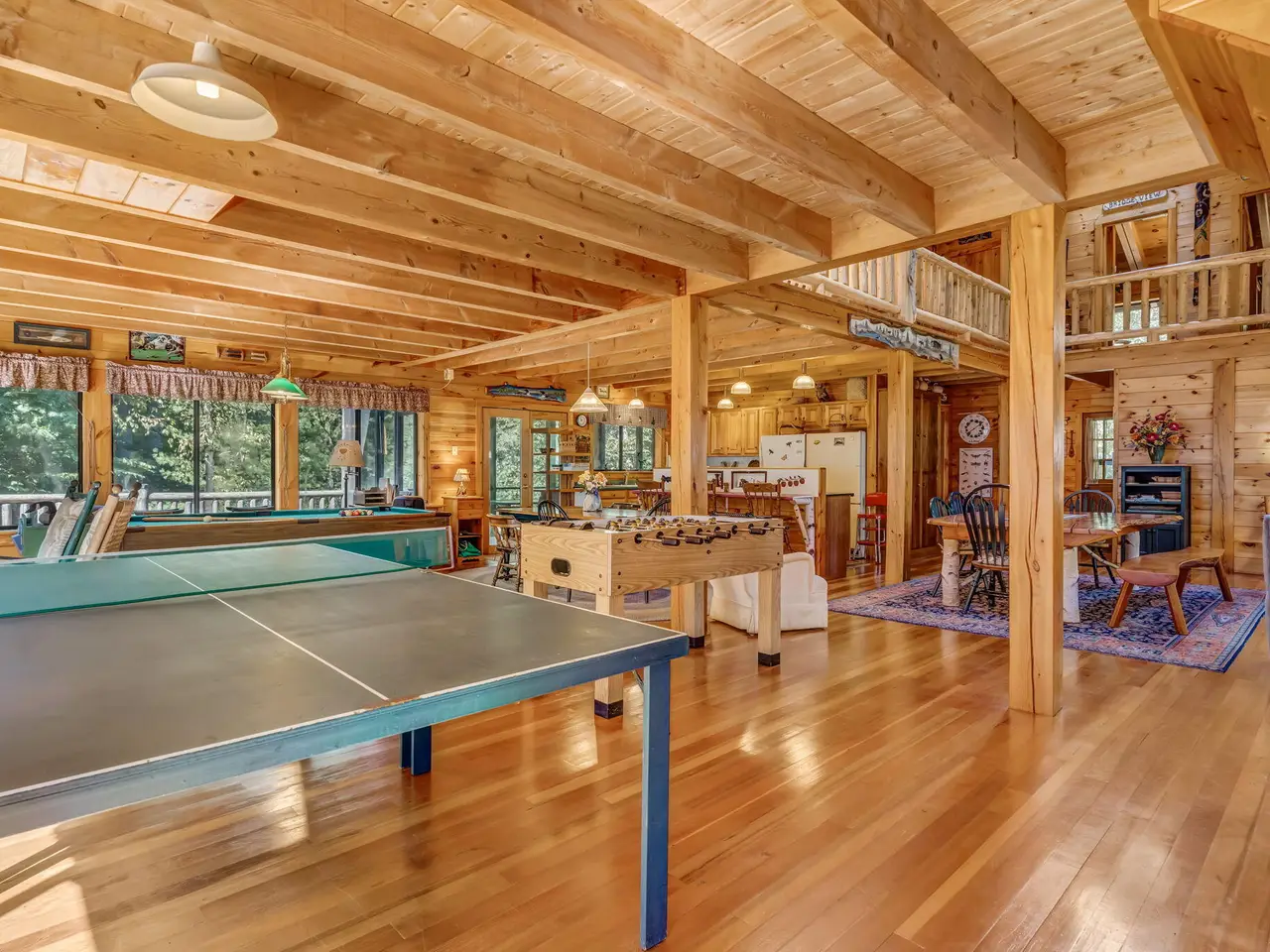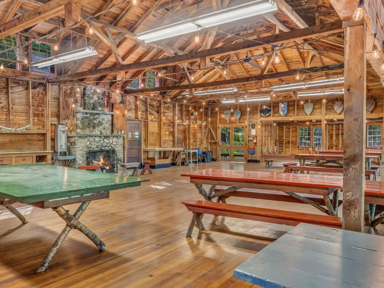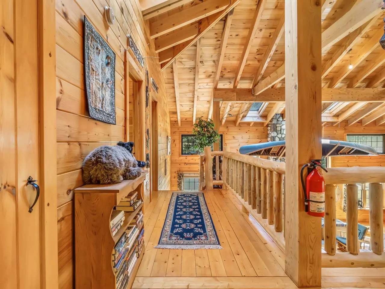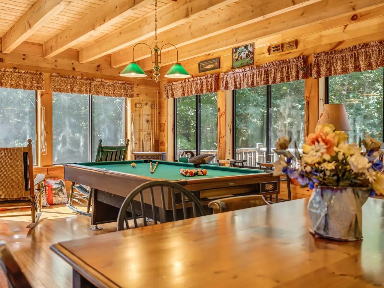 LOVEJOY POND Magnificent custom built Maine lodge architecturally designed to provide that classic, rustic feel with all the modern day amenities & system! Originally the Menatoma Camp ''Lodge'' sadly destroyed in a fire, this 2001 structure was built to encompass everything it means to be in nature at the lake with loved ones! The central living room is a wonderful place to gather around the gorgeous natural stone fireplace that reaches to a lofty ceiling with grand staircases on each side. Open game room & two dedicated dining areas adjacent to a fully equipped kitchen is ideal for entertaining large groups. Office/den & laundry room with half bath complete the main level, while 4 spacious bedrooms, two full baths, 2 walk-in linen closets & a nice sitting area complete the second level. Outside is a covered porch, 2 open decks & a wonderful screen porch allowing you to enjoy the outdoors while listening to the loons. The property is made up of 2 separate lots with 400' of beautiful lakefront with a gently sloping, pebble bottom swim area & private dock which can be accessed by a park-like walking path through the woods, or your own private road. While surrounded by woodlands on 3.74 acres, the rest of the association's amenities next door can easily be accessed by footpath or road. Dues include access to over 36 acres, 770' of shared lakefront with a sandy beach, protected swimming area with float, 2 large permanent docks, swim float & diving platform, Dining Hall, Laundry Building, Craft Shop, Tennis/Basketball/Pickleball Courts, Baseball Field, dumpster, grounds & tree service. Lovejoy is a beautiful lake with no public boat ramp, no invasive aquatic plants & excellent sport fishing with breeding pairs of loons that raise chicks on the lake each year! Lodge is fully insulated, has an 18 panel solar array supporting all needs, private septic system & access high speed internet if desired. Welcome to a comfortable, easy life at the lake with room for all!