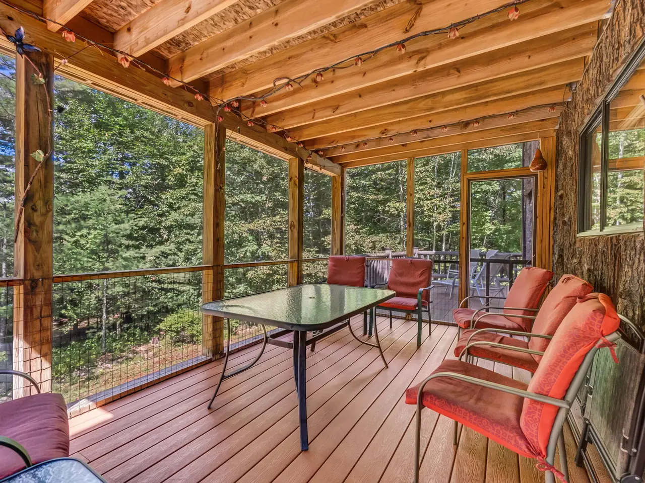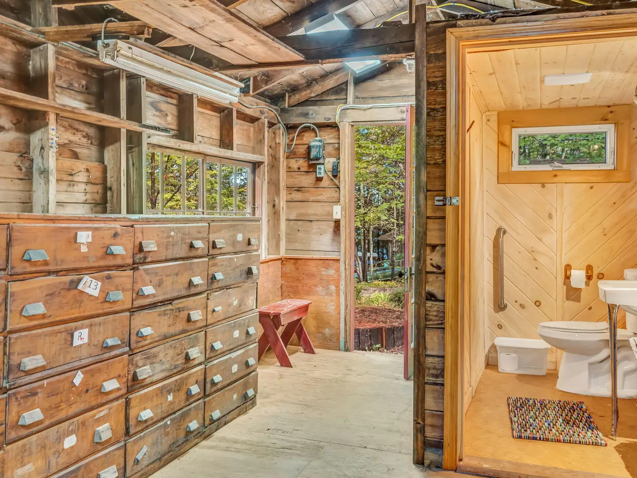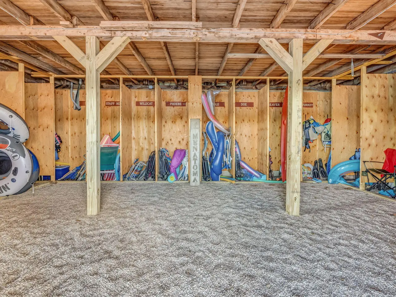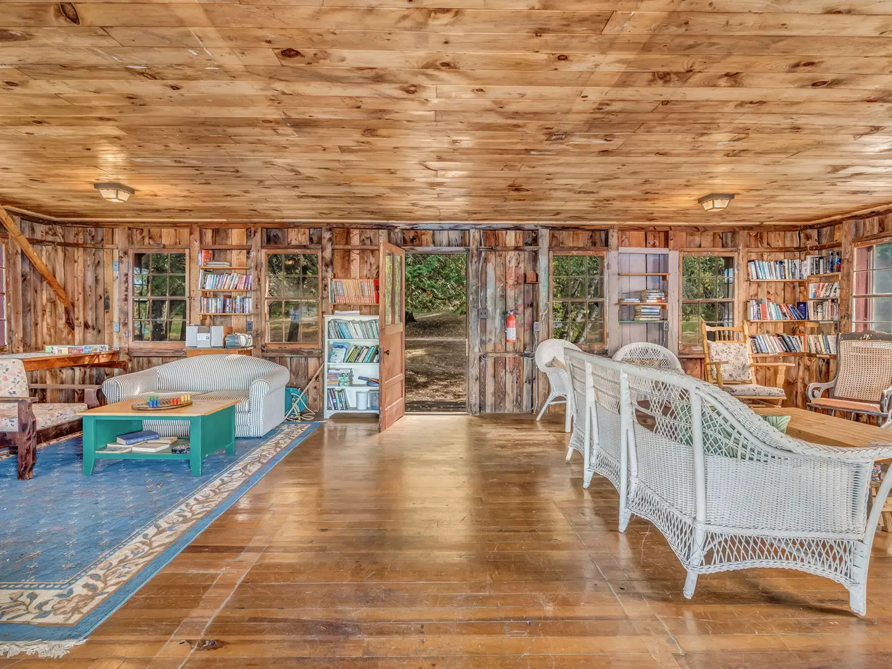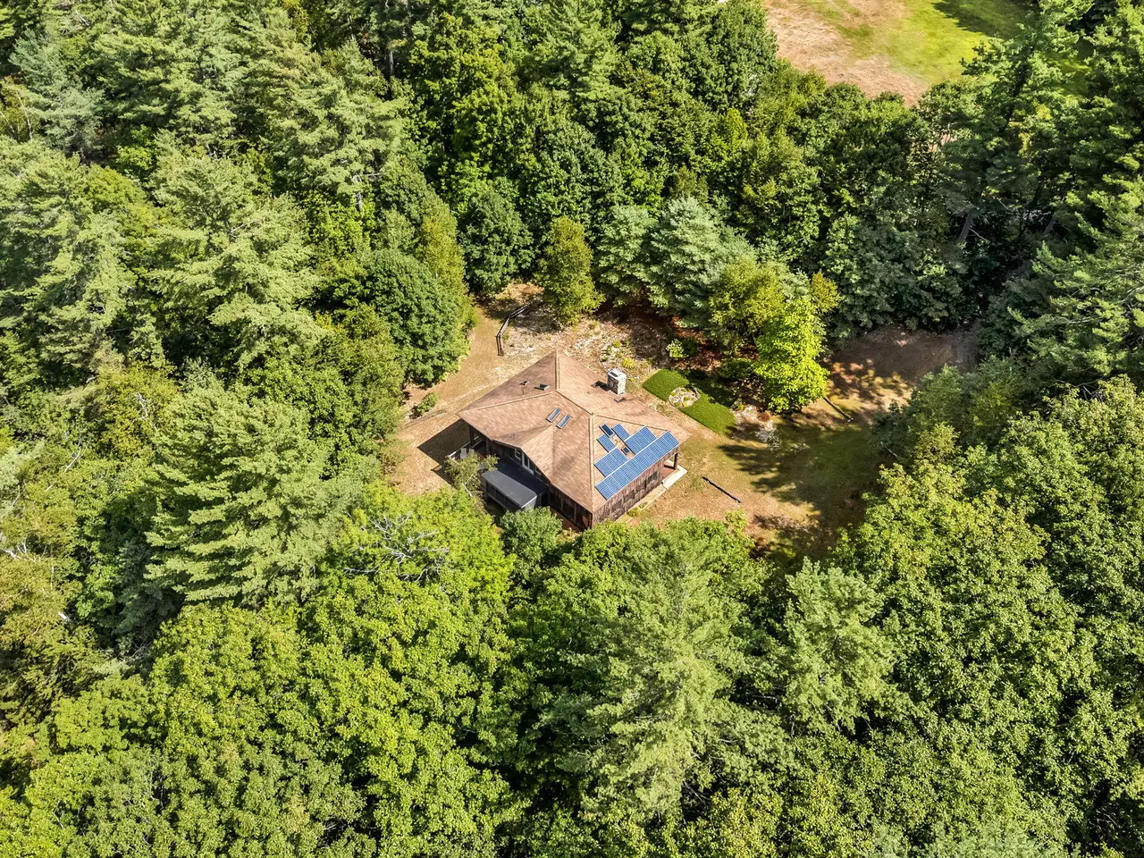 LOVEJOY POND Magnificent custom built Maine lodge architecturally designed to provide that classic, rustic feel with all the modern day amenities & system! Originally the Menatoma Camp ''Lodge'' sadly destroyed in a fire, this 2001 structure was built to encompass everything it means to be in nature at the lake with loved ones! The central living room is a wonderful place to gather around the gorgeous natural stone fireplace that reaches to a lofty ceiling with grand staircases on each side. Open game room & two dedicated dining areas adjacent to a fully equipped kitchen is ideal for entertaining large groups. Office/den & laundry room with half bath complete the main level, while 4 spacious bedrooms, two full baths, 2 walk-in linen closets & a nice sitting area complete the second level. Outside is a covered porch, 2 open decks & a wonderful screen porch allowing you to enjoy the outdoors while listening to the loons. The property is made up of 2 separate lots with 400' of beautiful lakefront with a gently sloping, pebble bottom swim area & private dock which can be accessed by a park-like walking path through the woods, or your own private road. While surrounded by woodlands on 3.74 acres, the rest of the association's amenities next door can easily be accessed by footpath or road. Dues include access to over 36 acres, 770' of shared lakefront with a sandy beach, protected swimming area with float, 2 large permanent docks, swim float & diving platform, Dining Hall, Laundry Building, Craft Shop, Tennis/Basketball/Pickleball Courts, Baseball Field, dumpster, grounds & tree service. Lovejoy is a beautiful lake with no public boat ramp, no invasive aquatic plants & excellent sport fishing with breeding pairs of loons that raise chicks on the lake each year! Lodge is fully insulated, has an 18 panel solar array supporting all needs, private septic system & access high speed internet if desired. Welcome to a comfortable, easy life at the lake with room for all!