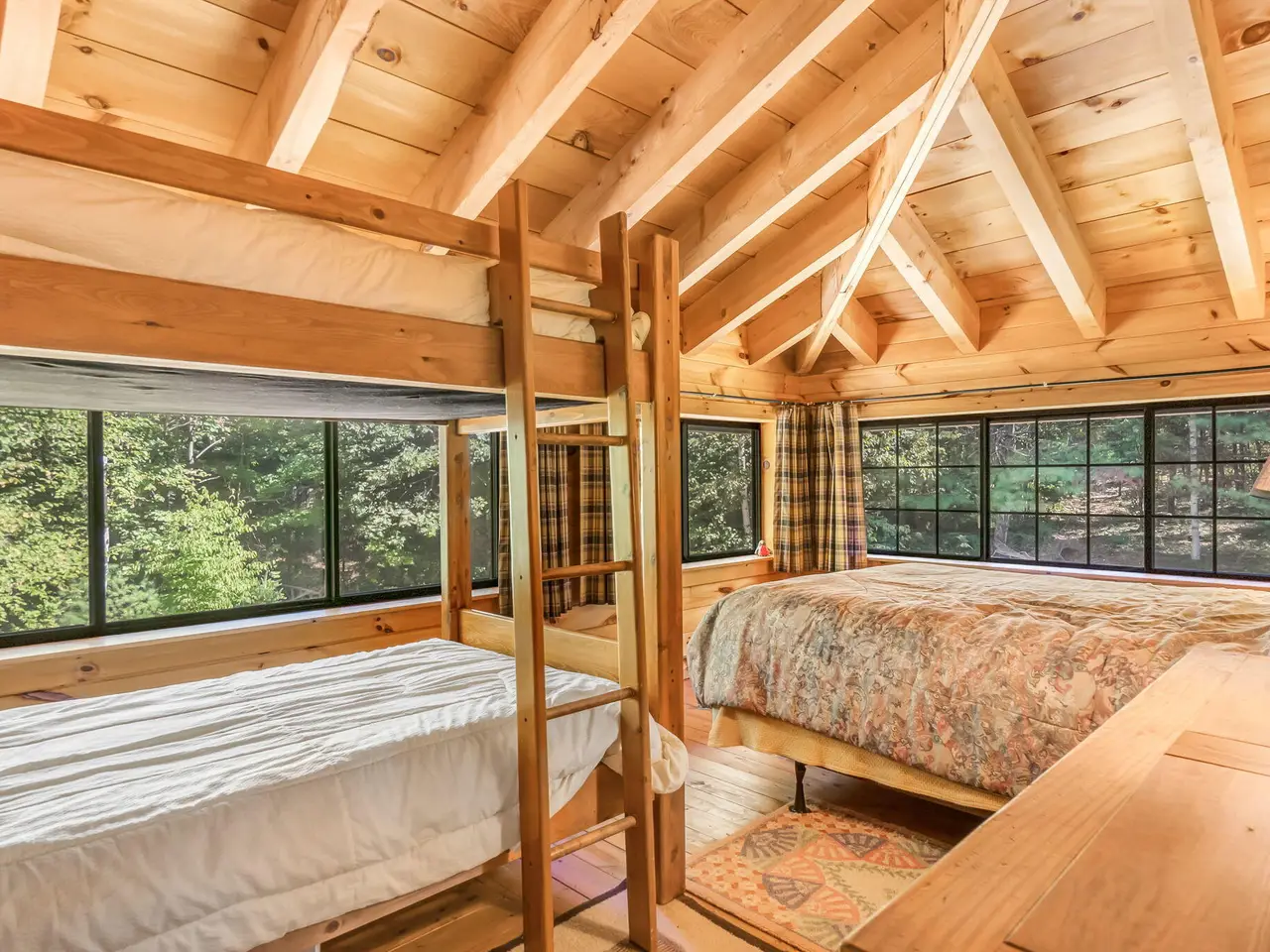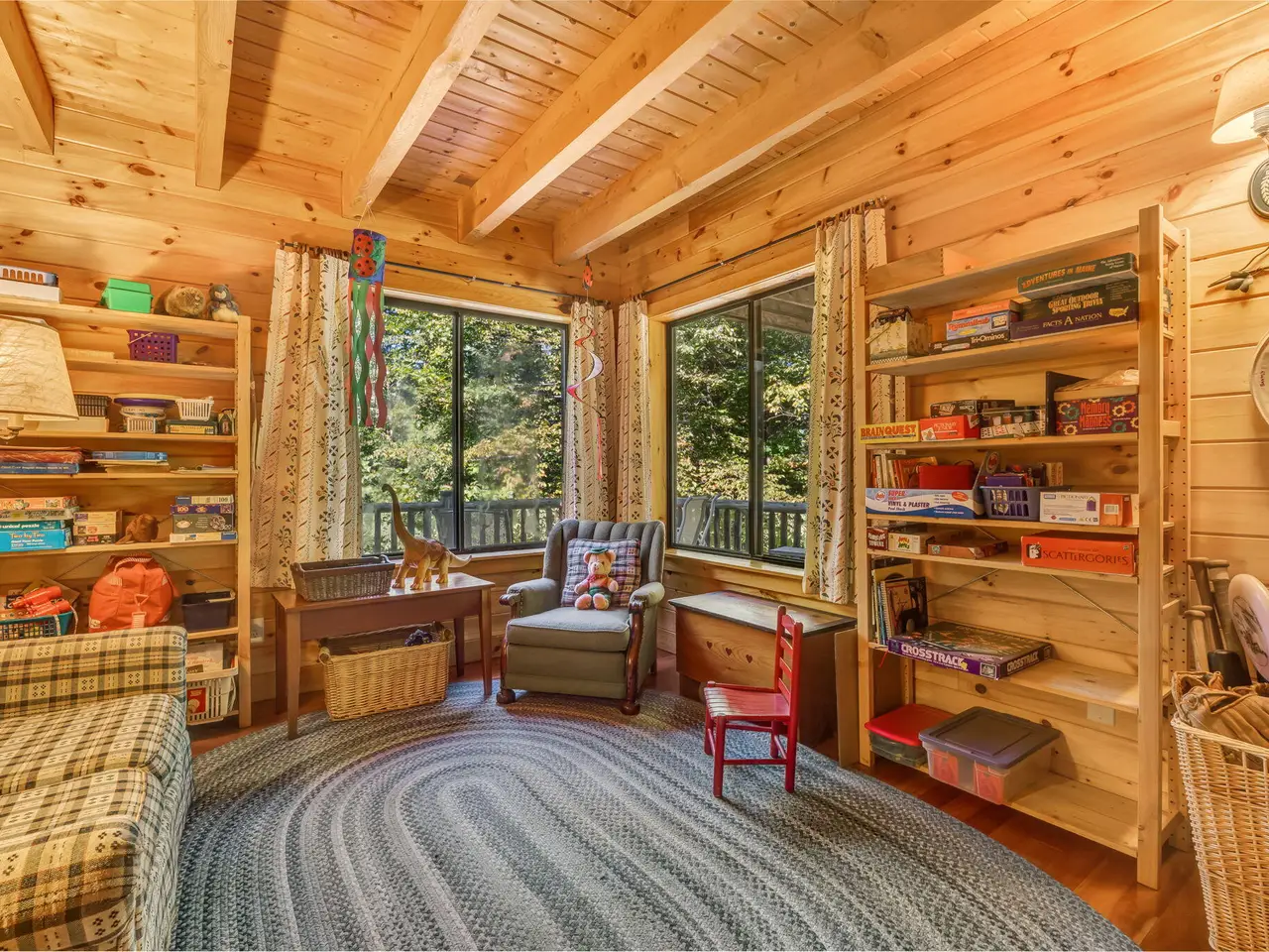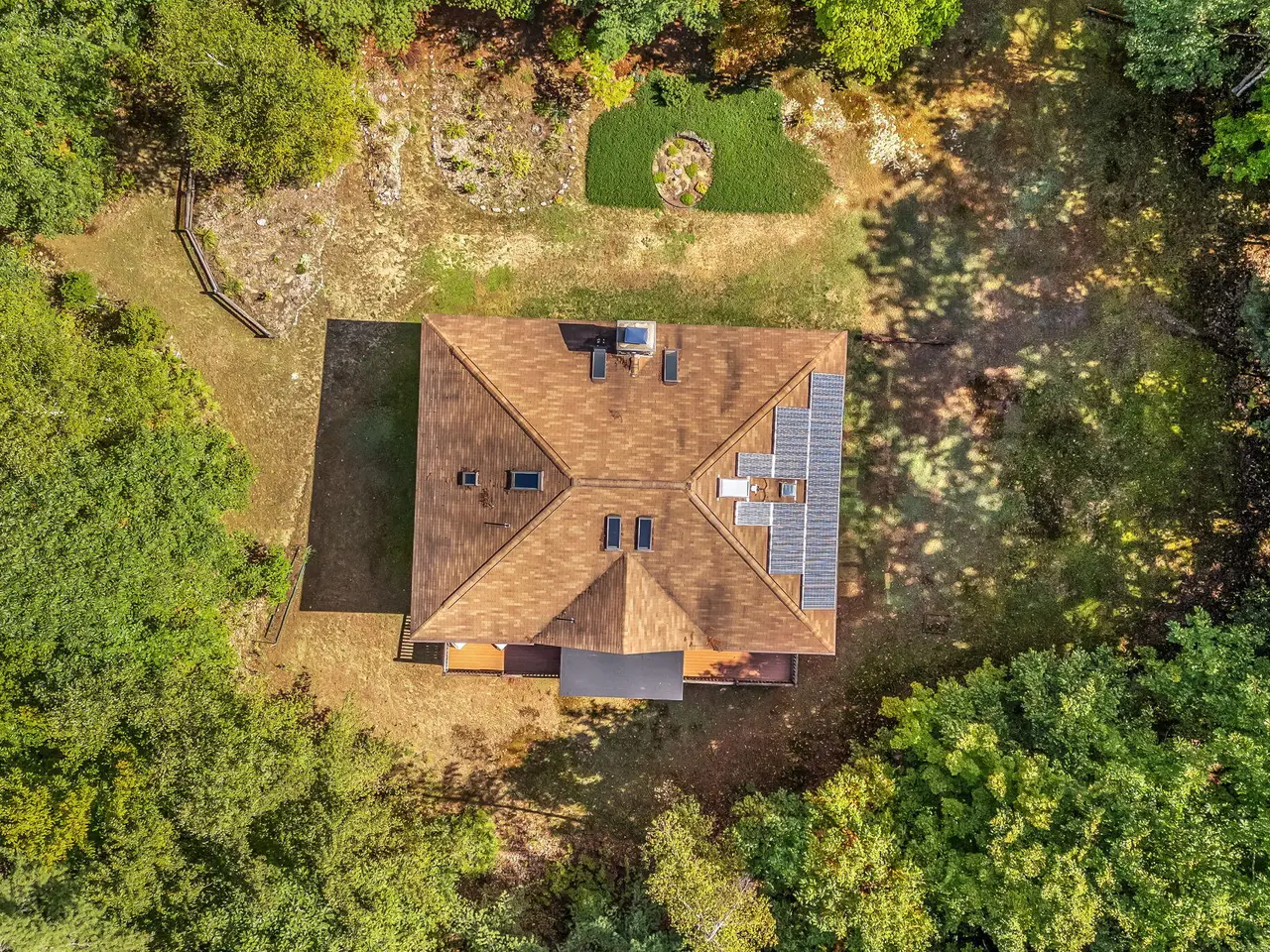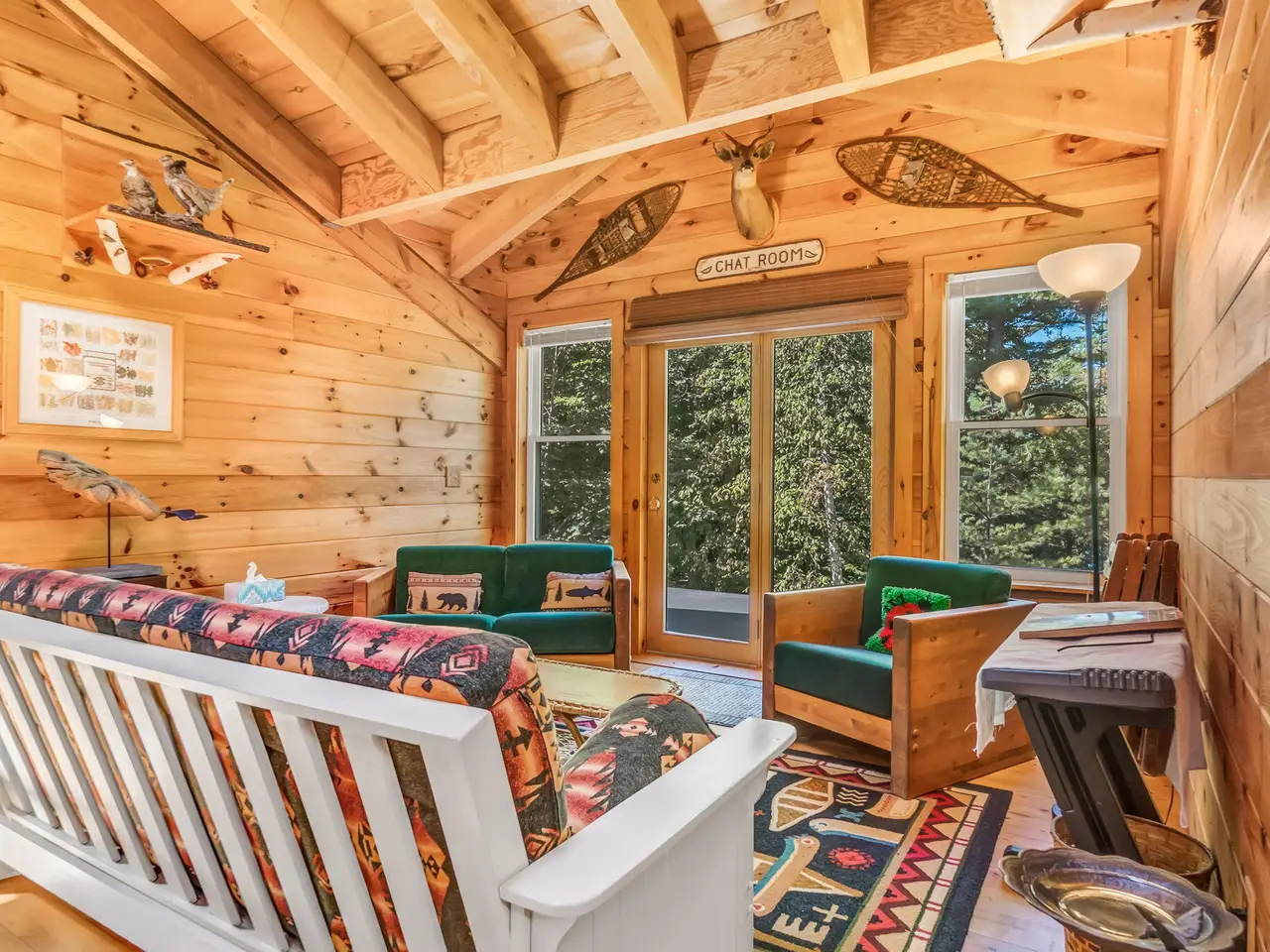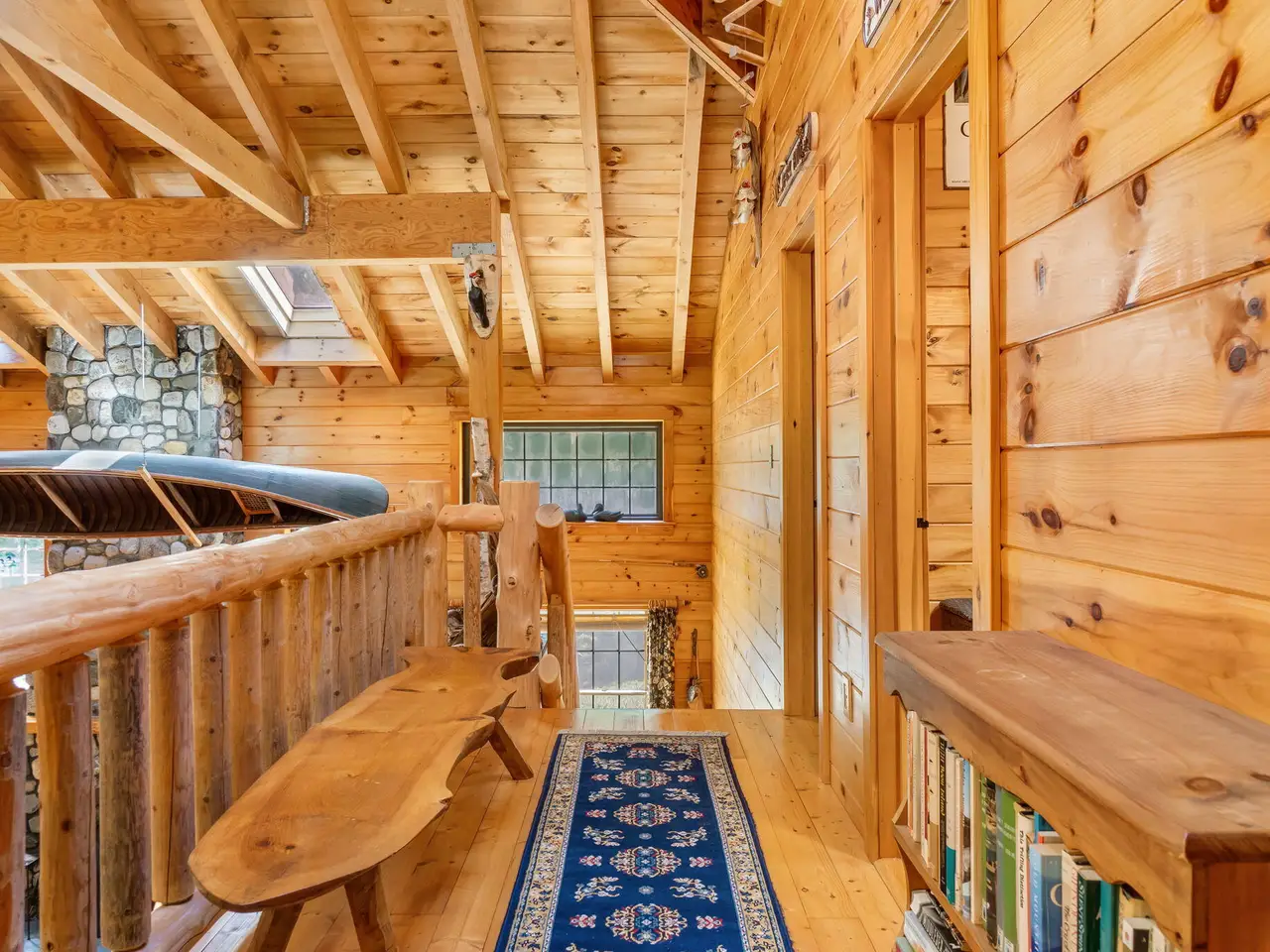 LOVEJOY POND Magnificent custom built Maine lodge architecturally designed to provide that classic, rustic feel with all the modern day amenities & system! Originally the Menatoma Camp ''Lodge'' sadly destroyed in a fire, this 2001 structure was built to encompass everything it means to be in nature at the lake with loved ones! The central living room is a wonderful place to gather around the gorgeous natural stone fireplace that reaches to a lofty ceiling with grand staircases on each side. Open game room & two dedicated dining areas adjacent to a fully equipped kitchen is ideal for entertaining large groups. Office/den & laundry room with half bath complete the main level, while 4 spacious bedrooms, two full baths, 2 walk-in linen closets & a nice sitting area complete the second level. Outside is a covered porch, 2 open decks & a wonderful screen porch allowing you to enjoy the outdoors while listening to the loons. The property is made up of 2 separate lots with 400' of beautiful lakefront with a gently sloping, pebble bottom swim area & private dock which can be accessed by a park-like walking path through the woods, or your own private road. While surrounded by woodlands on 3.74 acres, the rest of the association's amenities next door can easily be accessed by footpath or road. Dues include access to over 36 acres, 770' of shared lakefront with a sandy beach, protected swimming area with float, 2 large permanent docks, swim float & diving platform, Dining Hall, Laundry Building, Craft Shop, Tennis/Basketball/Pickleball Courts, Baseball Field, dumpster, grounds & tree service. Lovejoy is a beautiful lake with no public boat ramp, no invasive aquatic plants & excellent sport fishing with breeding pairs of loons that raise chicks on the lake each year! Lodge is fully insulated, has an 18 panel solar array supporting all needs, private septic system & access high speed internet if desired. Welcome to a comfortable, easy life at the lake with room for all!