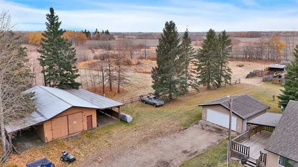 Fabulous opportunity with recent renovation upgrades! Invest in your future and enjoy complete privacy on this 80-acre parcel, located within Red Deer’s intermunicipal district along its eastern boundary. This property offers a wonderful rural lifestyle, a solid investment hold, dual-residence living, and multiple streams of farming income, including livestock, equestrian, solar, tree farming, market gardening, and grain. With its proximity to the city, this is a unique opportunity where your living investment is sure to appreciate over time. The property features a 2-storey main house (built in 1974), a mobile home (1991), a 24'x24' detached garage (1976), a 40'x26' insulated shop with cement flooring, a 50'x24' cold storage pole-style shop (1998), and numerous other outbuildings. The land is level, with approximately 32 acres of arable farmland featuring excellent soil quality, expansive pastures, low-lying areas, treed and brush sections, and a beautiful tree-lined driveway that leads from paved Range Road 270 to the yard site. The main home offers a functional layout with a main floor master bedroom, two living areas (one with a wood-burning fireplace), a kitchen complete with an indoor barbecue, and a renovated 2-piece bath. The expansive bonus room addition features a gas fireplace, patio doors to the south-facing deck, and a bar area perfect for entertaining. Upstairs, you'll find a roomy bedroom with a Juliette balcony, a 4-piece bathroom, and an adjoining space with two additional sleeping areas. The lower level is wide open and offers ample storage, a utility area, and Laundry. The well-maintained mobile home includes 2 bedrooms, 1 bathroom, upgraded vinyl windows (2007), a south-facing covered deck, and a parking shelter. Renovation highlights include new windows for both the house and mobile home (2007), a fully renovated main floor 2-piece bath, and a complete second floor renovation with new doors, trim, shower, flooring, and paint. Additional upgrades include shingles and siding on the house (2011) and a replacement of the septic tank (1992). Zoned A1 Future Urban Development District, this property allows for agricultural and related uses until the land is needed for urban development. This property is a rare combination of lifestyle, investment, income potential, and privacy—an opportunity that rarely comes along!