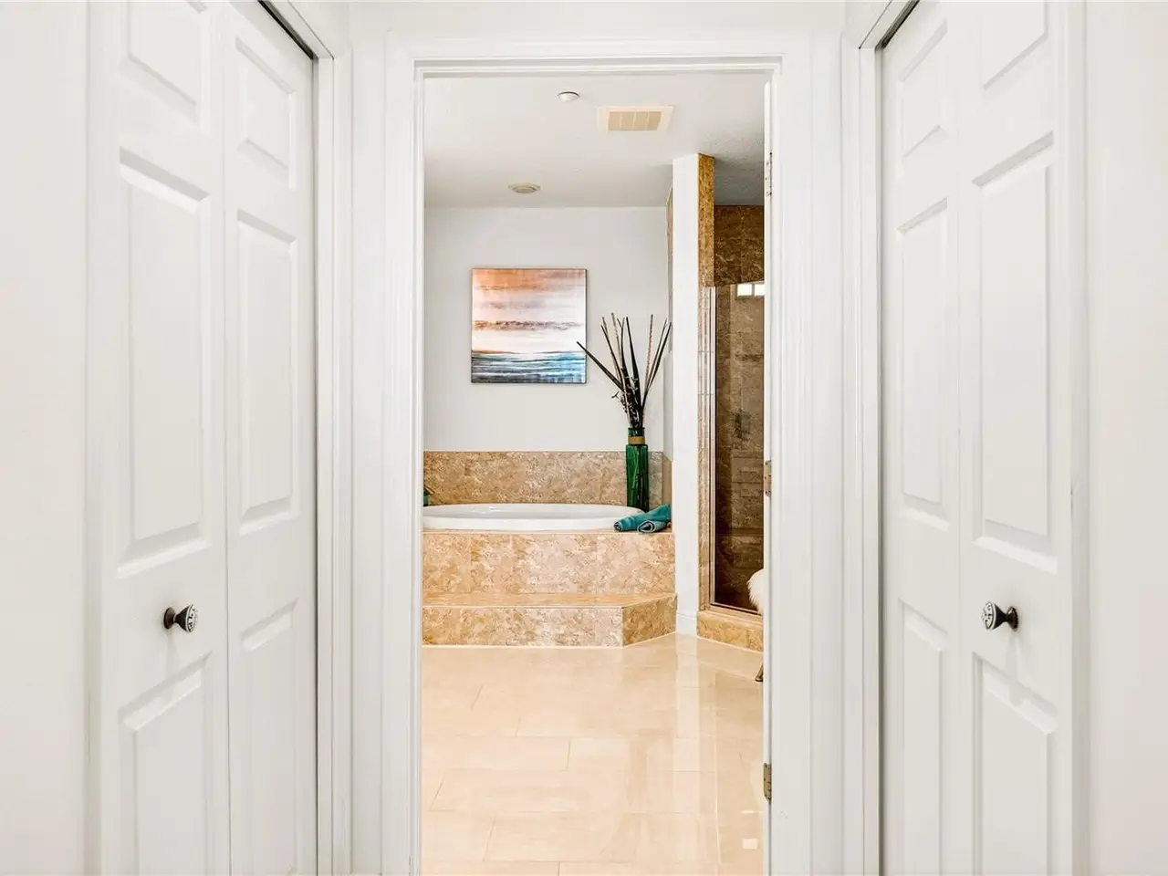 • Tray ceilings, designer lighting, and polished tile floors throughout