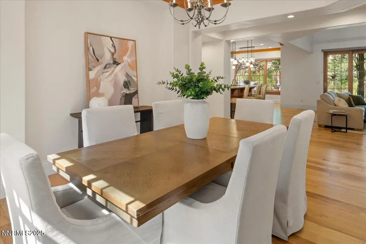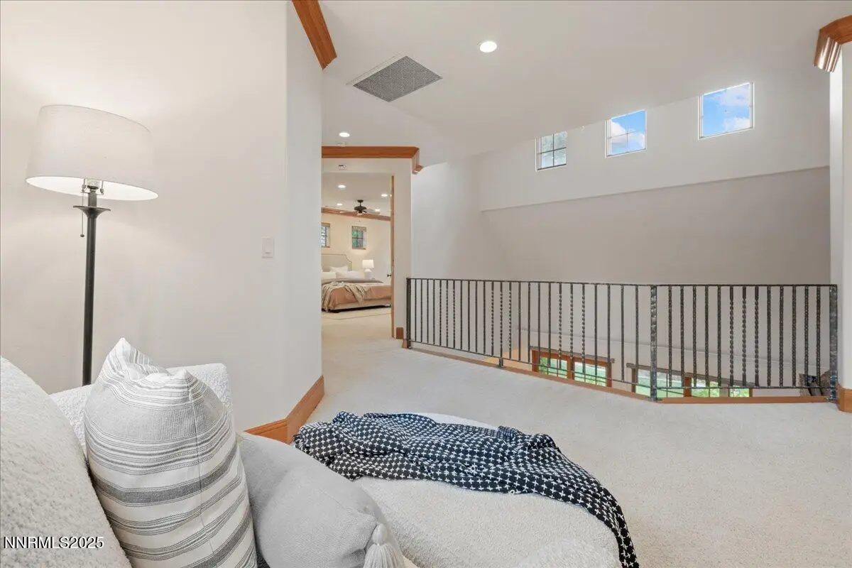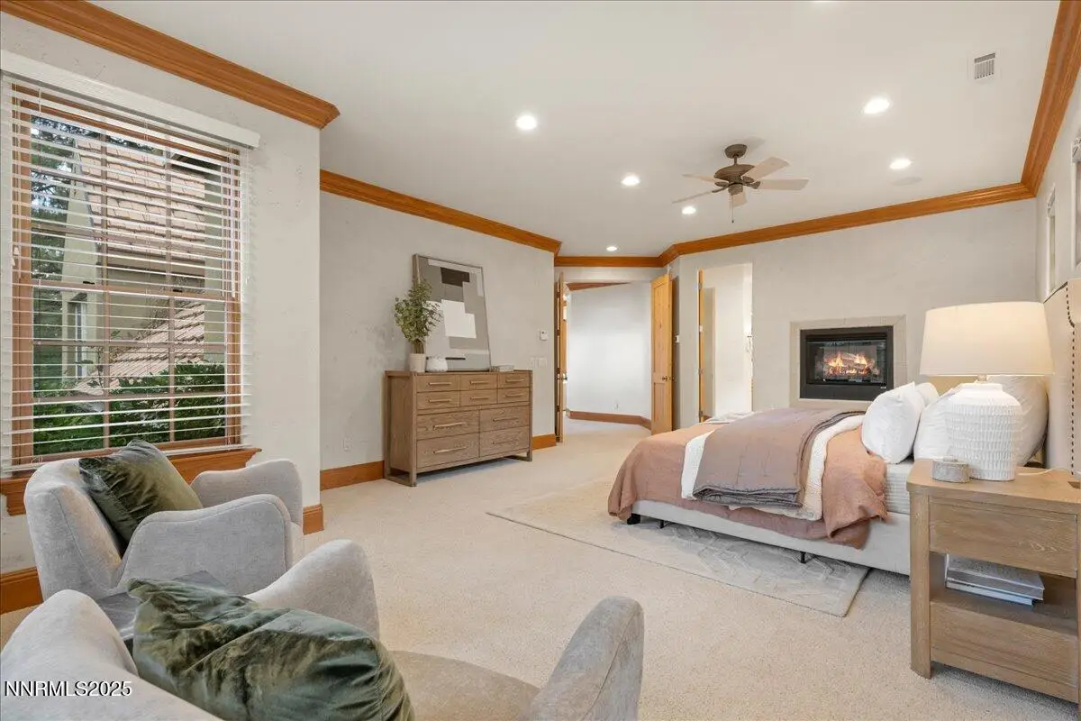 One of the most spacious cottage models in Montreux! Beautifully appointed with soaring ceilings, elegant hickory flooring, solid Knotty Alder doors and closets, Dacor, SubZero, and Bosch appliances, water softener, copper gutters, extensive stonework, paver driveways and patios, and resilient R-50+ insulated concrete form walls for superior durability and insulation. The main level features the Kitchen, Great Room, Dining Room, Breakfast Room, Office Area, Guest Room, Full Bath and Laundry Room. Great Room has large stone fireplace with TV above. A large Owner's Suite, Junior Primary Suite, and open Loft reside upstairs. The Owner's Suite impresses with a cozy sitting area, a dual-sided fireplace, and a large walk-in closet with custom built-in drawers and shelving. The private backyard provides a forested retreat with its shaded pergola and climbing vines, a spacious paver patio, and a peaceful seasonal creek behind the property. The private pergola-covered patio is ready for your spa with its 220v wiring. As part of the Montreux Cottages, the association takes care of exterior maintenance and landscaping, allowing you to enjoy your home without worries—stay comfortably or come and go as you please. Just a short stroll or golf cart ride from the world-class Montreux Clubhouse, you'll have access to an array of amenities, including golf, dining, fitness center, and social activities. Only 15 minutes from Mt. Rose Ski Resort, 20 minutes from Reno-Tahoe International Airport, and a 30-minute scenic drive to the stunning shores of Lake Tahoe.
