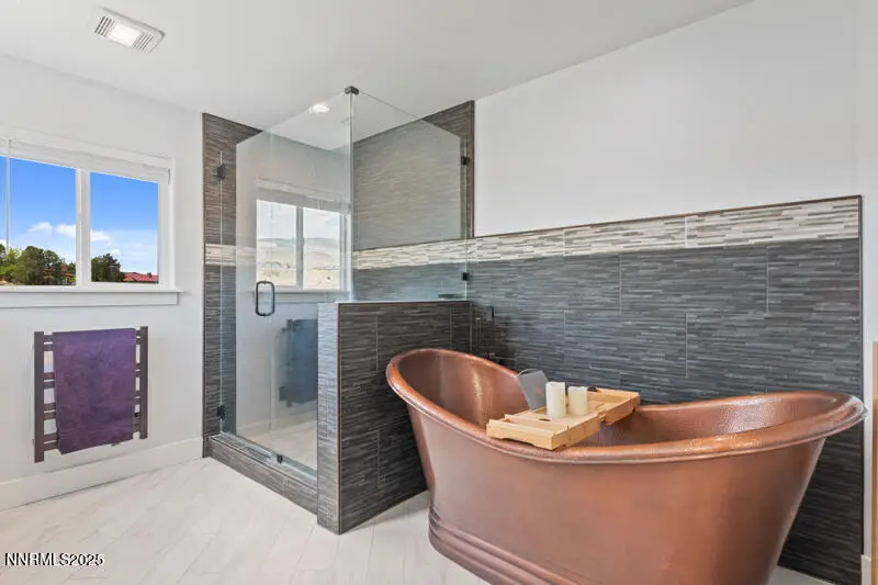 This beautiful two-story home offers 3 spacious bedrooms, 2.5 bathrooms, perfect for comfortable family living. The property sits on a 2.5-acre lot with stunning unobstructed views of the city and surrounding mountains, and no HOA. The updated kitchen features a pantry with wine fridge, updated appliances and flows seamlessly into an open concept dining and living area with a cozy pellet stove- ideal for entertaining. A separate family room provides the perfect space for relaxing or enjoying a game of pool. Upstairs, the luxurious master suite includes a copper soaking tub, walk-in shower, dual sinks and radiant heated floors with a warming towel rack for added comfort. The convenient upstairs laundry room is equipped with shelving and counter space. Fresh interior paint throughout, including baseboards, give the home a crisp, clean feel. Step outside to your private gated and heated saltwater pool with a cover and hot tub and enjoy entertaining on your paver patio with friends. A separate 1200 sq ft shop offers heat with 220-volt power and a 2-post car lift. Come see all that this property has to offer to make your own paradise getaway.