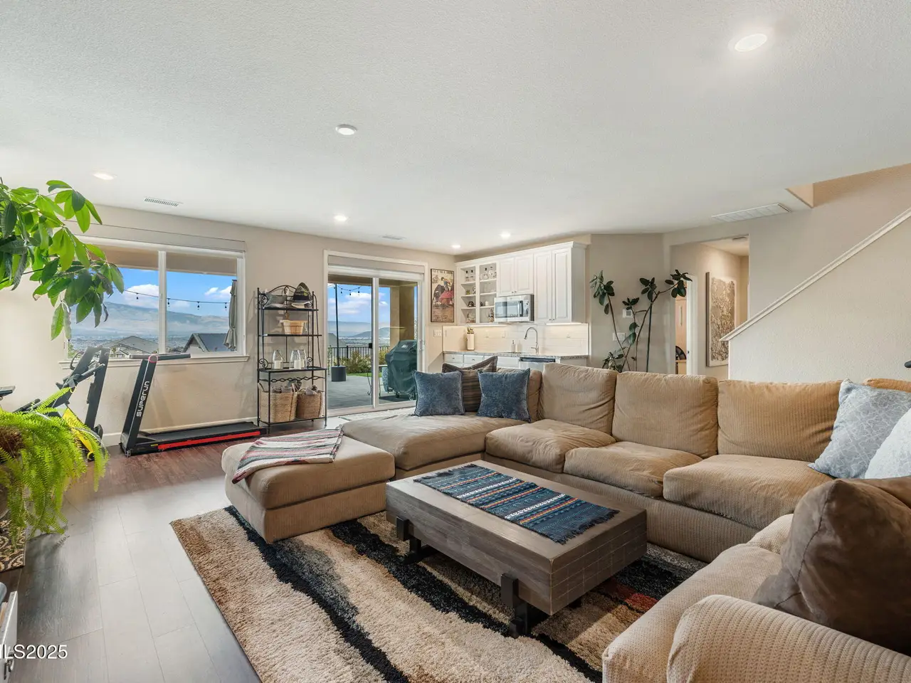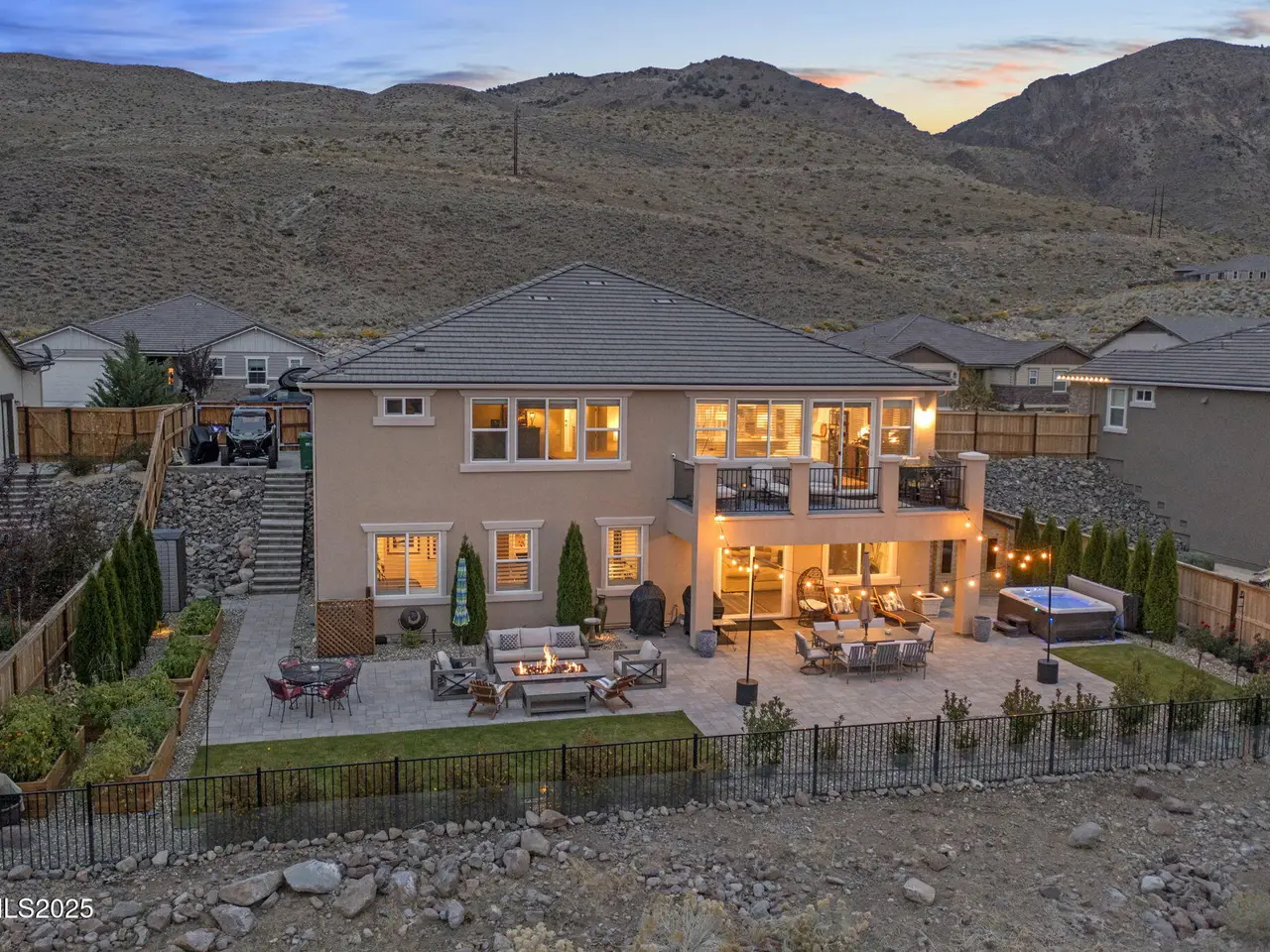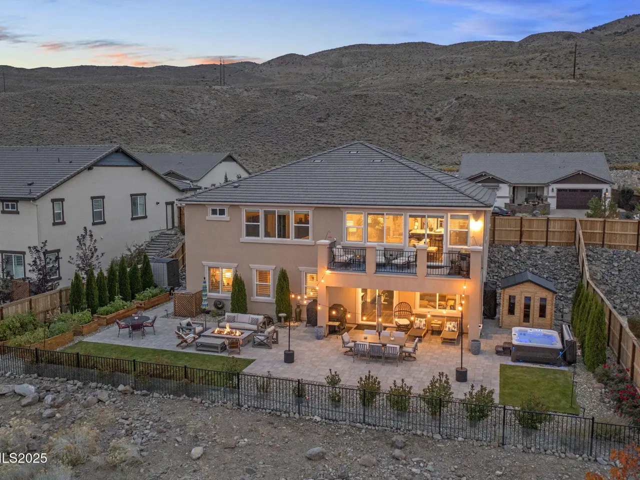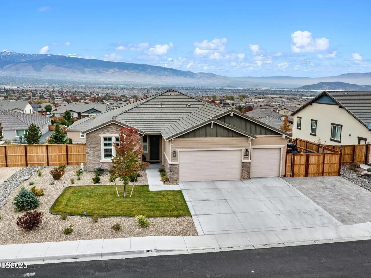 Exceptional Custom Home with Over 200K in Upgrades! Unmatched panoramic views of Mt. Rose and Downtown Reno! Energy-efficient features include a tankless water heater, dual-pane low-E windows, a Honeywell Smart Thermostat, Ring Doorbell, and a 14 SEER HVAC system—providing year-round comfort and savings. Additional upgrades include custom gutters, a whole-home upgraded Wi-Fi system, and integrated smart-home technology for seamless modern living. Enjoy two outdoor living spaces, including an elevated deck, perfectly positioned to capture the stunning views—ideal for entertaining or unwinding. The finished garage features epoxy flooring, built-in shelving, and abundant storage—both stylish and functional. Professionally designed landscaping by Fire Sky Design and NVision Landscaping creates a tranquil outdoor retreat, complete with four 8x2 raised garden beds and one 3x4 raised garden bed. Unwind in the HotSpring spa or the fully finished outdoor sauna for year-round relaxation. A highlight of this home is the multigenerational living area, complete with a private kitchenette, upgraded cabinetry, granite counters, stainless steel appliances, and a full bathroom—ideal for guests, extended family, or independent living. Inside, designer flooring flows throughout, including hardwood, tile, and plush carpet, complemented by elegant Alaska White granite countertops. The gourmet kitchen features GE Profile stainless steel appliances, 42-inch custom cabinetry, granite slab counters, and a striking tile backsplash. The primary suite is designed for rest and renewal, offering dual vanities, a soaking tub, and an oversized walk-in closet. Custom designer lighting and LED chandeliers enhance every space with warmth and elegance, while D-LUX Window Coverings and plantation shutters complete the sophisticated design. RV access/storage measuring 12x22 adds exceptional convenience to this stunning home.