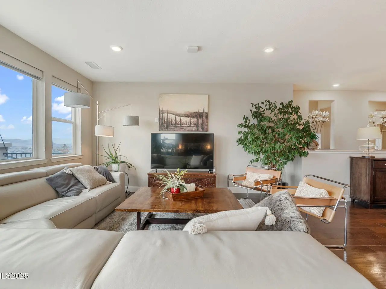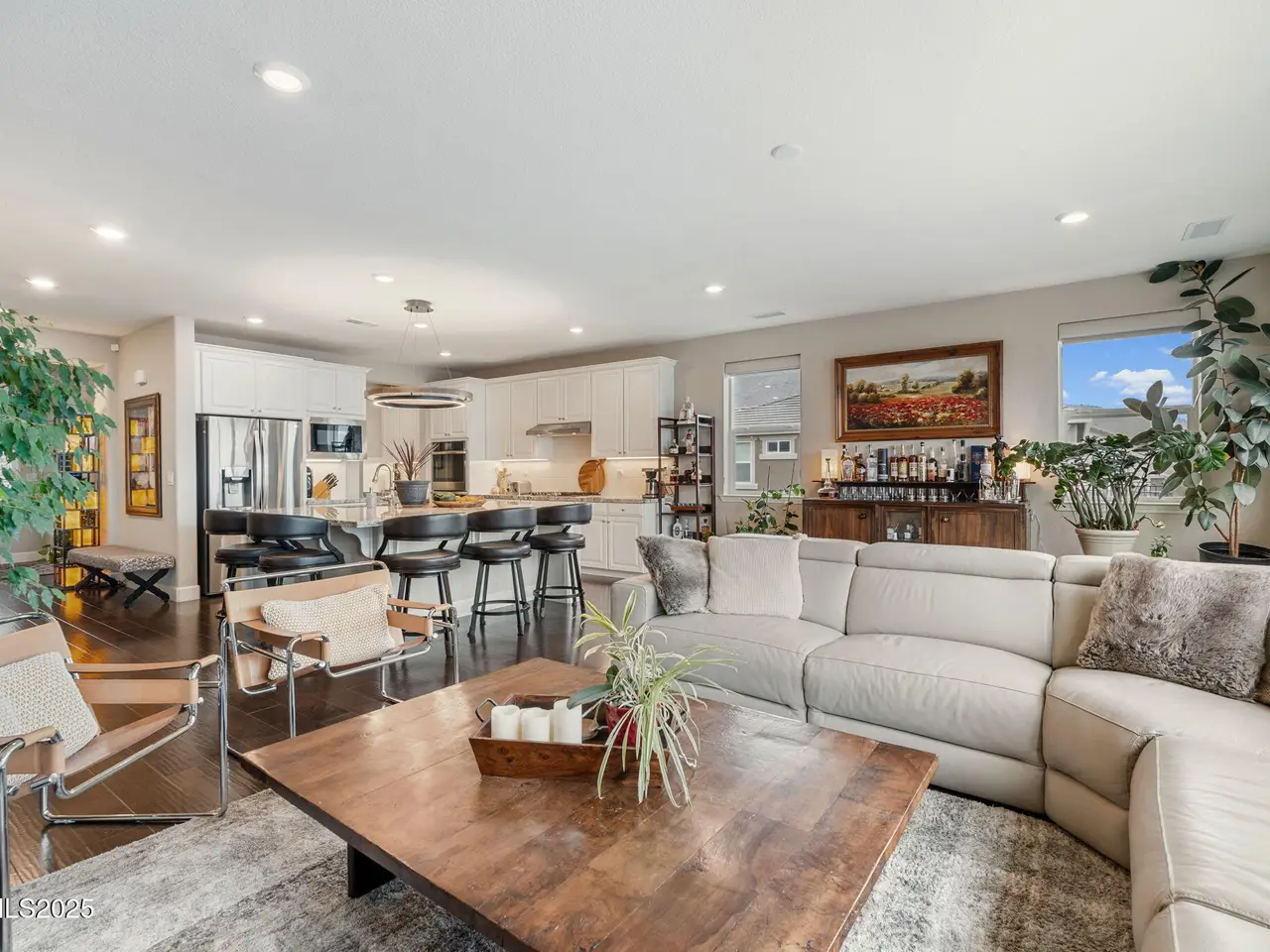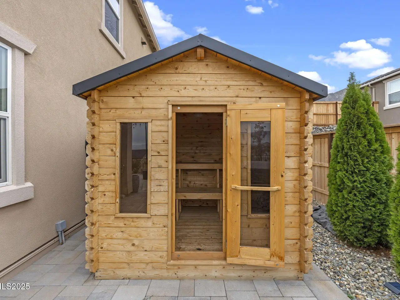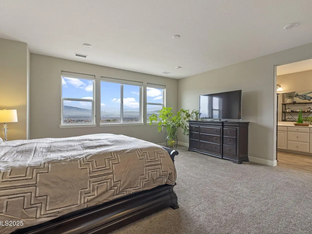 Exceptional Custom Home with Over 200K in Upgrades! Unmatched panoramic views of Mt. Rose and Downtown Reno! Energy-efficient features include a tankless water heater, dual-pane low-E windows, a Honeywell Smart Thermostat, Ring Doorbell, and a 14 SEER HVAC system—providing year-round comfort and savings. Additional upgrades include custom gutters, a whole-home upgraded Wi-Fi system, and integrated smart-home technology for seamless modern living. Enjoy two outdoor living spaces, including an elevated deck, perfectly positioned to capture the stunning views—ideal for entertaining or unwinding. The finished garage features epoxy flooring, built-in shelving, and abundant storage—both stylish and functional. Professionally designed landscaping by Fire Sky Design and NVision Landscaping creates a tranquil outdoor retreat, complete with four 8x2 raised garden beds and one 3x4 raised garden bed. Unwind in the HotSpring spa or the fully finished outdoor sauna for year-round relaxation. A highlight of this home is the multigenerational living area, complete with a private kitchenette, upgraded cabinetry, granite counters, stainless steel appliances, and a full bathroom—ideal for guests, extended family, or independent living. Inside, designer flooring flows throughout, including hardwood, tile, and plush carpet, complemented by elegant Alaska White granite countertops. The gourmet kitchen features GE Profile stainless steel appliances, 42-inch custom cabinetry, granite slab counters, and a striking tile backsplash. The primary suite is designed for rest and renewal, offering dual vanities, a soaking tub, and an oversized walk-in closet. Custom designer lighting and LED chandeliers enhance every space with warmth and elegance, while D-LUX Window Coverings and plantation shutters complete the sophisticated design. RV access/storage measuring 12x22 adds exceptional convenience to this stunning home.