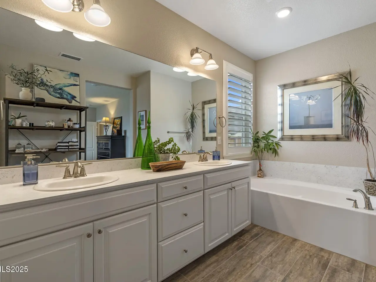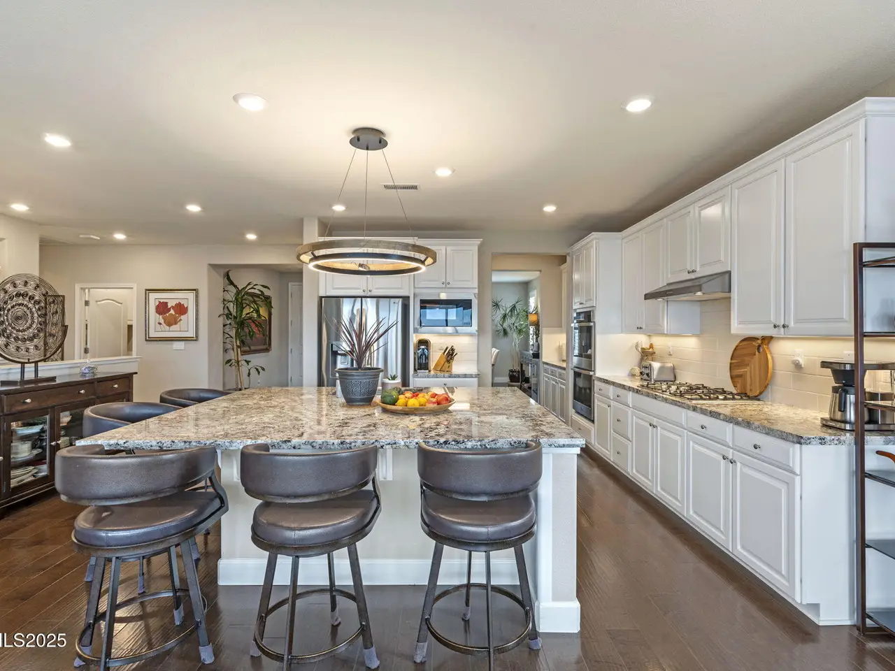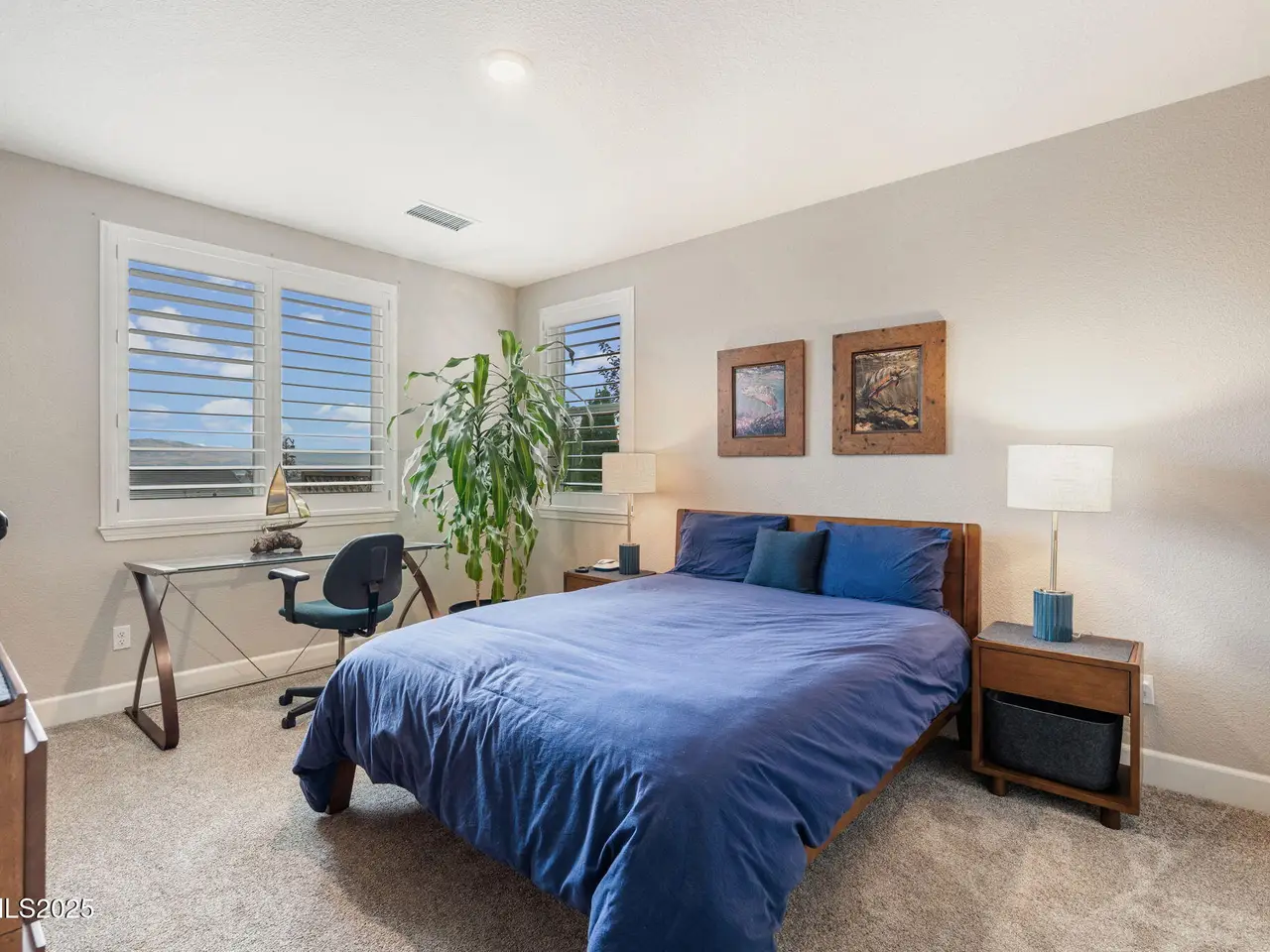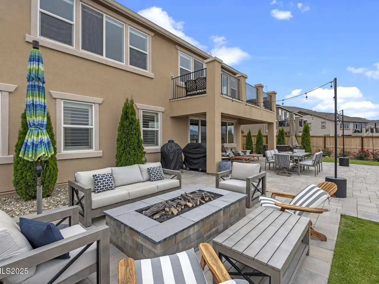 Exceptional Custom Home with Over 200K in Upgrades! Unmatched panoramic views of Mt. Rose and Downtown Reno! Energy-efficient features include a tankless water heater, dual-pane low-E windows, a Honeywell Smart Thermostat, Ring Doorbell, and a 14 SEER HVAC system—providing year-round comfort and savings. Additional upgrades include custom gutters, a whole-home upgraded Wi-Fi system, and integrated smart-home technology for seamless modern living. Enjoy two outdoor living spaces, including an elevated deck, perfectly positioned to capture the stunning views—ideal for entertaining or unwinding. The finished garage features epoxy flooring, built-in shelving, and abundant storage—both stylish and functional. Professionally designed landscaping by Fire Sky Design and NVision Landscaping creates a tranquil outdoor retreat, complete with four 8x2 raised garden beds and one 3x4 raised garden bed. Unwind in the HotSpring spa or the fully finished outdoor sauna for year-round relaxation. A highlight of this home is the multigenerational living area, complete with a private kitchenette, upgraded cabinetry, granite counters, stainless steel appliances, and a full bathroom—ideal for guests, extended family, or independent living. Inside, designer flooring flows throughout, including hardwood, tile, and plush carpet, complemented by elegant Alaska White granite countertops. The gourmet kitchen features GE Profile stainless steel appliances, 42-inch custom cabinetry, granite slab counters, and a striking tile backsplash. The primary suite is designed for rest and renewal, offering dual vanities, a soaking tub, and an oversized walk-in closet. Custom designer lighting and LED chandeliers enhance every space with warmth and elegance, while D-LUX Window Coverings and plantation shutters complete the sophisticated design. RV access/storage measuring 12x22 adds exceptional convenience to this stunning home.