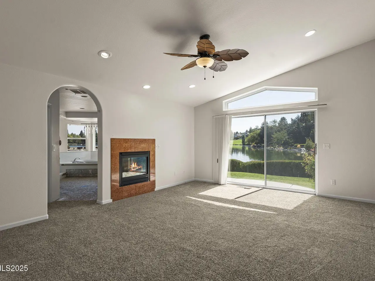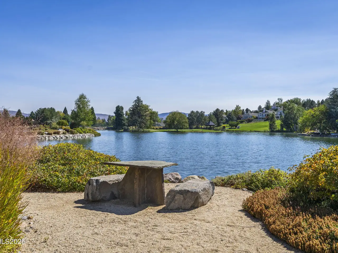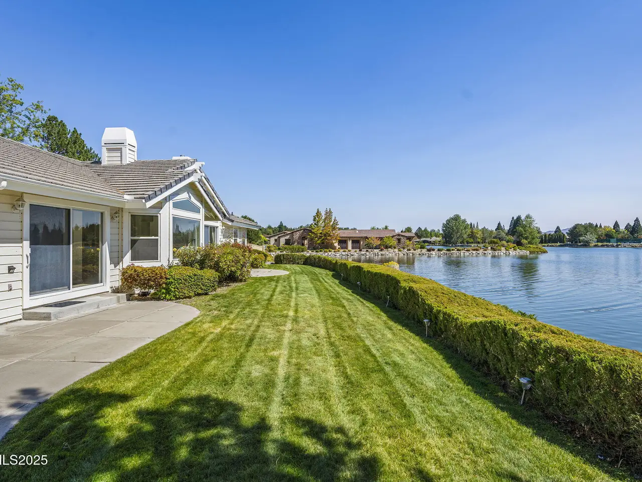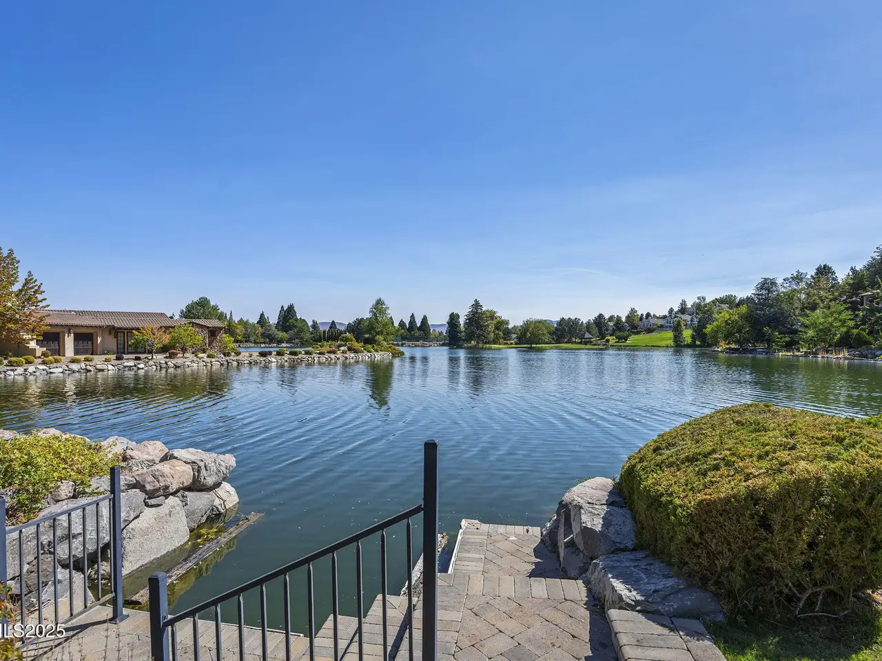 Enjoy beautiful views of peaceful Lake Stanley and the Lakeridge Golf Course island hole #15 from this 1/3 acre lakefront property. The Lake Ridge neighborhood is a private gated retreat with 24-hour security, tennis, & private marina for electric and muscle powered watercraft. Throughout this 4 bedroom, 3 bath residence, you'll find multiple living areas and three fireplaces - perfect for creating warm, inviting spaces throughout. Great for entertaining while expansive windows frame the tranquil views offering privacy within the 3-home cul-de-sac. The primary suite is spacious, with ample closet space, and the bathroom has been stripped down, offering a blank canvas for your architectural vision and plenty of potential for luxury upgrades. The property exudes a quiet charm, and could be amazing with the right touch. Outside, the landscaping is mature and there is a large 3-car garage that provides plenty of storage and work space plus a heated paver driveway so no snow shoveling is needed. This neighborhood has the feel of a private retreat, but is centrally located with close proximity to shopping, schools, dining, & less than 15 minutes from the Reno/Tahoe Airport.