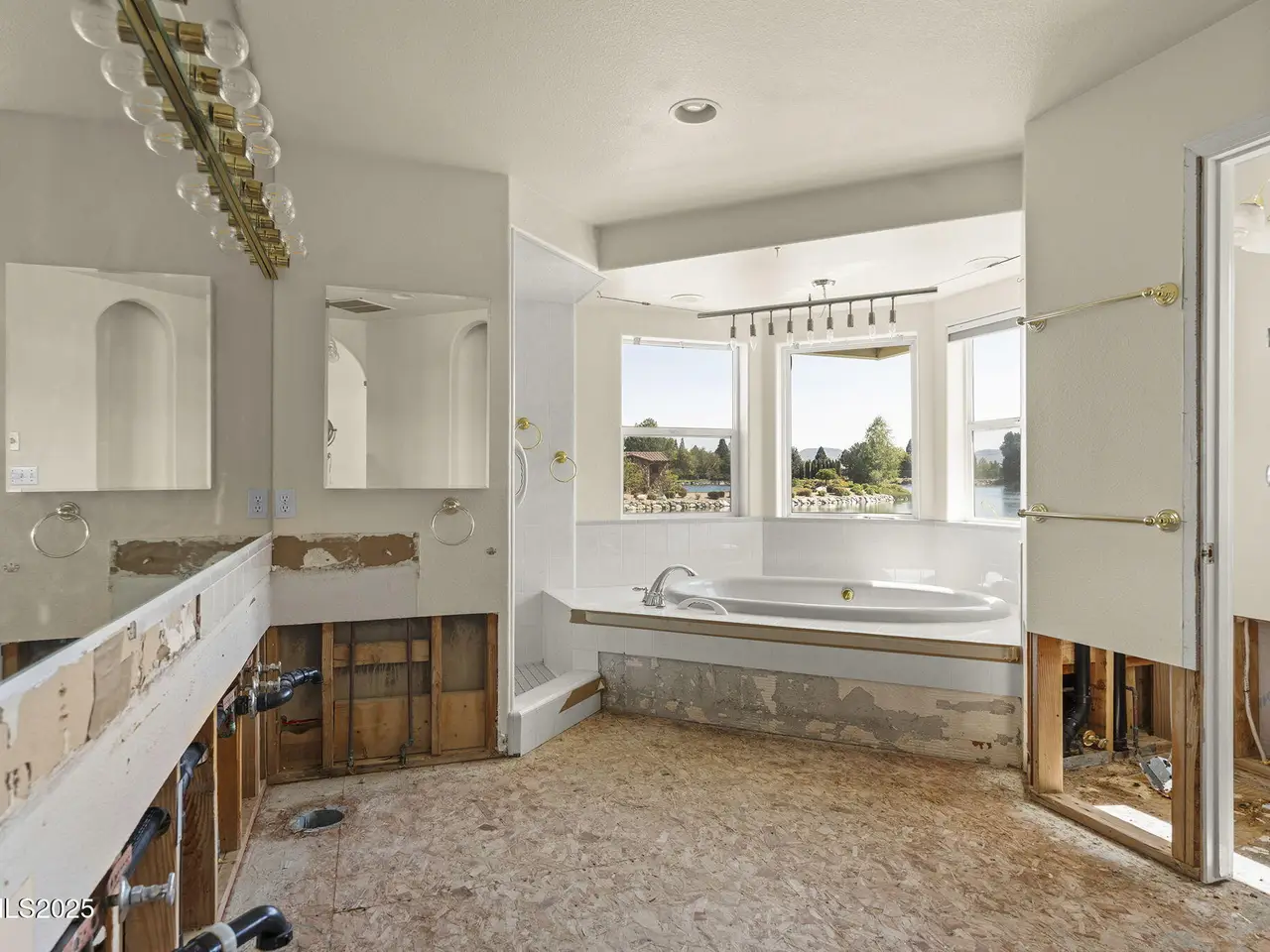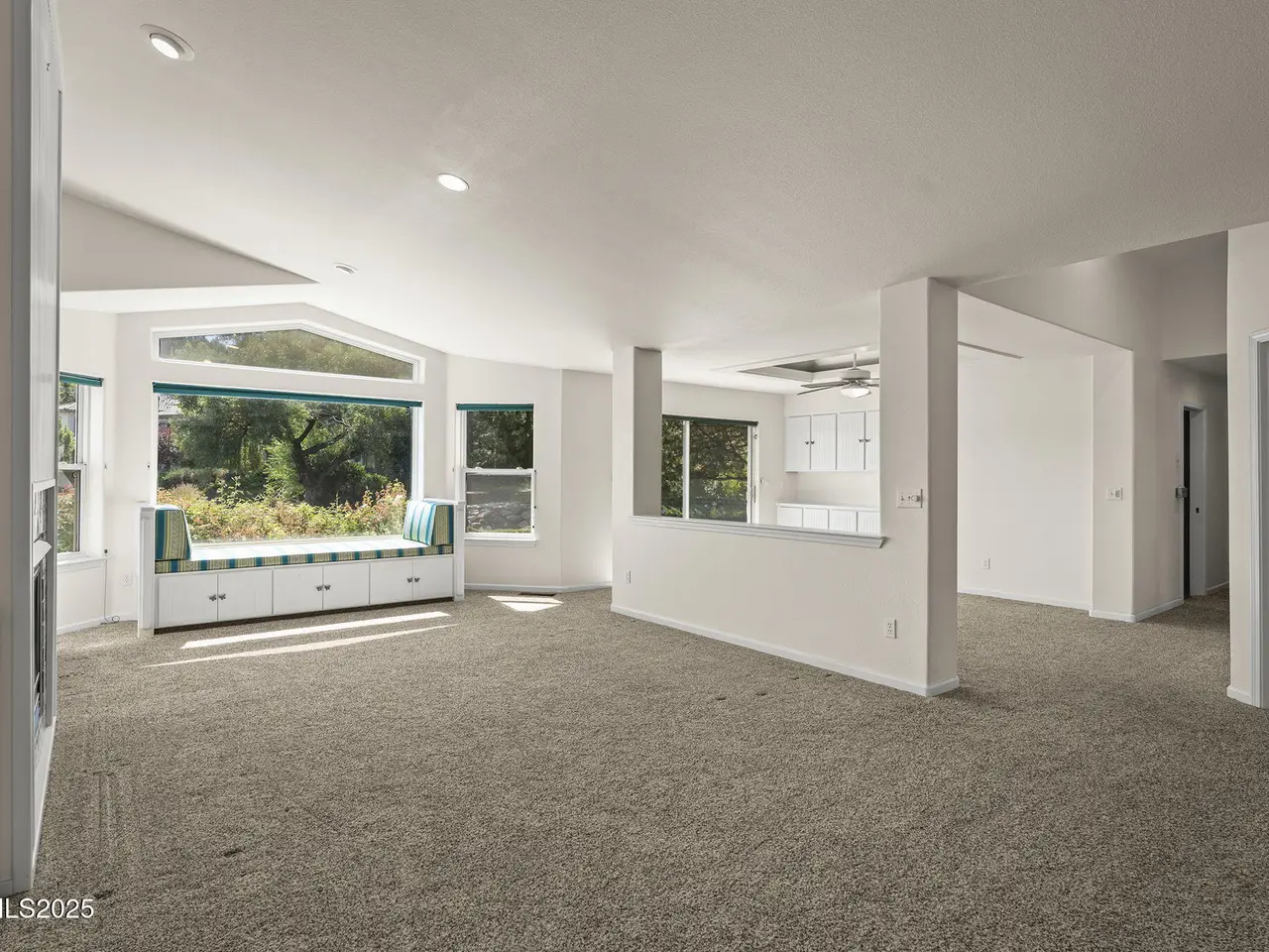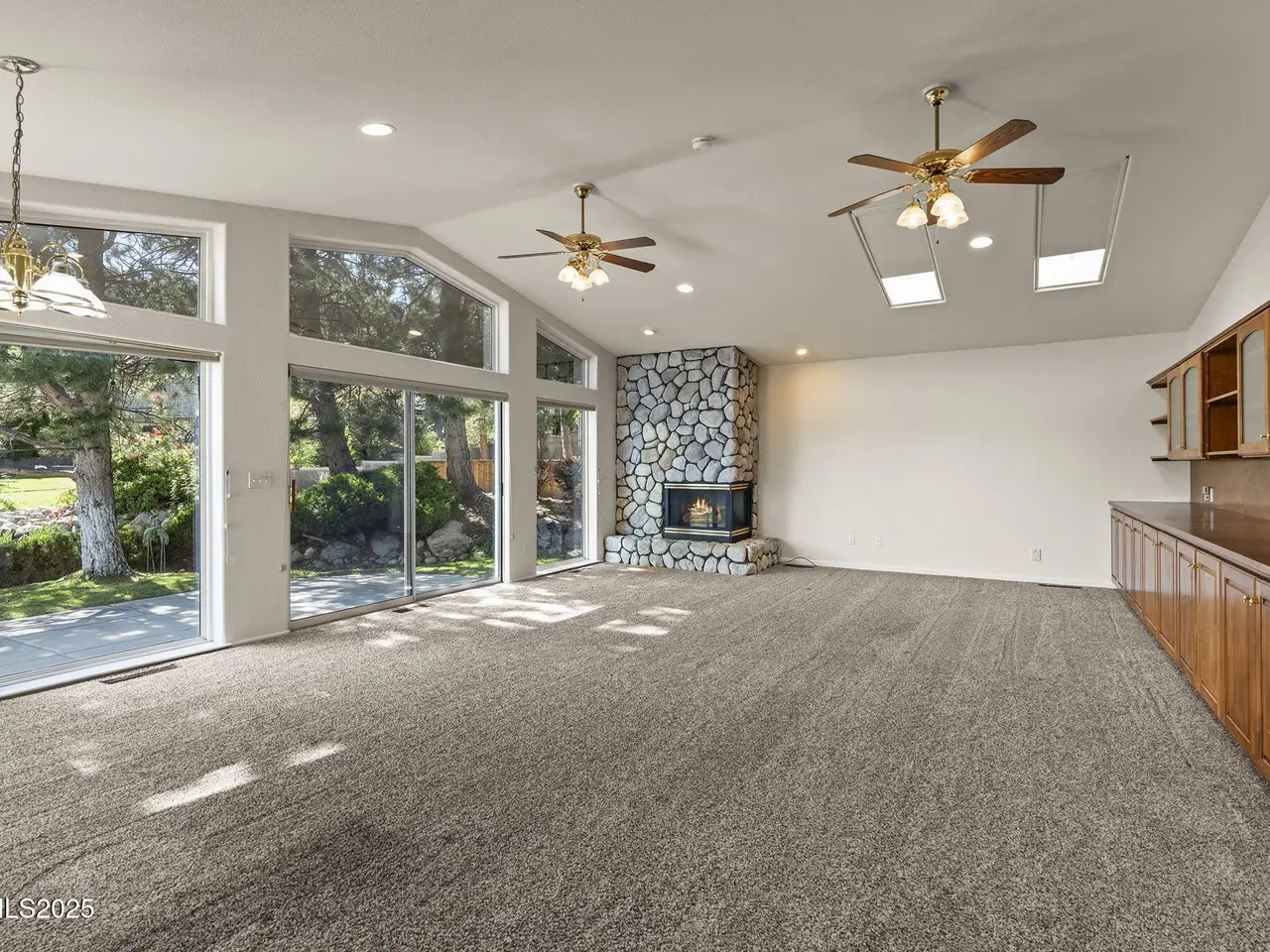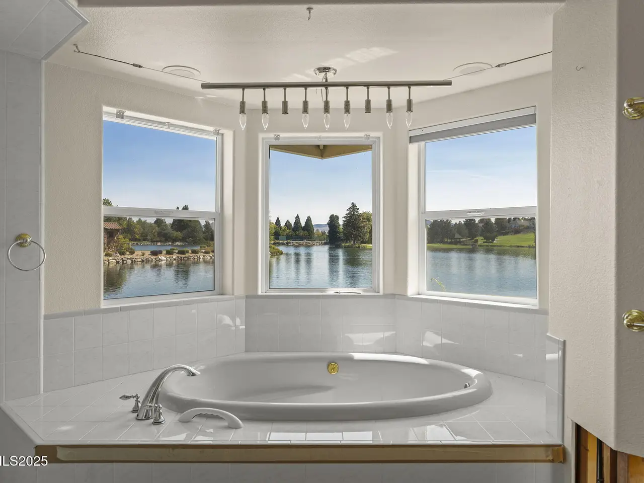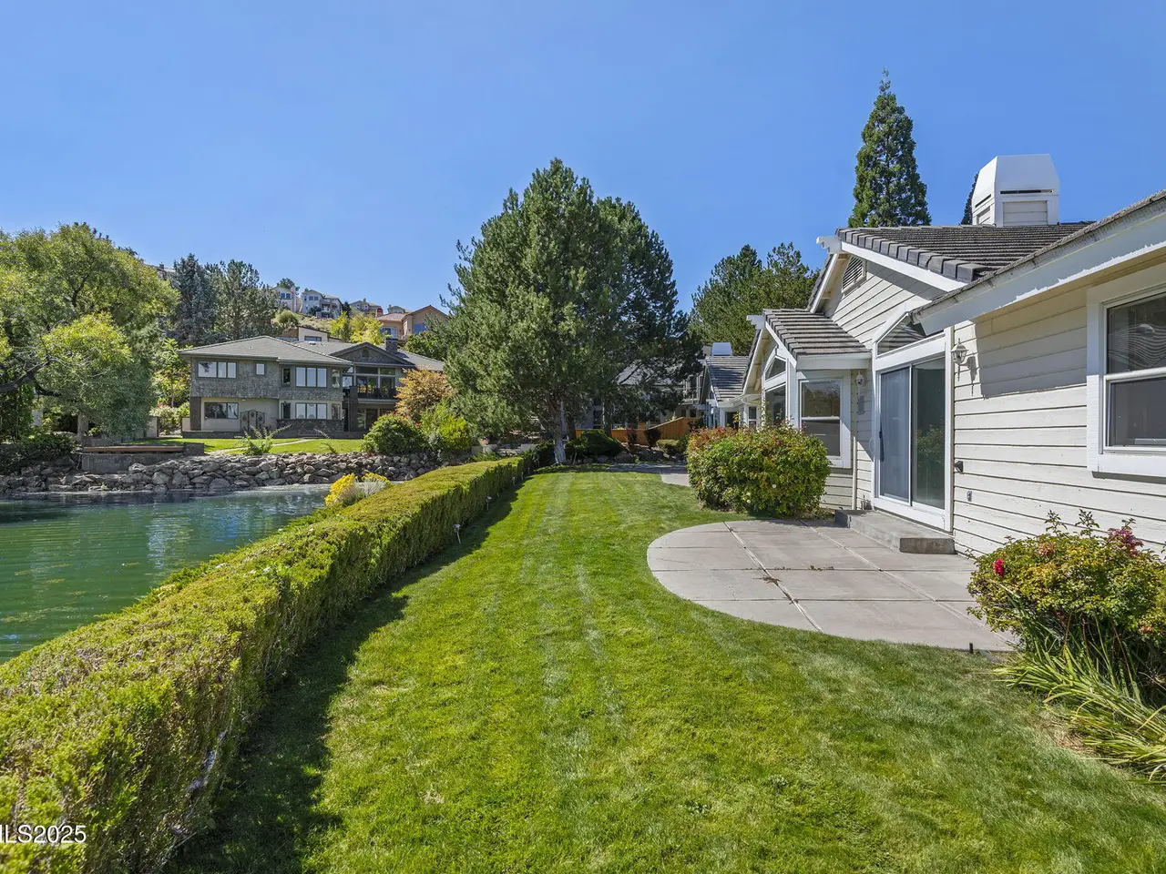 Enjoy beautiful views of peaceful Lake Stanley and the Lakeridge Golf Course island hole #15 from this 1/3 acre lakefront property. The Lake Ridge neighborhood is a private gated retreat with 24-hour security, tennis, & private marina for electric and muscle powered watercraft. Throughout this 4 bedroom, 3 bath residence, you'll find multiple living areas and three fireplaces - perfect for creating warm, inviting spaces throughout. Great for entertaining while expansive windows frame the tranquil views offering privacy within the 3-home cul-de-sac. The primary suite is spacious, with ample closet space, and the bathroom has been stripped down, offering a blank canvas for your architectural vision and plenty of potential for luxury upgrades. The property exudes a quiet charm, and could be amazing with the right touch. Outside, the landscaping is mature and there is a large 3-car garage that provides plenty of storage and work space plus a heated paver driveway so no snow shoveling is needed. This neighborhood has the feel of a private retreat, but is centrally located with close proximity to shopping, schools, dining, & less than 15 minutes from the Reno/Tahoe Airport.