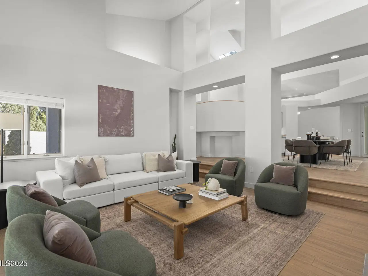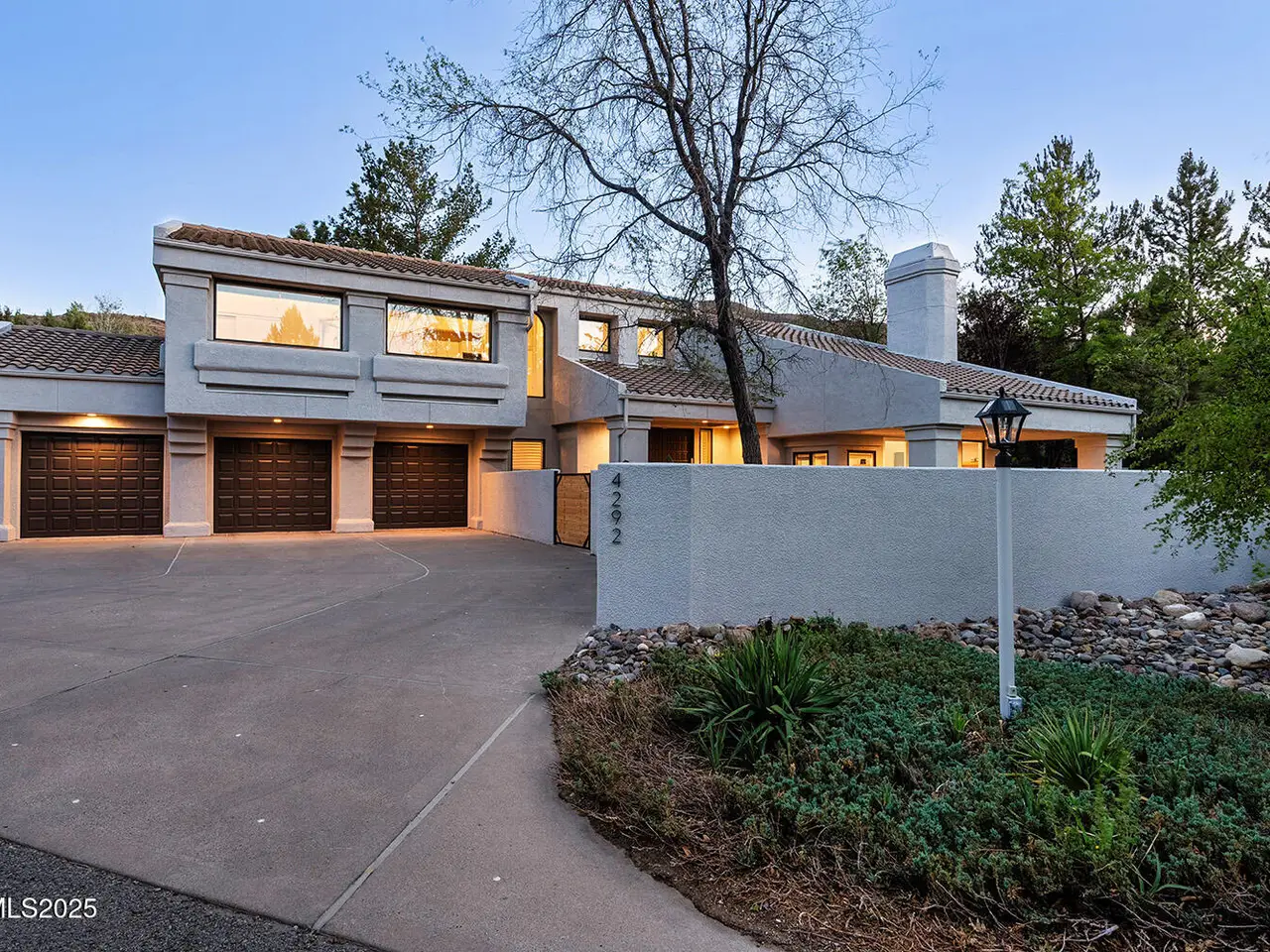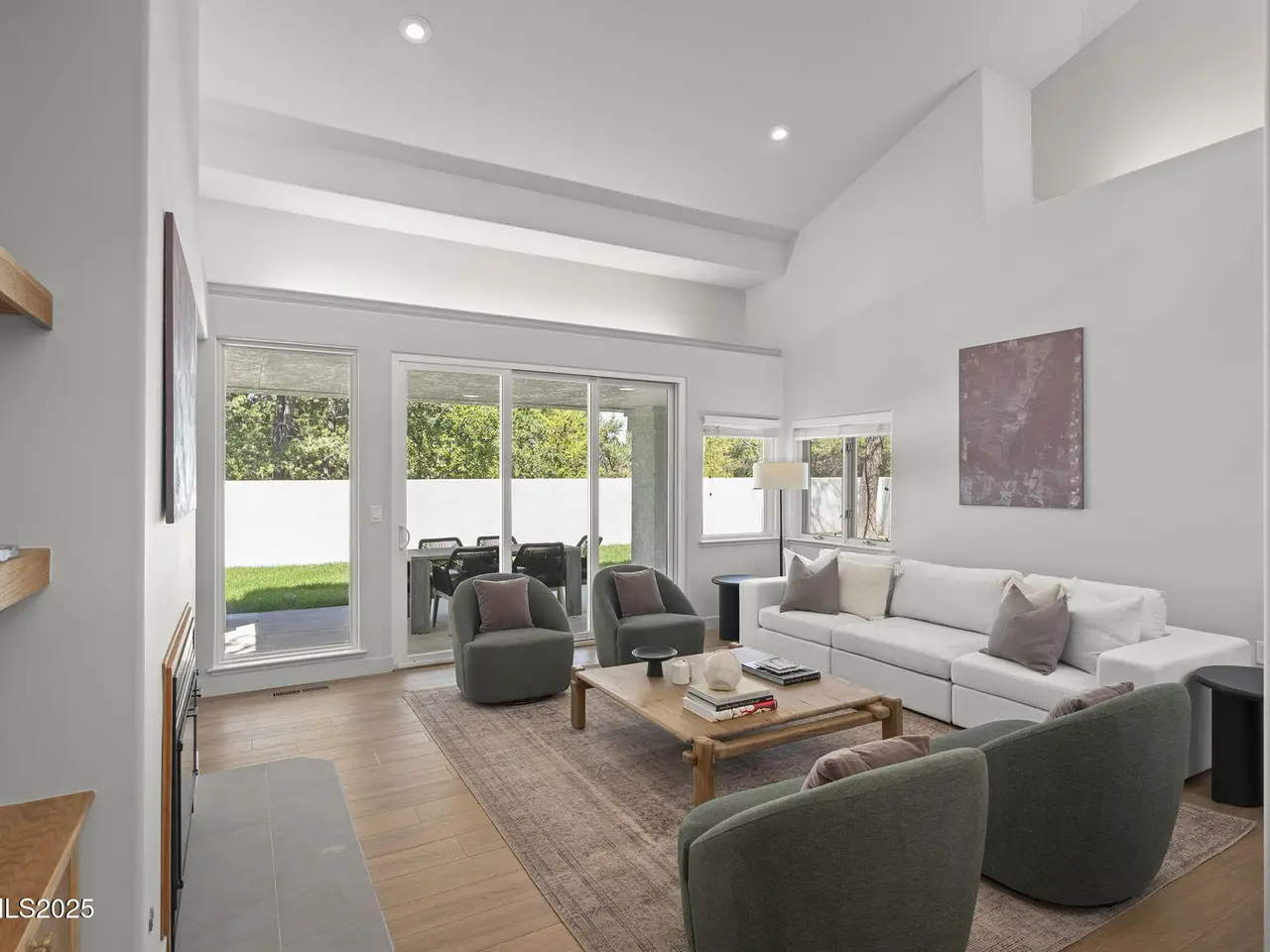 Extensively Renovated in the Heart of Caughlin Ranch. This newly reimagined custom home offers the perfect balance of outdoor entertaining and refined living. Nestled in one of Reno's most desirable neighborhoods, surrounded by miles of beautifully maintained walking and biking trails, tranquil ponds and open green space are just steps from your front door. Over the past year, this home has undergone a stunning transformation with over six hundred thousand dollars in recent renovations and improvements—every detail chosen to blend modern sophistication with the natural beauty of its setting. Soaring cathedral ceilings rise above expansive living areas anchored by two elegant fireplaces. Walls of glass and skylights fill the space with natural light, framing views of mature trees and the mountains beyond. Multiple covered patios create seamless indoor-outdoor living—ideal for hosting gatherings, enjoying a quiet morning coffee, or savoring an evening glass of wine. The stunning chef's kitchen flows effortlessly into the great room, creating a warm hub for daily living. A generous island invites conversation, while refinished cabinets, designer lighting, a premium induction cooktop, farmhouse sink, and custom pantry combine style with function, making cooking and entertaining a joy. On the main level, the oversized primary suite offers a serene retreat. Spa-like finishes include a double vanity, luxurious soaking tub, and custom shower. A remarkable two-story walk-in closet provides abundant storage and a touch of architectural drama. Upstairs, three additional bedrooms and two full bathrooms ensure comfort and privacy for family or guests. A versatile enclosed loft—complete with wet bar and beverage fridge, offers the perfect space for a home office, playroom, or additional lounge area. The exterior is equally impressive, with fresh stucco and paint, new and thoughtfully designed landscaping, and a custom wood and iron entry gate marking the entry. A lush lawn, enclosed by a privacy stucco wall, creates a secure and tranquil outdoor escape. Caughlin Ranch residents enjoy exceptional community amenities, including a recreation center, tennis courts, and swimming pool—all just moments away. With coffee shops, restaurants, top-rated schools and shopping nearby, this home offers unmatched convenience alongside its peaceful, trail-connected setting.