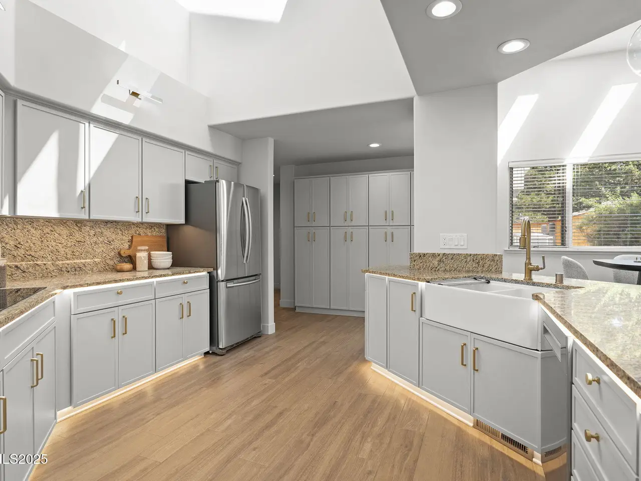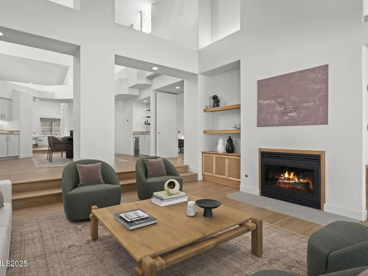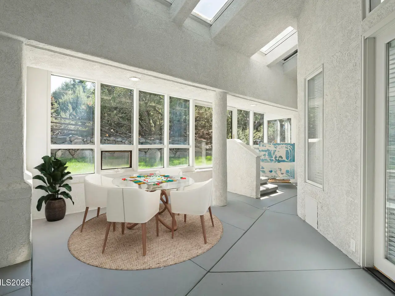 Extensively Renovated in the Heart of Caughlin Ranch. This newly reimagined custom home offers the perfect balance of outdoor entertaining and refined living. Nestled in one of Reno's most desirable neighborhoods, surrounded by miles of beautifully maintained walking and biking trails, tranquil ponds and open green space are just steps from your front door. Over the past year, this home has undergone a stunning transformation with over six hundred thousand dollars in recent renovations and improvements—every detail chosen to blend modern sophistication with the natural beauty of its setting. Soaring cathedral ceilings rise above expansive living areas anchored by two elegant fireplaces. Walls of glass and skylights fill the space with natural light, framing views of mature trees and the mountains beyond. Multiple covered patios create seamless indoor-outdoor living—ideal for hosting gatherings, enjoying a quiet morning coffee, or savoring an evening glass of wine. The stunning chef's kitchen flows effortlessly into the great room, creating a warm hub for daily living. A generous island invites conversation, while refinished cabinets, designer lighting, a premium induction cooktop, farmhouse sink, and custom pantry combine style with function, making cooking and entertaining a joy. On the main level, the oversized primary suite offers a serene retreat. Spa-like finishes include a double vanity, luxurious soaking tub, and custom shower. A remarkable two-story walk-in closet provides abundant storage and a touch of architectural drama. Upstairs, three additional bedrooms and two full bathrooms ensure comfort and privacy for family or guests. A versatile enclosed loft—complete with wet bar and beverage fridge, offers the perfect space for a home office, playroom, or additional lounge area. The exterior is equally impressive, with fresh stucco and paint, new and thoughtfully designed landscaping, and a custom wood and iron entry gate marking the entry. A lush lawn, enclosed by a privacy stucco wall, creates a secure and tranquil outdoor escape. Caughlin Ranch residents enjoy exceptional community amenities, including a recreation center, tennis courts, and swimming pool—all just moments away. With coffee shops, restaurants, top-rated schools and shopping nearby, this home offers unmatched convenience alongside its peaceful, trail-connected setting.
