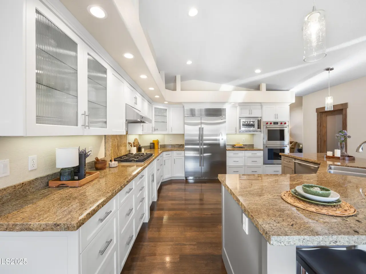 Welcome to your dream home in the prestigious gated community of Nambi Estates within Arrowcreek! This exquisitely remodeled residence boasts an array of luxurious features designed for comfort and elegance. As you enter, the thoughtfully designed addition enhances your living experience by seamlessly blending the outdoors with the indoors. Open the bi-fold doors to let in fresh air and natural light, creating an inviting ambiance for any occasion. Whether you're entertaining guests or enjoying a quiet evening, you'll love cozying up to the fireplace while watching the sunrise or the gentle snowfall outside With a spacious 1,433 sq ft garage featuring 10-foot doors, there's ample room for vehicles and storage, while inside you'll find the seller has lovingly remodeled much of the home,. Wine enthusiasts will be delighted by the climate-controlled wine cave, capable of storing up to 500 bottles, making it the perfect space to showcase your collection. The home's sophisticated technology is evident with remotely operated blinds that allow you to effortlessly adjust your ambiance. Retreat to the primary suite, featuring panoramic views of the city and a spa-like primary bathroom complete with a luxurious sauna—a true oasis after a long day. The peaceful backyard is a sanctuary, bordered by protected open space on two sides for the utmost privacy. Enjoy outdoor cooking and entertaining with a built-in BBQ and stove, all while taking in the serene surroundings. unparalleled city views right from the spacious primary suite, where you'll find ample room to create your ideal reading nook or exercise space. Imagine waking up to breathtaking vistas that inspire your day!