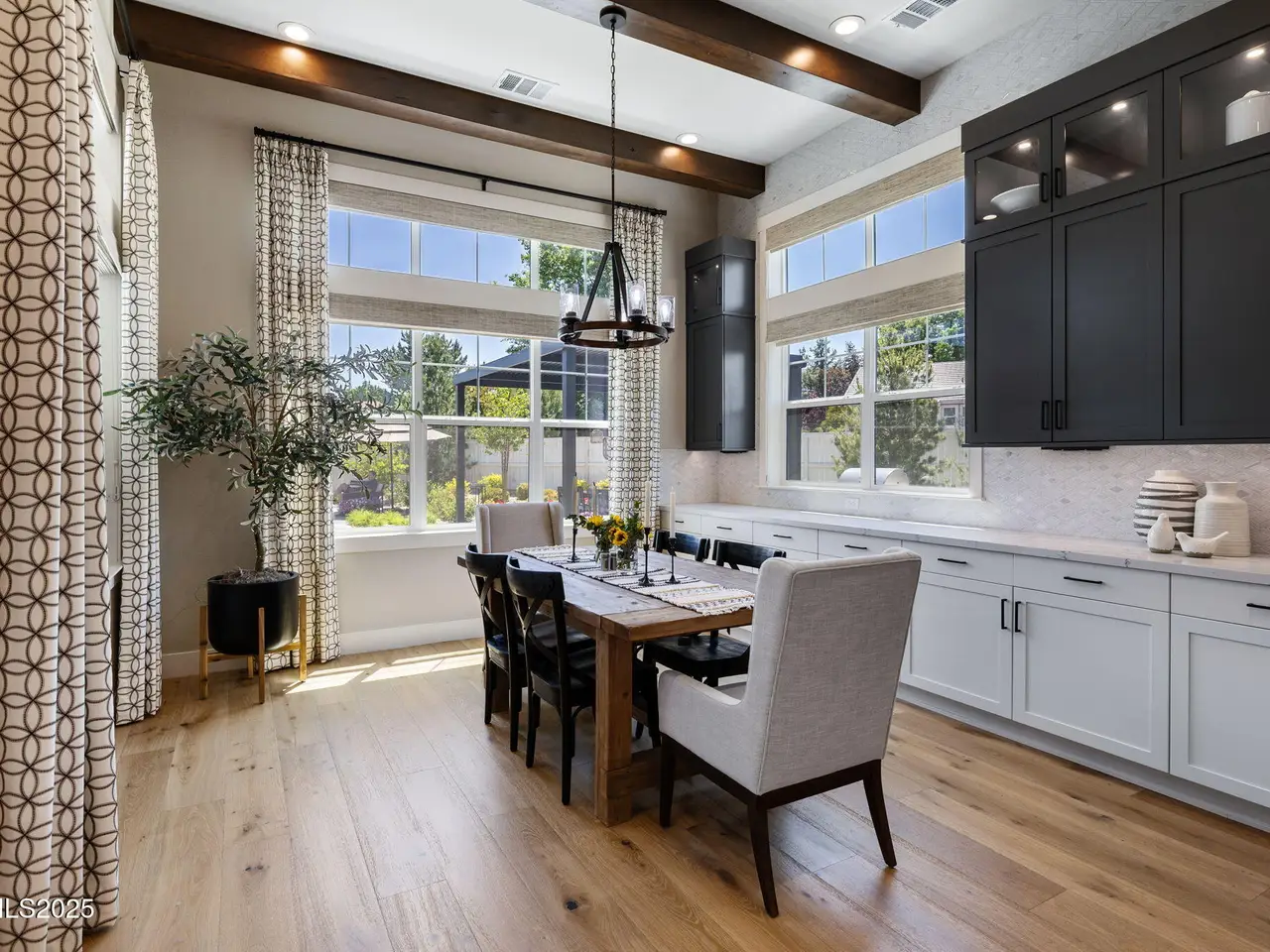 Discover the Pinnacle of Single-Level Luxury Living in the Iconic Rancharrah Estate Welcome to 208 Criollo Court—an exceptional residence nestled on one of the largest lots in the exclusive Latigo neighborhood of Rancharrah. Set on nearly 0.4 acres at the end of a private cul-de-sac, this thoughtfully designed and extensively upgraded home offers an ideal blend of elegant architecture, seamless indoor-outdoor living, and access to world-class amenities. The professionally landscaped backyard, crafted by renowned designer Dan Luke, is a private retreat built for both relaxation and entertaining. Soak in the jetted Hot Springs spa or swim against the current in your Endless Pool. Unwind beside the gas fire pit, or host dinner parties under a custom dining pavilion complete with integrated lighting and a remote-controlled shade curtain. The outdoor kitchen, equipped with a direct gas line, sits atop Trex decking and is complemented by a cascading waterfall feature, privacy structures, and raised garden beds with individual irrigation. An extended paver walkway and a side-yard access gate complete the outdoor experience. Inside, the home makes a bold impression with 16-foot ceilings and hand-crafted alder beams stretching across the entryway, great room, kitchen, and dining area. A 16-foot multi-slide glass door fully opens to the covered patio, allowing for effortless indoor-outdoor living. The great room is centered around a dramatic 60-inch Primo gas fireplace, finished with a striking metal wall surround and custom mantle. The gourmet kitchen is a dream for culinary enthusiasts, featuring a Sub-Zero refrigerator, JennAir double ovens, gas range, microwave, and dishwasher. Two-tone Yorkshire cabinetry extends into the dining area for extra storage, while quartz countertops and a full tile backsplash create a clean, modern aesthetic. Details such as a wood-wrapped island, porcelain farmhouse sink, mixer lift, roll-out drawers, and instant hot water faucet add convenience and flair. The luxurious primary suite offers a private escape with a 12-foot sliding glass door that opens to the backyard. The spa-inspired bathroom includes custom barn door entry, floating vanities with undercabinet lighting and a roll-in shower with full tile wall. A custom walk-in closet with built-in storage on all four walls completes this serene space. Bedroom one has been upgraded to feature a large soaking tub, while bedroom two includes a stylish tiled shower and wall panel accents. Throughout the home, you'll find a curated blend of hardwood, tile, and carpet flooring, custom floating nightstands, designer window treatments, and sophisticated lighting. The laundry room includes extended cabinetry, while the garage impresses with sleek Avante aluminum-glass doors, epoxy floors, a ChargePoint EV charger, and a built-in water softener. Smart technology enhances the home's function and entertainment with insulated interior walls, built-in ceiling speakers in the living room, den, primary suite, and patio, Cat 6 ethernet wiring, and ceiling Wi-Fi access points. Just steps away, the recently renovated Club at Rancharrah offers an unparalleled lifestyle. Residents enjoy access to a resort-style pool with cabanas, a full-service spa, the exclusive Nineteen 57 restaurant and bar, a state-of-the-art fitness center with group classes, a salon, sauna and steam rooms, as well as bocce and pickleball courts. The club also hosts community events, cooking classes, and seasonal activities. A short walk brings you to The Village at Rancharrah, where you'll find gourmet dining, boutique retail, wellness centers, and everyday conveniences. Located just minutes from Whole Foods, Trader Joe's, Reno-Tahoe Airport, and Bartley Ranch Park, and a short drive from Mt. Rose Ski Resort and Lake Tahoe, this home offers the perfect balance of luxury, location, and lifestyle.