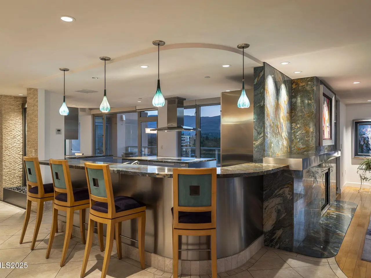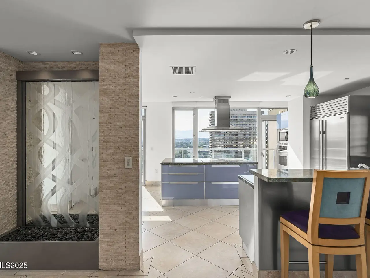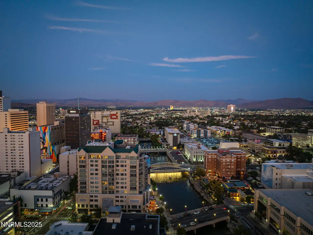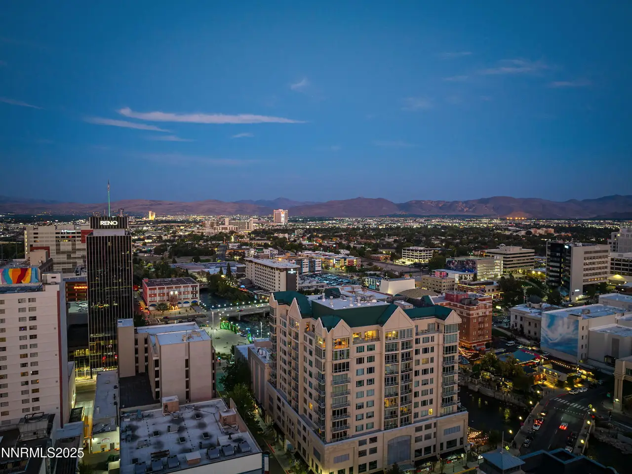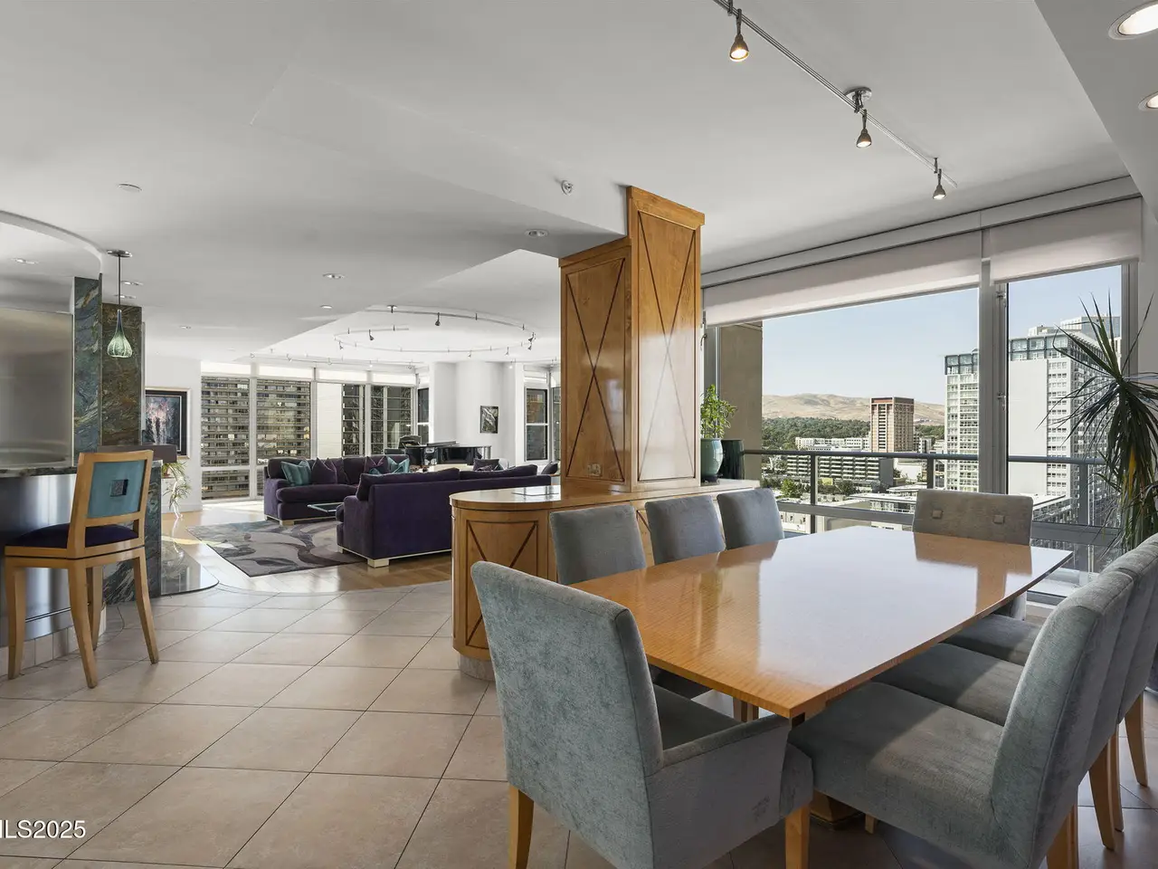 Where space meets sky: this penthouse at The Palladio offers a rare combination of size, privacy, and views seldom seen in downtown Reno. Available for the first time in nearly 20 years and one of only four penthouses in the building, this 3,066 sq ft residence blends genuine single-family scale with the convenience of lock-and-leave living. The great room at 50 N Sierra St PH13 sets the tone with maple floors, custom wood details, and a fireplace wrapped in striking Blue Louise granite—both a stunning feature and a cozy hearth. Walls of glass reach full height, bringing the horizon indoors and turning sunrises, sunsets, and city lights into part of everyday life. Two terraces extend the living space skyward, showcasing a sweeping panorama from Sierra peaks to the Truckee River and the glowing city lights. The dining room flows seamlessly from this central gathering area. Framed by windows and opening onto the terrace, it's spacious enough for long tables and celebrations, yet warm enough for daily meals. Bathed in natural light, the room invites gatherings to move easily between indoors and outdoors, with the city shimmering as a backdrop. The kitchen combines sleek design with professional-grade functionality. Italian Scavolini cabinets in a rare periwinkle hue pair with polished countertops and statement lighting. A Thermador induction cooktop, double ovens, a Miele dishwasher, and a vented hood deliver precision for the home chef. A walk-in pantry adds utility, while the oversized counter-height bar and bright breakfast nook support everything from quick mornings to dinner parties that linger. Beyond the kitchen, a dedicated wine and storage room highlights the home's exceptional livability. Here, a Sub-Zero dual-zone refrigerator holds 147 bottles, complemented by shelving and cabinetry, proving that penthouse living can offer the same capacity and practicality as a single-family home. Each ensuite bedroom is distinct. The primary suite combines comfort with elegance: heated marble floors, dual vanities, and a walk-in shower paired with a custom closet system. Wide windows frame the downtown skyline, anchoring the room in its urban setting. The secondary suite provides a peaceful retreat with a soaking tub, steam shower, dual vanities, and generous closet space. Expansive windows open to mountain views, filling the room with natural beauty. Beyond the main living areas, the home is designed for versatility and ease. A dedicated office offers built-in storage and abundant natural light, ideal for remote work or daily tasks. The laundry room features a side-by-side washer and dryer, deep cabinets, a utility sink—a practical space with thoughtful details. A powder bath with a vessel sink and rich finishes leaves a striking impression for guests. Throughout, motorized shades, integrated lighting controls, custom closets, and built-ins create a home that is both effortless and elegant. Life at The Palladio balances privacy with connectivity. With only 92 residences, the building was designed from the ground up as condominiums, featuring higher ceilings, true outdoor terraces, and thoughtful layouts. Residents enjoy secured entry with camera monitoring, two garage parking spaces accessible via fob, dedicated storage, and Reno's only infinity-edge pool suspended above the Truckee River. From this address, the best of the city is at your doorstep: Pioneer Center performances, river festivals, museums, Midtown dining, and café culture. Yet at home, quiet and privacy prevail. For buyers seeking a lock-and-leave lifestyle without sacrificing space or storage, this penthouse offers both. Beyond square footage or finishes, this residence grants a rare opportunity to live with mountain, river, and city views converging at your windows—a downtown home crafted for both ease and impact. Claim your place in Reno's skyline and experience a home where every horizon belongs to you.