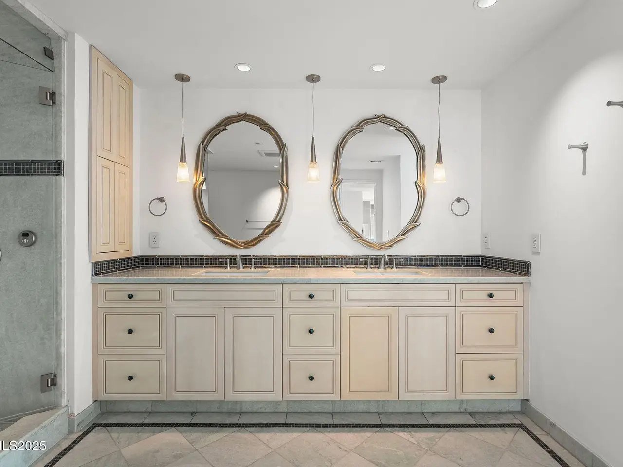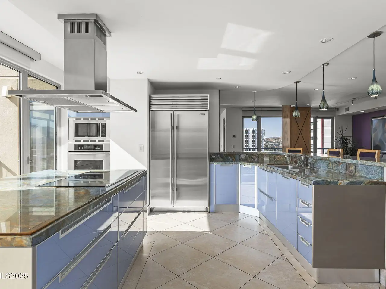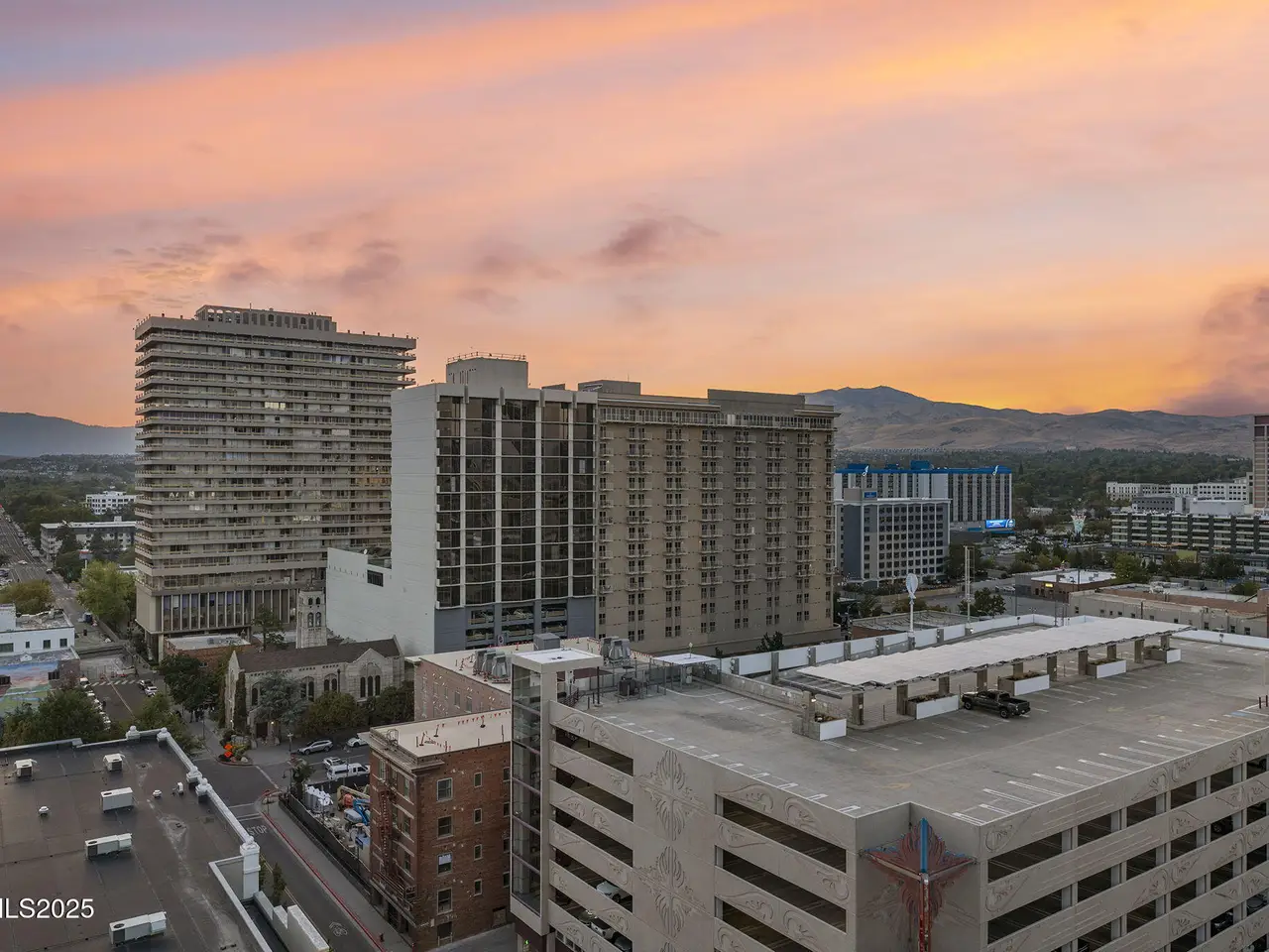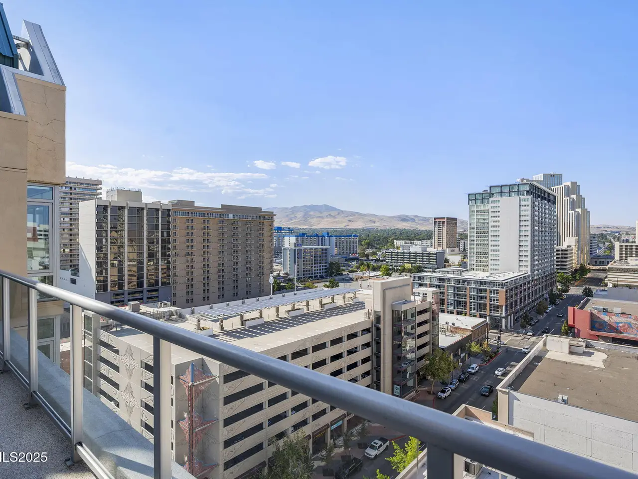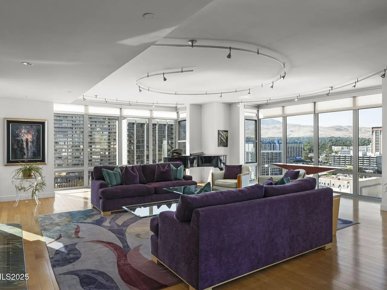 Where space meets sky: this penthouse at The Palladio offers a rare combination of size, privacy, and views seldom seen in downtown Reno. Available for the first time in nearly 20 years and one of only four penthouses in the building, this 3,066 sq ft residence blends genuine single-family scale with the convenience of lock-and-leave living. The great room at 50 N Sierra St PH13 sets the tone with maple floors, custom wood details, and a fireplace wrapped in striking Blue Louise granite—both a stunning feature and a cozy hearth. Walls of glass reach full height, bringing the horizon indoors and turning sunrises, sunsets, and city lights into part of everyday life. Two terraces extend the living space skyward, showcasing a sweeping panorama from Sierra peaks to the Truckee River and the glowing city lights. The dining room flows seamlessly from this central gathering area. Framed by windows and opening onto the terrace, it's spacious enough for long tables and celebrations, yet warm enough for daily meals. Bathed in natural light, the room invites gatherings to move easily between indoors and outdoors, with the city shimmering as a backdrop. The kitchen combines sleek design with professional-grade functionality. Italian Scavolini cabinets in a rare periwinkle hue pair with polished countertops and statement lighting. A Thermador induction cooktop, double ovens, a Miele dishwasher, and a vented hood deliver precision for the home chef. A walk-in pantry adds utility, while the oversized counter-height bar and bright breakfast nook support everything from quick mornings to dinner parties that linger. Beyond the kitchen, a dedicated wine and storage room highlights the home's exceptional livability. Here, a Sub-Zero dual-zone refrigerator holds 147 bottles, complemented by shelving and cabinetry, proving that penthouse living can offer the same capacity and practicality as a single-family home. Each ensuite bedroom is distinct. The primary suite combines comfort with elegance: heated marble floors, dual vanities, and a walk-in shower paired with a custom closet system. Wide windows frame the downtown skyline, anchoring the room in its urban setting. The secondary suite provides a peaceful retreat with a soaking tub, steam shower, dual vanities, and generous closet space. Expansive windows open to mountain views, filling the room with natural beauty. Beyond the main living areas, the home is designed for versatility and ease. A dedicated office offers built-in storage and abundant natural light, ideal for remote work or daily tasks. The laundry room features a side-by-side washer and dryer, deep cabinets, a utility sink—a practical space with thoughtful details. A powder bath with a vessel sink and rich finishes leaves a striking impression for guests. Throughout, motorized shades, integrated lighting controls, custom closets, and built-ins create a home that is both effortless and elegant. Life at The Palladio balances privacy with connectivity. With only 92 residences, the building was designed from the ground up as condominiums, featuring higher ceilings, true outdoor terraces, and thoughtful layouts. Residents enjoy secured entry with camera monitoring, two garage parking spaces accessible via fob, dedicated storage, and Reno's only infinity-edge pool suspended above the Truckee River. From this address, the best of the city is at your doorstep: Pioneer Center performances, river festivals, museums, Midtown dining, and café culture. Yet at home, quiet and privacy prevail. For buyers seeking a lock-and-leave lifestyle without sacrificing space or storage, this penthouse offers both. Beyond square footage or finishes, this residence grants a rare opportunity to live with mountain, river, and city views converging at your windows—a downtown home crafted for both ease and impact. Claim your place in Reno's skyline and experience a home where every horizon belongs to you.