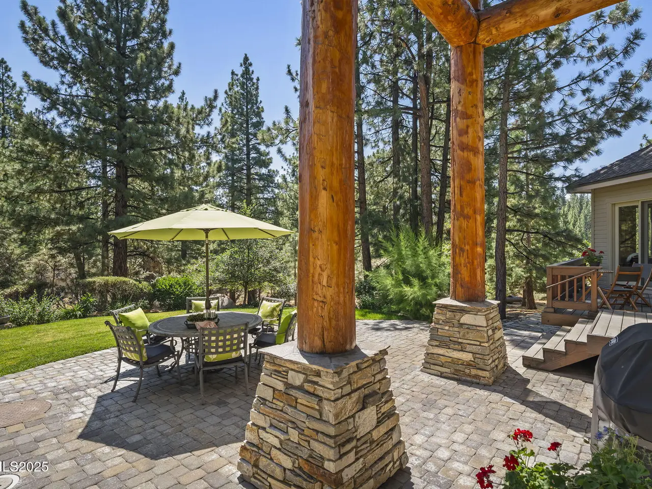 Stunning Galena Forest home on .86 acres. Beautiful curb appeal with long paver driveway, towering pines, Douglas Fir log and honey ledge stone accents, and redwood siding. The great room design has a wonderful ambience - like your own private lodge with 23 foot high ceiling, barrel vaulted with redwood, and log accents. Amazing floor to ceiling honey ledge stone fireplace with large hearth. Kitchen is fully remodeled with leathered granite, GE Monogram ovens and fridge, Wolf range, wine fridge, breakfast bar and dining nook overlooking the grounds. Gorgeous Brazilian Cherry flooring in main living areas, plus hickory and travertine. Primary suite with deck access, large walk in closet, luxurious bath with dual vanities. Enjoy two additional ensuite bedrooms and a large office with closet or 4th bedroom. The oversized laundry doubles as butlers pantry with tons of storage. Oversized 1552 square ft garage can easily fit 4 cars, also has walk in shop. Charming sunny yard with patio and firepit, stone walkways, gorgeous trees, and mountain views from the lower seating area. Large basement area great for storage. Other features include 2 furnaces and two A/C units, wood casement windows, and whole house water purification system. This is the first time on the market for this original owner who has been lovingly maintained for the property. Short drive to Reno-Tahoe Airport, Lake Tahoe, and all conveniences. Mt. Rose ski resort just up the road about 10 minute drive!