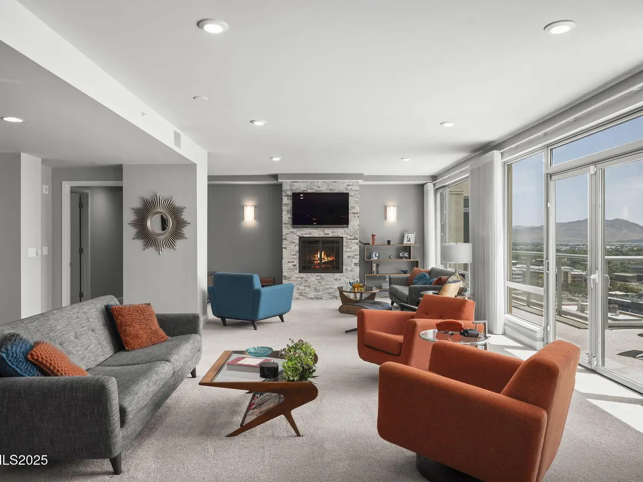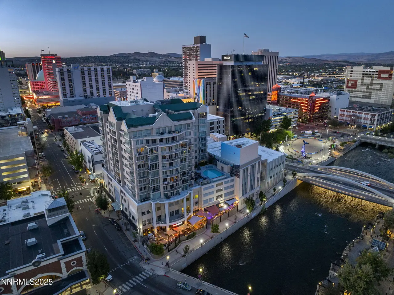 Live Above It All in Reno's "Global Headquarters" — The Palladio Penthouse. Experience the pinnacle of luxury urban living in this rare and breathtaking Penthouse at 50 N Sierra Street— in the heart of the city's vibrant downtown. One of only four exclusive penthouse residences in the prestigious Palladio, this 3-bedroom, 3.5-bath home is a masterclass in elegance, privacy, and elevated design. Step off your private express elevator—a luxury reserved for this unit—and into an expansive retreat where sophistication meets comfort. Hickory hardwood floors, polished granite surfaces, and exquisite stone finishes set the tone, while an upgraded fireplace and custom feature wall with built-in bar and uplighting create a perfect atmosphere for entertaining or relaxing in style. The sun-drenched great room is designed for gatherings large or small, anchored by a striking kitchen island bar that invites culinary creativity and connection. Extend the experience outdoors on the protected balcony spanning the full length of the unit, offering panoramic vistas of downtown Reno, the Sierra Nevada, and the flowing Truckee River. The primary suite is a serene escape with luxurious finishes, while the junior suite and additional bedroom offer flexibility for guests or home office needs. With three side-by-side parking spaces, ample storage, and a private storage unit, this home offers unmatched convenience. Located in the heart of Reno's walkable downtown, The Palladio places you steps from fine dining, art galleries, theaters, local parks, and cultural landmarks. Wake up to river views, walk to your favorite café, and end the day with a city skyline sunset—all from your new perch in Penthouse 15. This is more than a home. It's a statement. It's Reno redefined.