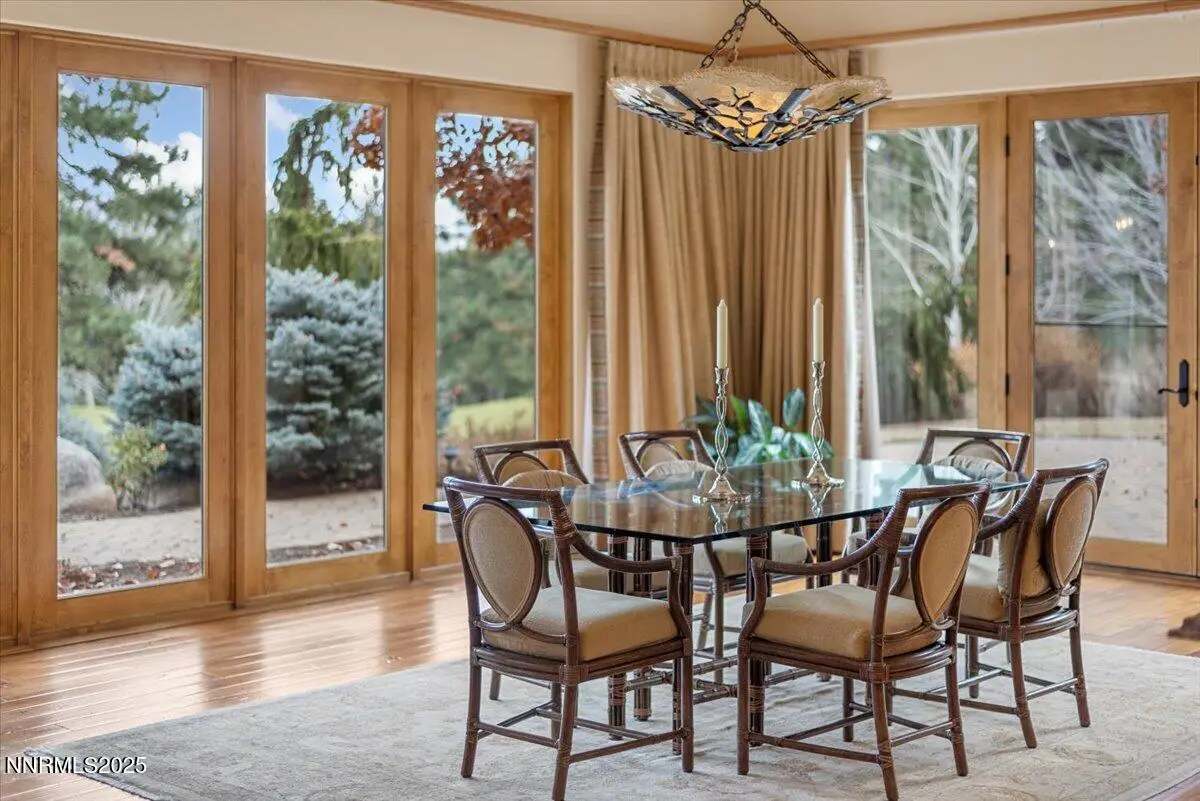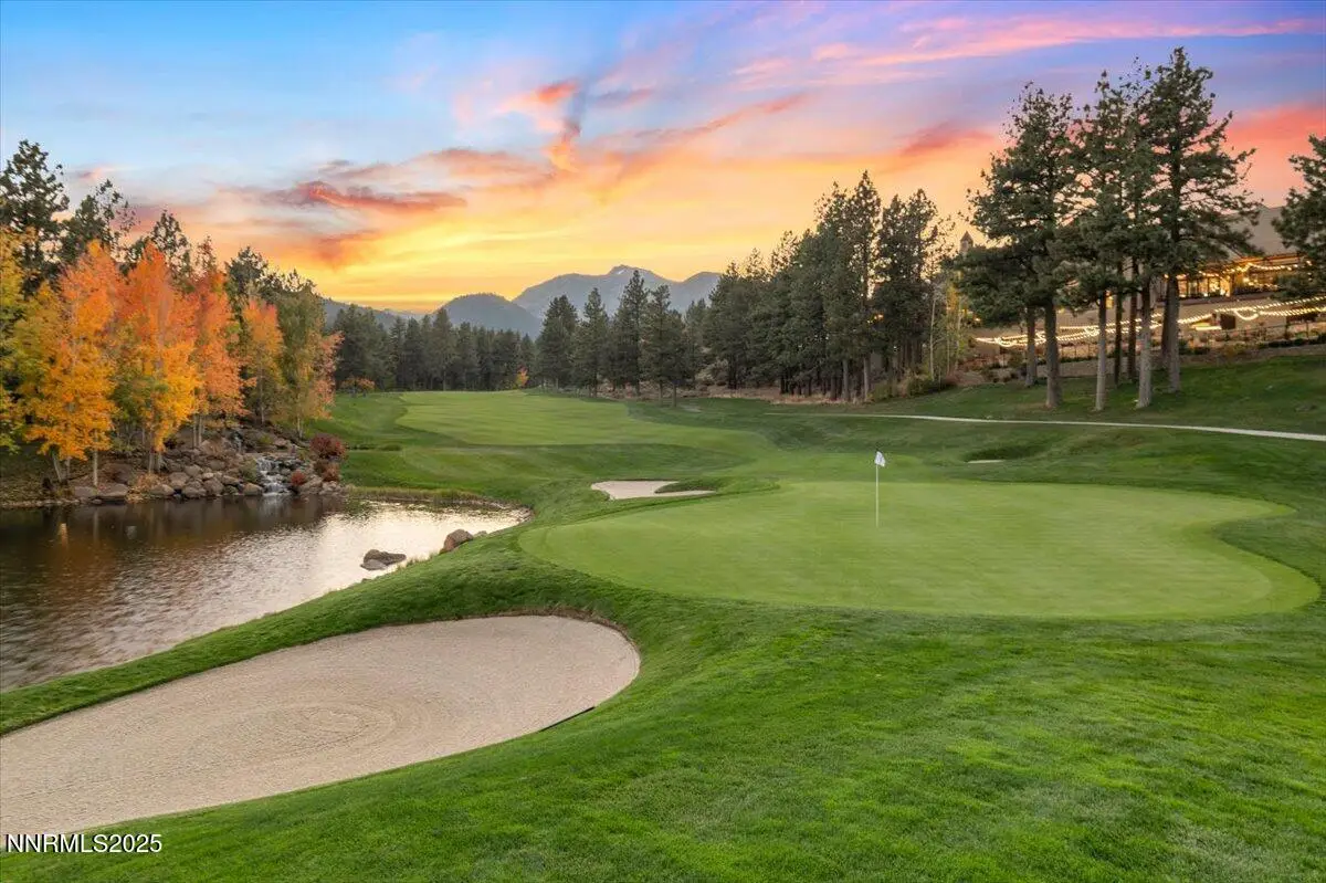 Nestled in the heart of Montreux Golf & Country Club, Reno's most prestigious gated community, 20000 Bordeaux is a timeless single-level estate offering unrivaled privacy and sophistication. Perfectly positioned on a rare double lot along Galena Creek, the property showcases spectacular views of four fairways framed by towering pines and park-like landscaping. Crafted with architectural excellence by Steve Sederquist and built by Neil Adams, this 7,888 sq. ft. residence blends elegant European-inspired design with effortless livability. Inside, soaring ceilings, wide hallways, and expansive windows create a light-filled, open layout ideal for entertaining and everyday comfort. The gourmet kitchen features Sub-Zero, Wolf, and Miele appliances, custom copper hood, and butler's pantry, opening to a warm family room with golf course views. The 930-bottle temperature-controlled wine room is a collector's dream. Luxurious finishes include ¾" solid cherry hardwood and marble floors, natural ledge stone, and 8' alder doors throughout. The primary suite is a serene retreat with steam shower, whirlpool tub, and unobstructed eastern course views. Three additional en-suite bedrooms, and an exercise room provide flexibility and comfort. The heated 2,300 sq. ft. garage offers capacity for 5+ vehicles and extensive storage. Just one block from the Montreux Clubhouse and amenities, this extraordinary estate epitomizes luxury living in Northern Nevada's finest golf community.