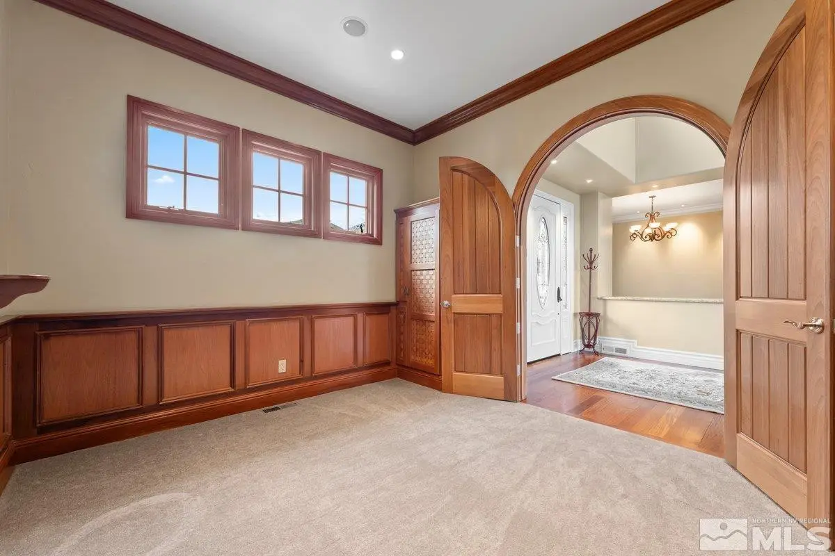 Nestled in the distinguished gated Arrowcreek community, discover a well-appointed estate with unparalleled appeal, where no details have been overlooked. From the breathtaking cityscape views to the idyllic perspectives of nearby mountains and two pro-level golf courses, this sprawling property was designed for comfortable luxury, offering ample space throughout while maintaining accessibility and privacy for all household members. Inside the manor, be greeted by one of Renos finest villas and a main level featuring a fully equipped chef's kitchen, formal dining room, and great room boasting a wet bar, fireplace, and custom cabinetry. The primary level also showcases a parlor room, full-sized laundry room, and three generous ensuite bedrooms, all three of which feature gas fireplaces. Inside an expansive primary suite, admire tranquil views spanning from bedroom to bathroom, where you'll appreciate a stunning fireplace, enormous walk-in closet, custom built-ins, luxurious sunken tub, and attached private office. Accessible by elevator or stairs, the vast lower level highlights an exceptional area for entertaining and day-to-day living with the finest touches, including a wine cellar, four bedrooms (three of which are ensuite), full laundry room, and an incredibly spacious living area that's perfect for gathering with the whole family. Take an elevator ride, or the stairs, to the homes top level and enjoy a suite that includes a spacious walk-in closet, private bathroom, gas fireplace, full-sized office with custom built-ins, and access to an upper balcony, where youll be awestruck by the panoramic views. This property includes both an attached four-car garage and detached three car garage, providing exceptionally flexible areas for car enthusiasts, golf simulator aficionados, athletes-in-the-making, and more. The estate also boasts ample storage space, a Generac generator, fire sprinklers around the home's exterior, a Lutron system, and more. This radiant retreat isnt just a place to call home, its the embodiment of extraordinary living inside and out. Come and enjoy all of the amenities that living in Arrowcreek provides! The Residence Center includes 3 swimming pools, year-round hot tub, fitness room with equipment, tennis courts, pickleball courts, basketball court, bbq and picnic areas, coffee bar and meeting rooms. There are also paved walking trails and parks throughout the development. Arrowcreek is home to a phenomenal 36 hole private country club with different membership opportunities. Located only approximately 35 minutes from Lake Tahoe and around 20 minutes from the Reno/Tahoe Airport. (Disclosure, a portion of the home is virtually staged.)