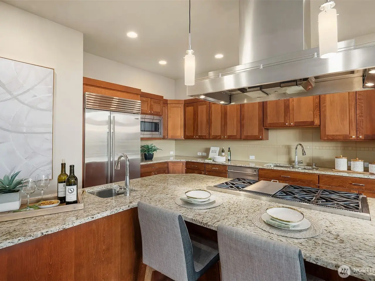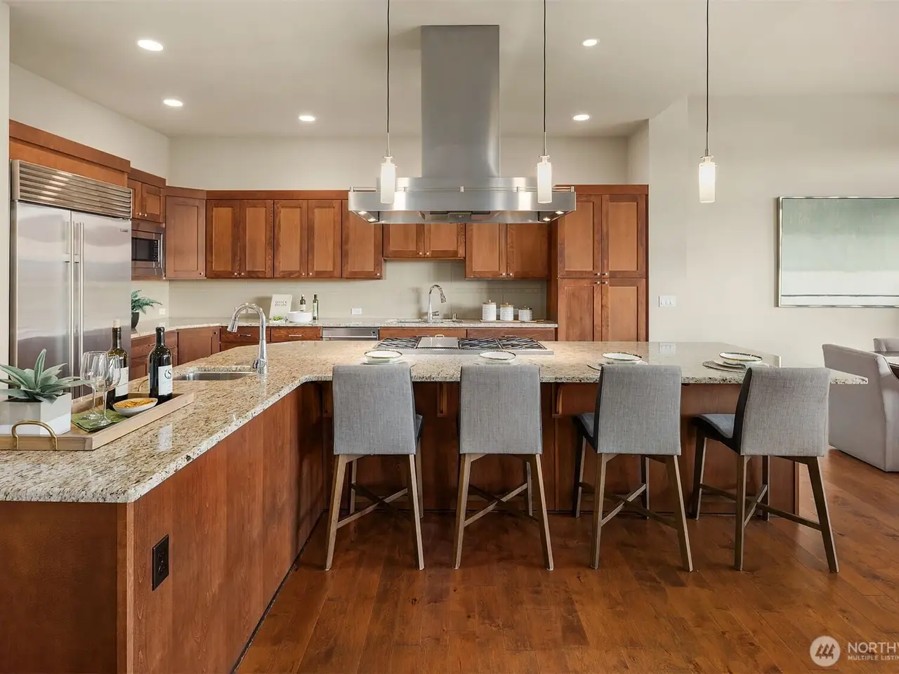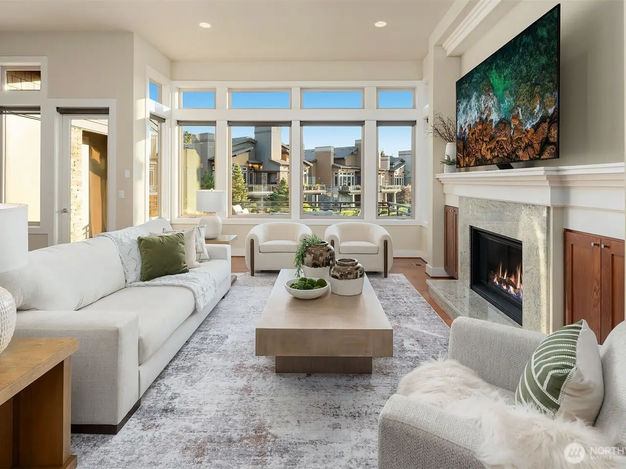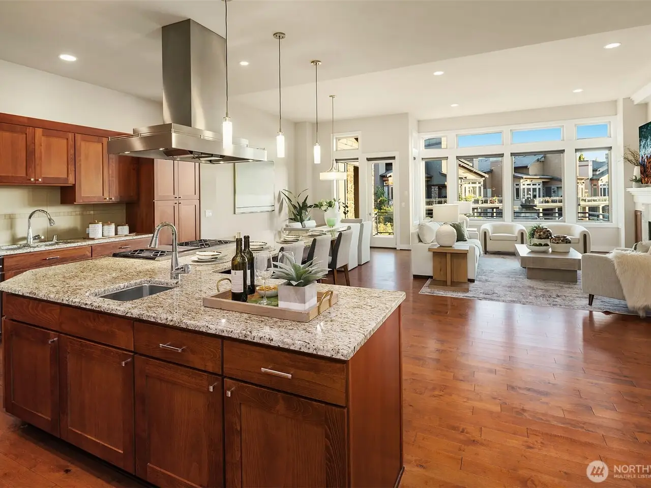 Gorgeous Barbee Mill townhome nestled on the shores of Lake Washington w/views of the lake & beautiful sunsets. Property features large windows designed to maximize sunlight & views. Floor plan includes a spacious great room, tall ceilings, a bonus room & custom finishes throughout. There are decks or patios on each level for indoor-outdoor living. The interiors feature high-end finishes; the backyard is fully fenced w/landscaping & access to the lake along a waterfront path. The owner's clubhouse provides indoor & outdoor kitchens, fire pits, waterfront seating, and a community dock. Activity trails available throughout the property & May Creek. The location is 5 miles from Bellevue w/ convenient access to I-405, SeaTac, shopping & dining.