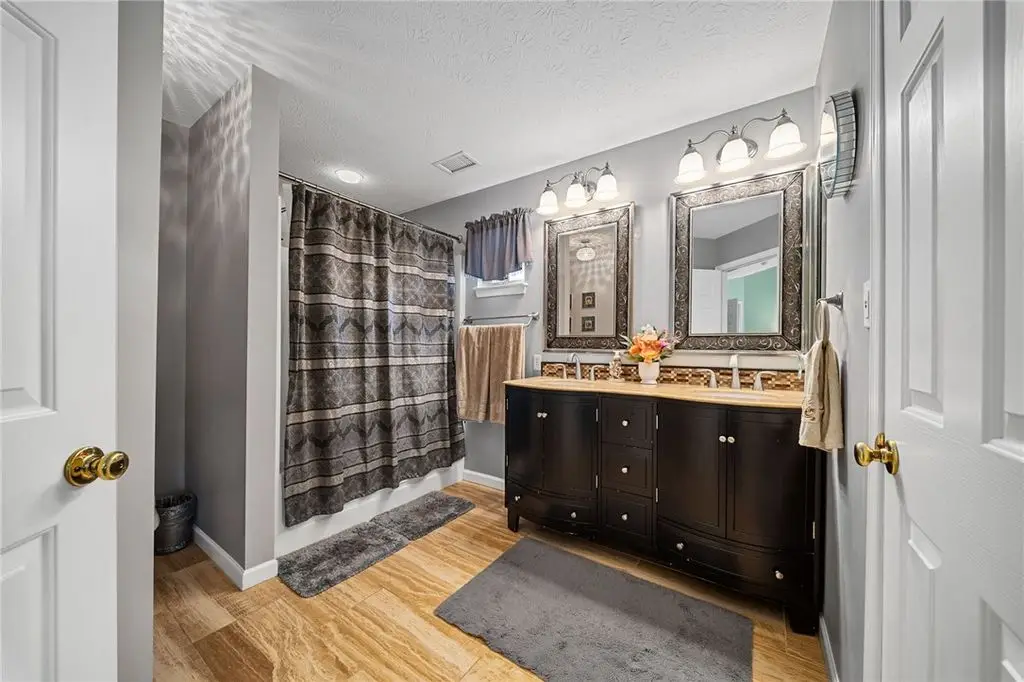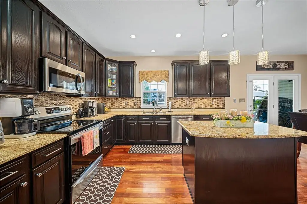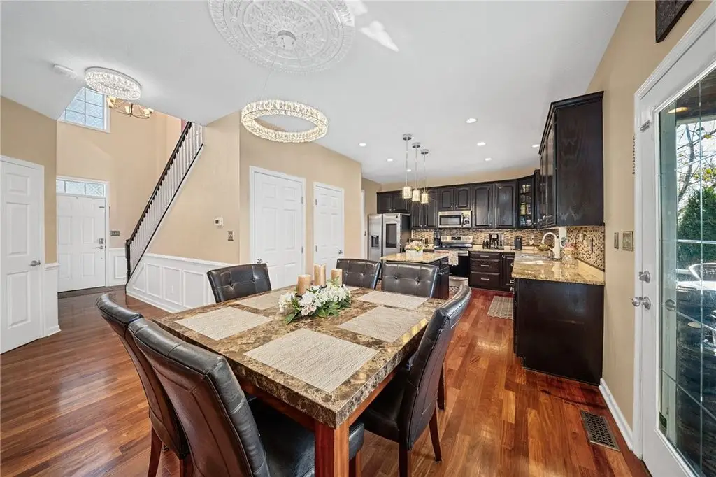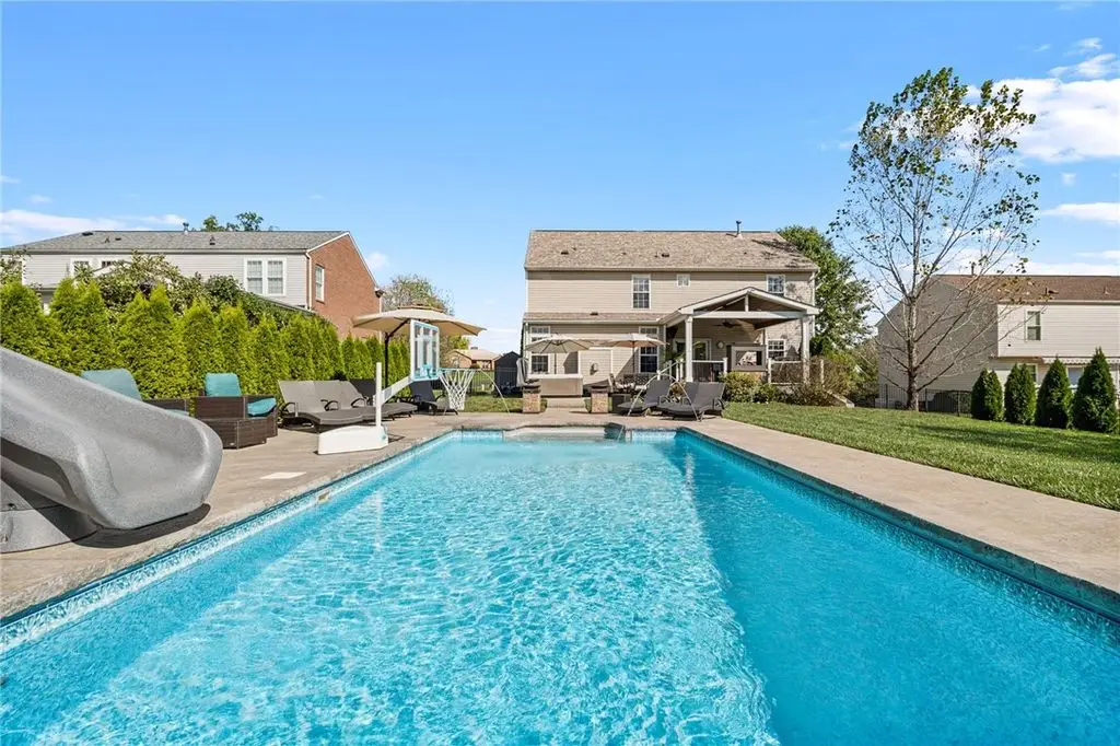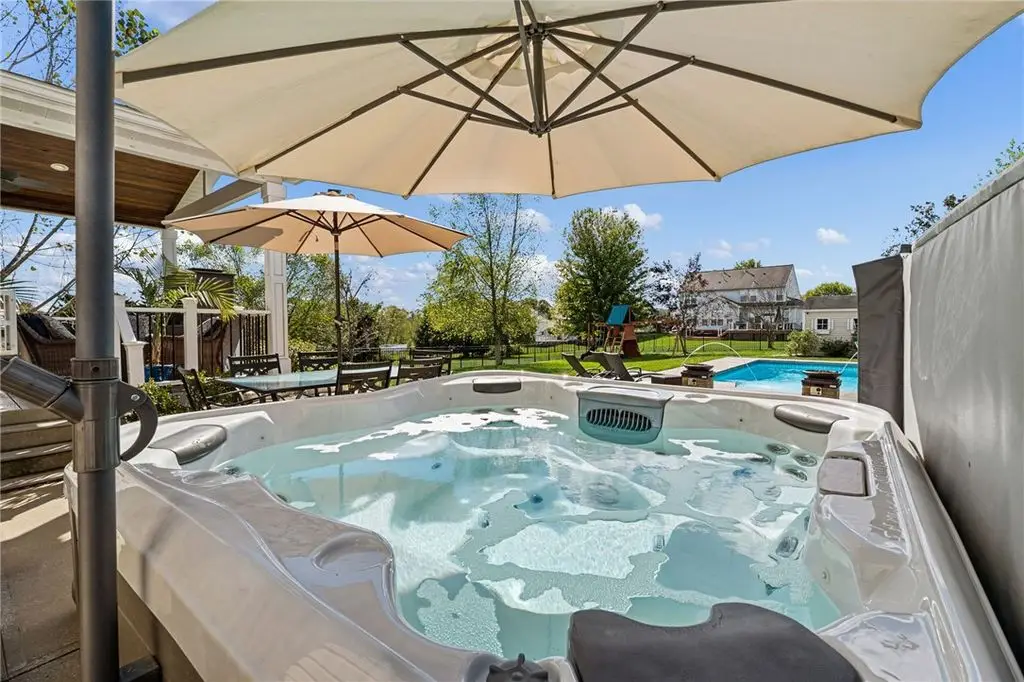 Beautifully updated 4-bed, 2.5-bath home with a finished basement and exceptional outdoor living space. The kitchen features granite counters, stainless appliances, and a casual dining area opening to a covered composite deckC/B?B=perfect for entertaining or relaxing. Step outside to your private retreat with a large pool with customizable lights and water feature, stamped-concrete patio, year-round hot tub, and privacy trees surrounding the fully fenced backyard. Inside, the formal dining room offers a tray ceiling and oversized bay window, while the finished basement provides flexible space for a home gym, game room, or theater. Two sheds add extra storage for pool gear and tools. The attached two-car garage gives easy access to the kitchen and expands the lower level. Thoughtfully maintained with modern updates throughout, this home delivers comfort, function, and a true resort-style lifestyle just minutes from shopping, dining, and easy access to 910/8/76.