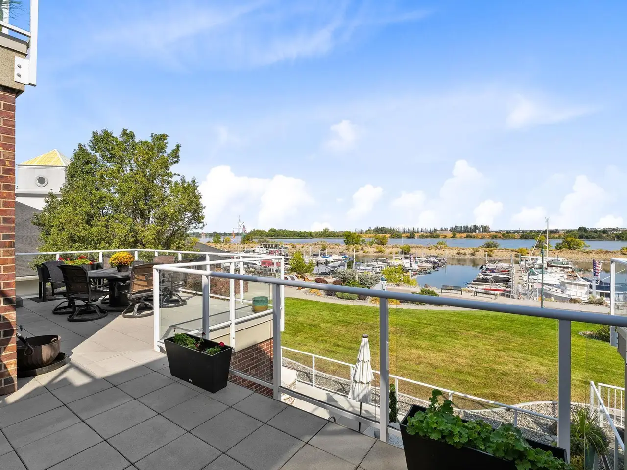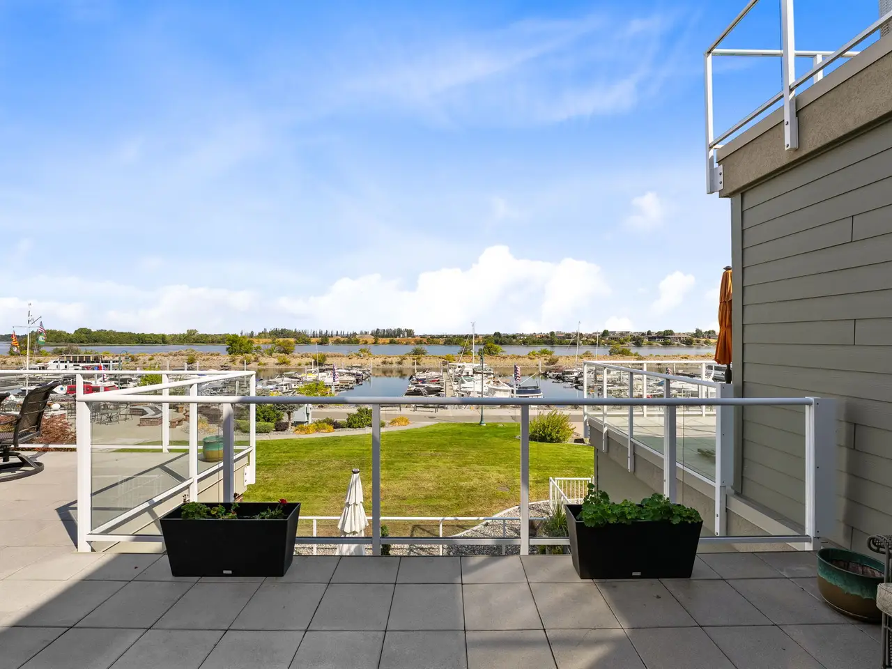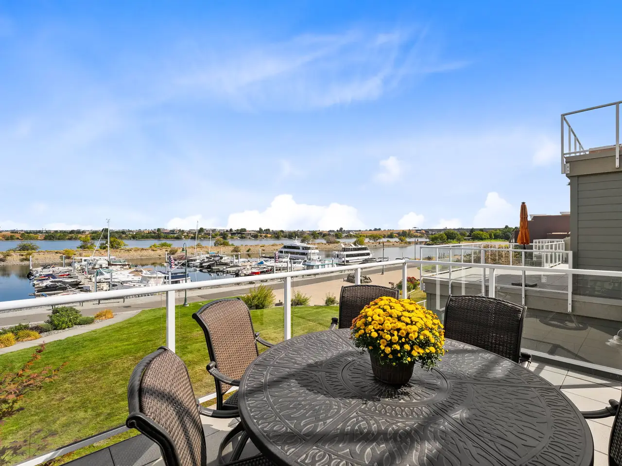 Welcome to The Moorings at Columbia Point - Tri-Cities premier destination with million-dollar views! This exclusive, single-level end unit condo offers unmatched marina and riverfront views, upscale finishes, and a lifestyle that blends comfort with class. Step inside and feel the elegance immediately. A welcoming entry features coffered ceilings with cove lighting, setting the tone for the thoughtful design throughout this spacious 3-bedroom plus flex room home. The gourmet kitchen is a true showstopper, featuring quartz counters, full-height tile backsplash, under-cabinet lighting, and a premium appliance package including a Filli Bertazzoni Italia induction cooktop, GE Cafe double wall ovens, wine fridge, and compactor. The oversized walk-in pantry includes a fridge/freezer combo. Designed for effortless entertaining, the kitchen opens to a casual dining area, a formal dining room, and an expansive great room with a tile surround gas fireplace and custom built-ins. Sliding glass doors lead to a private waterfront balcony with automatic blinds, offering panoramic views of the Columbia River. The owner’s retreat offers private balcony access and a spa-style bathroom featuring a soaking tub, full-tile walk-in shower with bench, bidet, oversized vanity with granite counters, and a custom walk-in closet. The two secondary bedrooms also feature large custom walk-in closets, while the family room offers versatility and could be a dedicated home office, study, or guest room. A huge 12x11 storage room is tucked off the oversized laundry room (washer and dryer included), and the home is complete with a central vacuum system and an attached two-car garage below with additional storage. Additional highlights include- direct elevator access directly to the condo, golf course next door, and close proximity to shopping, parks, and freeway access. You'll also enjoy access to the 9.5-mile paved riverfront trail just below. This low-maintenance, lock-and-leave lifestyle is everything you've been waiting for. Experience luxury waterfront living, where every detail has been carefully curated, and million-dollar views greet you daily. Plus, you're just a short walk to Tri-Cities top restaurants including Anthony's, Budd's, and Perch Restaurant. Don't miss your chance to own a slice of waterfront paradise - schedule your private tour today!