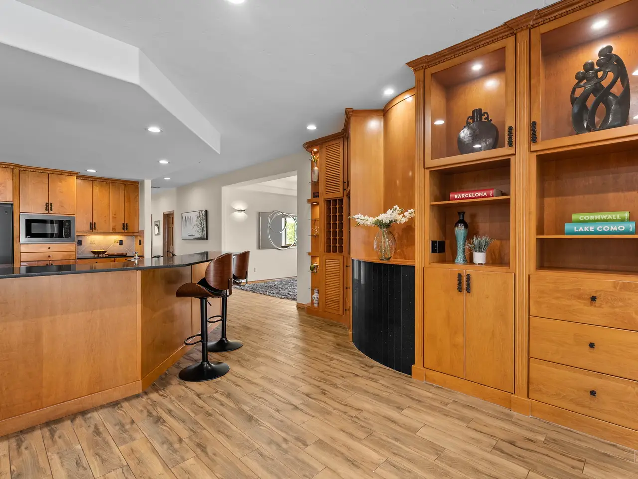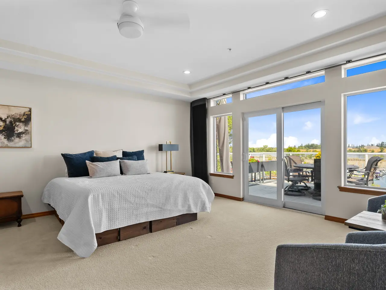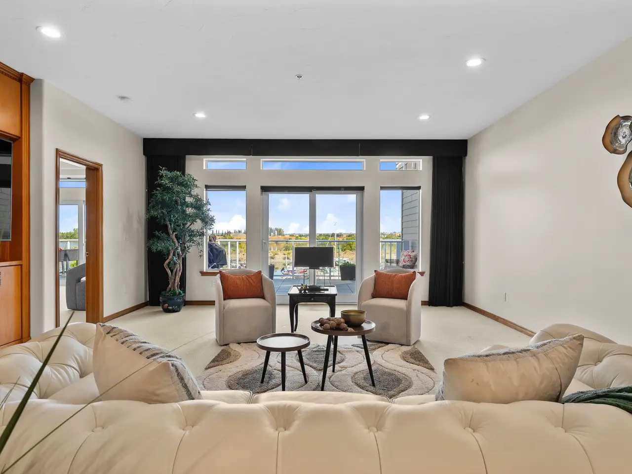 Welcome to The Moorings at Columbia Point - Tri-Cities premier destination with million-dollar views! This exclusive, single-level end unit condo offers unmatched marina and riverfront views, upscale finishes, and a lifestyle that blends comfort with class. Step inside and feel the elegance immediately. A welcoming entry features coffered ceilings with cove lighting, setting the tone for the thoughtful design throughout this spacious 3-bedroom plus flex room home. The gourmet kitchen is a true showstopper, featuring quartz counters, full-height tile backsplash, under-cabinet lighting, and a premium appliance package including a Filli Bertazzoni Italia induction cooktop, GE Cafe double wall ovens, wine fridge, and compactor. The oversized walk-in pantry includes a fridge/freezer combo. Designed for effortless entertaining, the kitchen opens to a casual dining area, a formal dining room, and an expansive great room with a tile surround gas fireplace and custom built-ins. Sliding glass doors lead to a private waterfront balcony with automatic blinds, offering panoramic views of the Columbia River. The owner’s retreat offers private balcony access and a spa-style bathroom featuring a soaking tub, full-tile walk-in shower with bench, bidet, oversized vanity with granite counters, and a custom walk-in closet. The two secondary bedrooms also feature large custom walk-in closets, while the family room offers versatility and could be a dedicated home office, study, or guest room. A huge 12x11 storage room is tucked off the oversized laundry room (washer and dryer included), and the home is complete with a central vacuum system and an attached two-car garage below with additional storage. Additional highlights include- direct elevator access directly to the condo, golf course next door, and close proximity to shopping, parks, and freeway access. You'll also enjoy access to the 9.5-mile paved riverfront trail just below. This low-maintenance, lock-and-leave lifestyle is everything you've been waiting for. Experience luxury waterfront living, where every detail has been carefully curated, and million-dollar views greet you daily. Plus, you're just a short walk to Tri-Cities top restaurants including Anthony's, Budd's, and Perch Restaurant. Don't miss your chance to own a slice of waterfront paradise - schedule your private tour today!