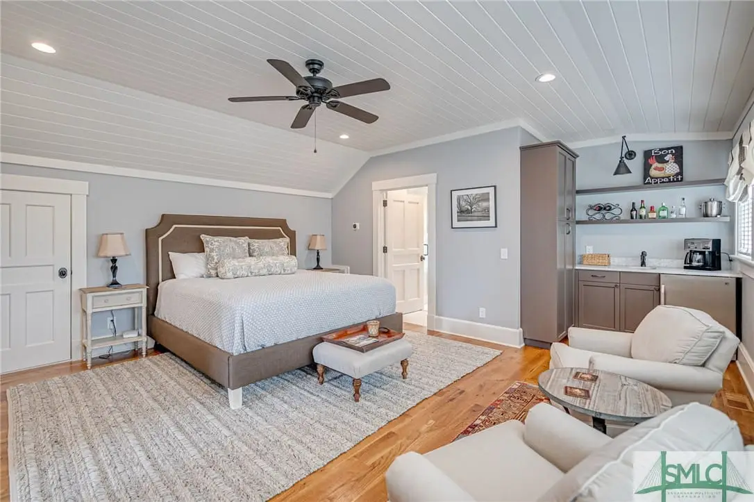 Welcome to the prestigious Ford Field & River Club. Situated on 2.3 acres directly on Lake Clara, within close proximity of the historic Main House, Ogeechee River and award winning Pete Dye golf course. This home exudes charm and luxury. The primary suite is a true retreat, featuring the beautiful vistas Ford embodies. Additional highlights include a thoughtfully renovated living space, office, chef's kitchen, wine cooler, secondary range with refrigeration and freezer storage. A separate fully conditioned garage any car enthusiast would appreciate. Above the garage is a suite fit for any guest, you may want to host. Outdoors are beautifully landscaped grounds, complete with hardscape terraces, centuries year old live oak trees, a potting shed and an Oyster House built for outdoor entertainment for friends and family to enjoy. Welcome home.