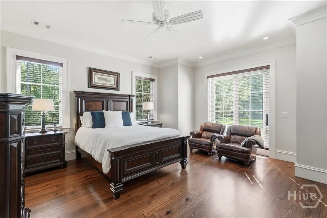 Tucked within this exclusive community, this 4-bed, 4-full & 2-half-bath home offers an extraordinary blend of comfort, character, and craftsmanship. Designed with entertaining in mind, the heart of the home showcases a spacious kitchen, an elegant dining area, and a full sports bar, perfect for hosting gatherings. Primary suite is privately situated on the main level with access to the serene backyard. Dual walk-in closets and a spa-inspired bathroom create a sense of everyday luxury. Upstairs, 3 additional bedrooms each feature their own ensuite baths, and one enjoys a private balcony overlooking the lush grounds. A built-in bunk nook adds charm, while a detached carriage house provides a 2-car garage, golf cart bay and the footprint for future guest quarter. Surrounded by evergreens and set in one of the most peaceful corners of Ford Field & River Club, this residence is as idyllic as it is impressive. A perfect blend of elegance, creativity, and timeless Lowcountry living.