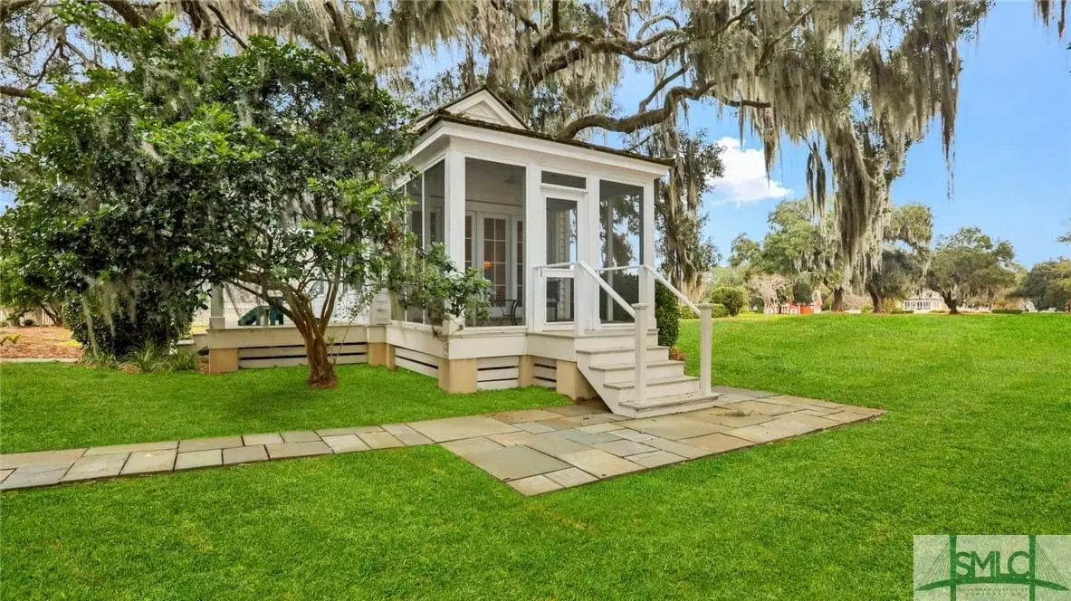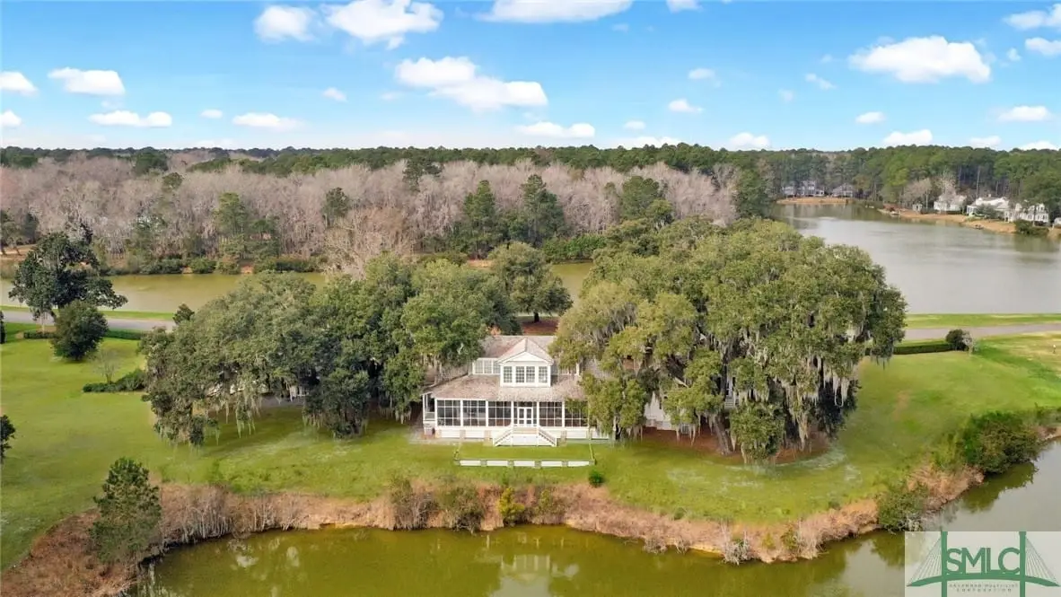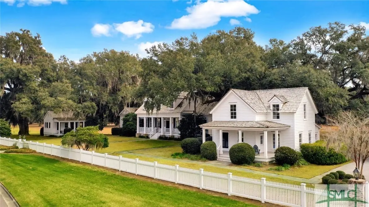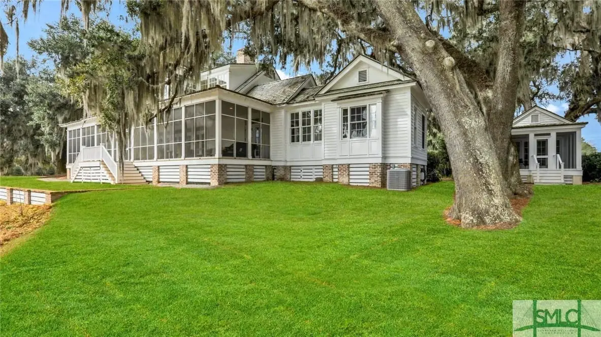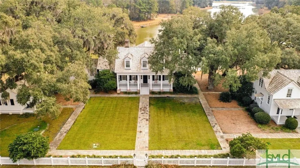 Discover the epitome of Low Country charm in this quintessential Ford Field and River Club residence, offering serene views of Lake Dye from its welcoming covered front porch. This open-concept home is designed for seamless living, with expansive views of Lake Sterling gracing the main living areas. The gourmet kitchen, equipped with high-end appliances and a breakfast bar, overlooks a cozy living room featuring a fireplace and built-in shelving. Beyond the kitchen, the dining room is enveloped in natural light, framed by three walls of windows. The main house boasts 3 ensuite bedrooms, with the primary suite offering a retreat with dual sinks, a separate shower, and a soaking tub. Enjoy outdoor living on the spacious screened-in back porch. Adding to the charm, two adjacent guest cottages provide additional bed and bath accommodations. Residents can indulge in the Ford Field and River Club's exclusive private community amenities, enhancing a lifestyle of comfort and elegance.