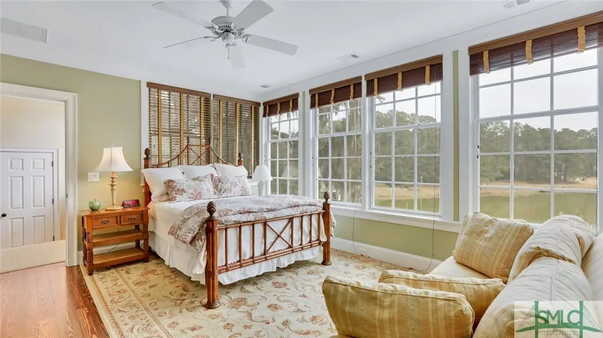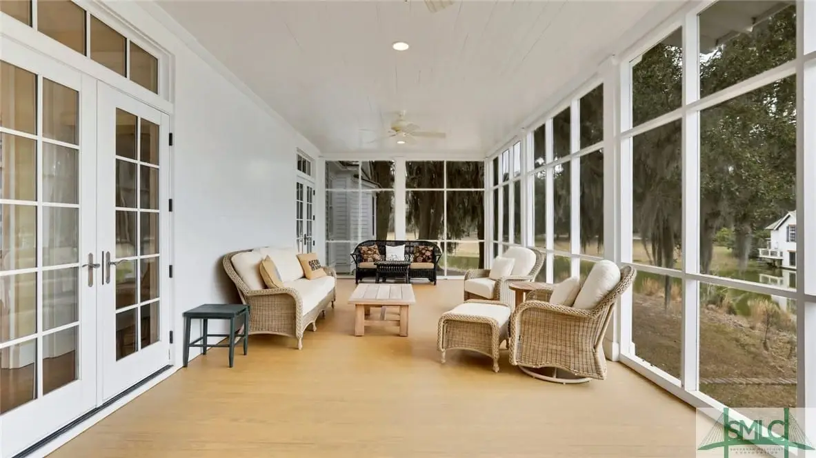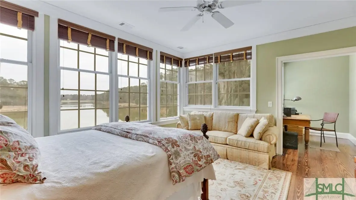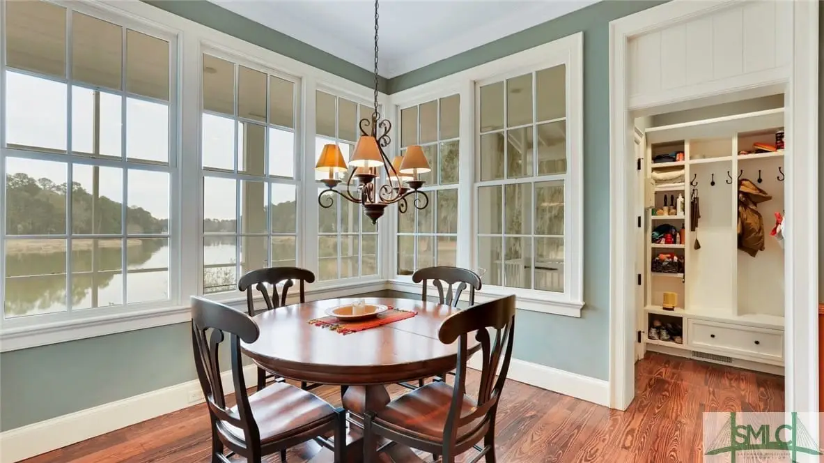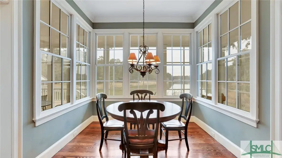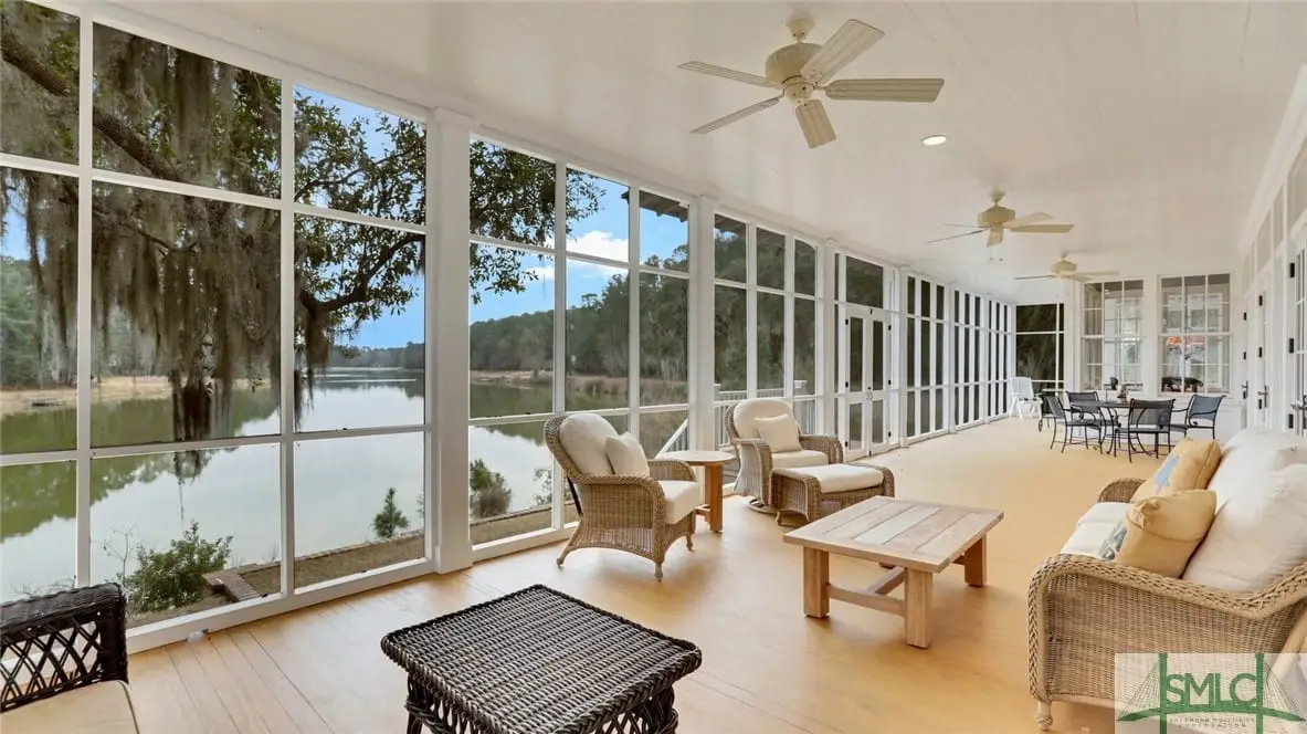 Discover the epitome of Low Country charm in this quintessential Ford Field and River Club residence, offering serene views of Lake Dye from its welcoming covered front porch. This open-concept home is designed for seamless living, with expansive views of Lake Sterling gracing the main living areas. The gourmet kitchen, equipped with high-end appliances and a breakfast bar, overlooks a cozy living room featuring a fireplace and built-in shelving. Beyond the kitchen, the dining room is enveloped in natural light, framed by three walls of windows. The main house boasts 3 ensuite bedrooms, with the primary suite offering a retreat with dual sinks, a separate shower, and a soaking tub. Enjoy outdoor living on the spacious screened-in back porch. Adding to the charm, two adjacent guest cottages provide additional bed and bath accommodations. Residents can indulge in the Ford Field and River Club's exclusive private community amenities, enhancing a lifestyle of comfort and elegance.