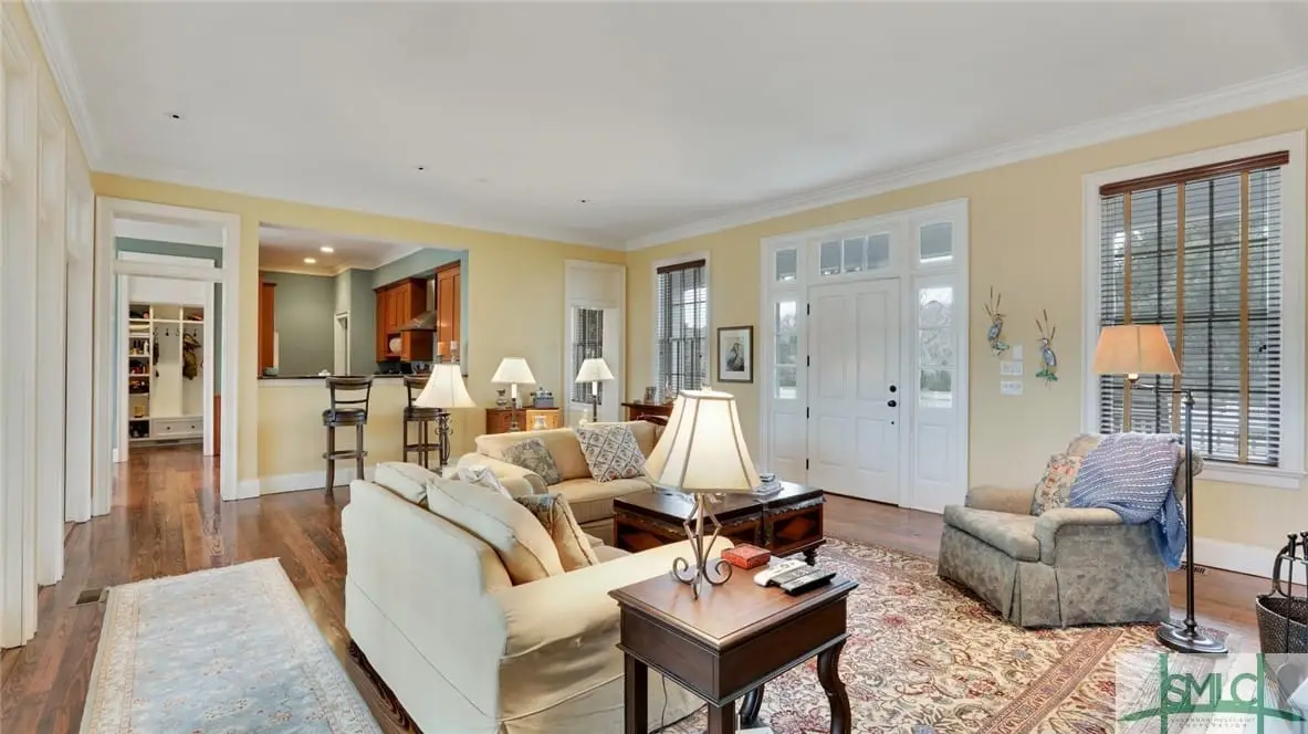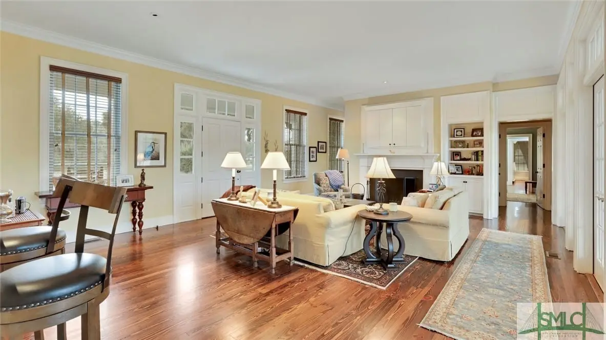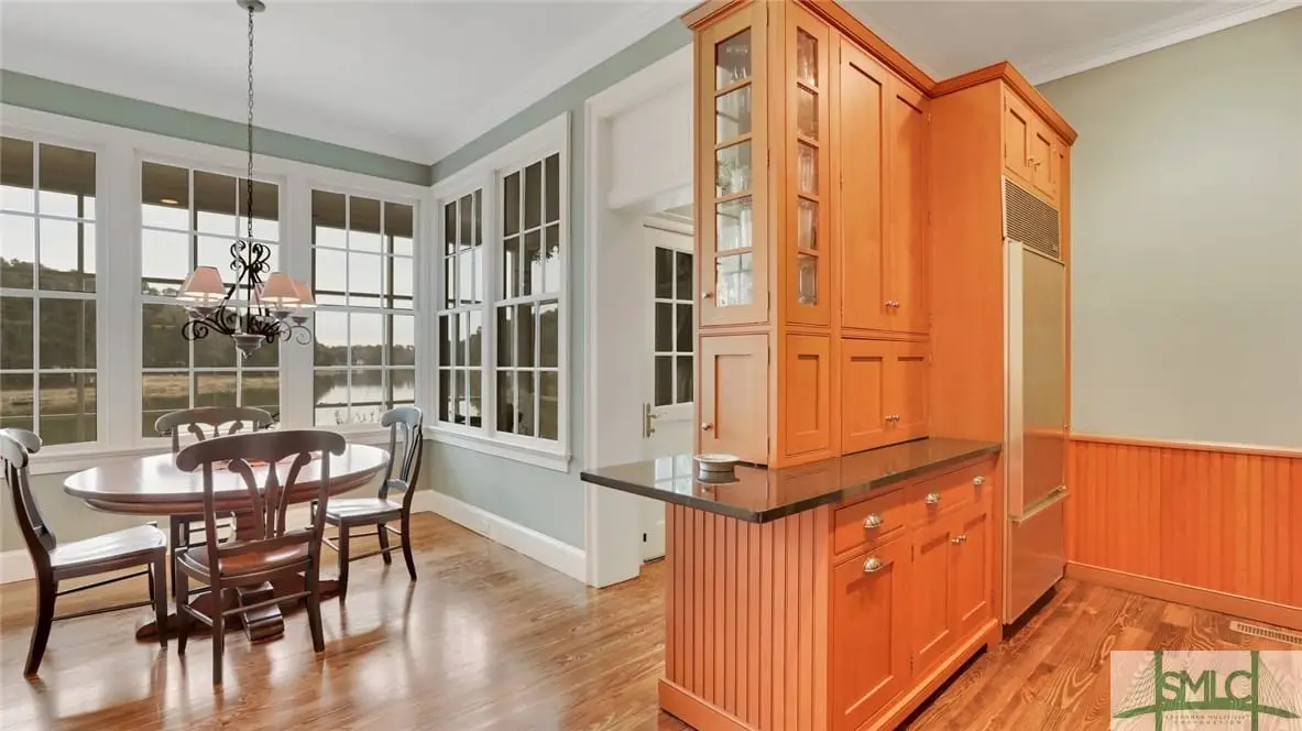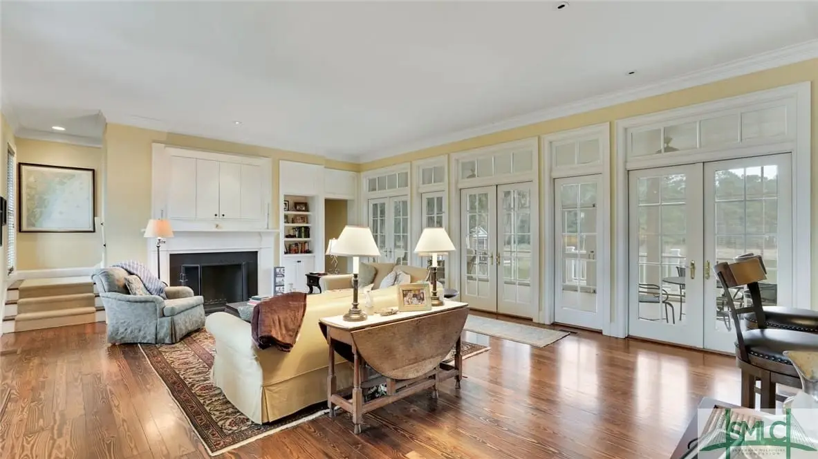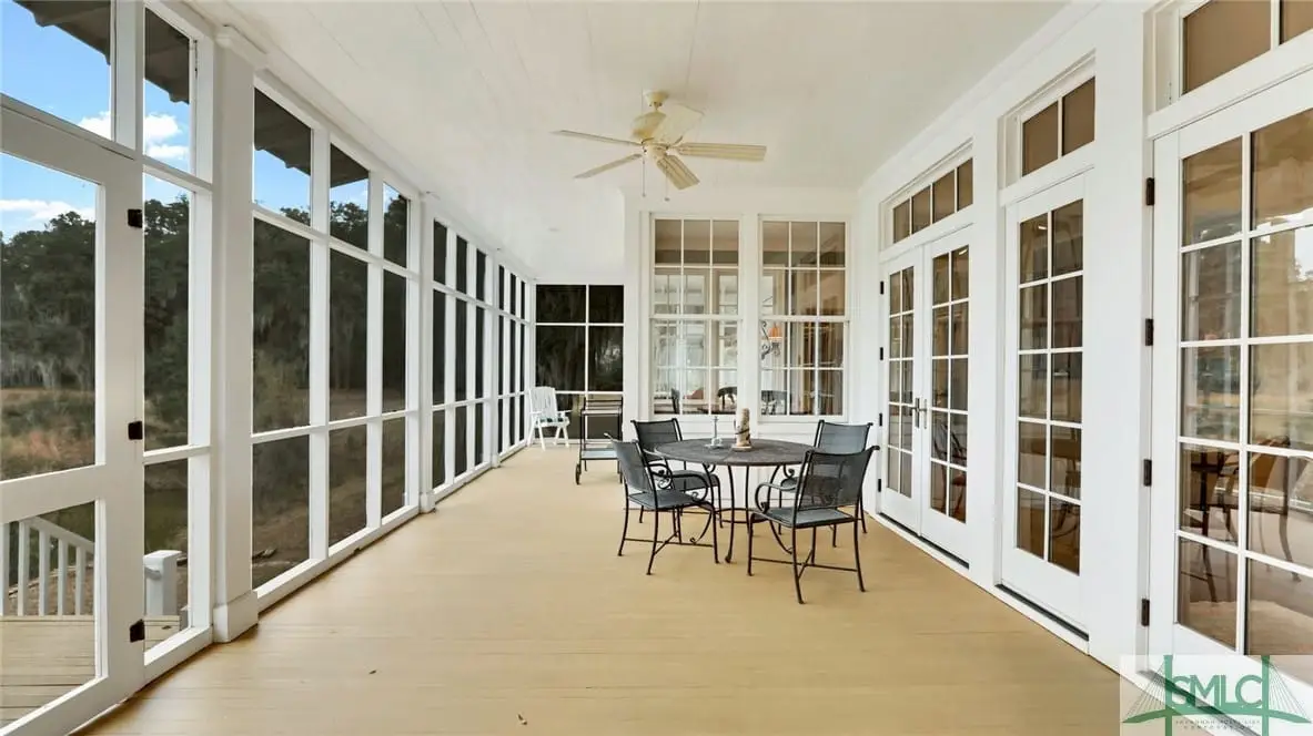 Discover the epitome of Low Country charm in this quintessential Ford Field and River Club residence, offering serene views of Lake Dye from its welcoming covered front porch. This open-concept home is designed for seamless living, with expansive views of Lake Sterling gracing the main living areas. The gourmet kitchen, equipped with high-end appliances and a breakfast bar, overlooks a cozy living room featuring a fireplace and built-in shelving. Beyond the kitchen, the dining room is enveloped in natural light, framed by three walls of windows. The main house boasts 3 ensuite bedrooms, with the primary suite offering a retreat with dual sinks, a separate shower, and a soaking tub. Enjoy outdoor living on the spacious screened-in back porch. Adding to the charm, two adjacent guest cottages provide additional bed and bath accommodations. Residents can indulge in the Ford Field and River Club's exclusive private community amenities, enhancing a lifestyle of comfort and elegance.