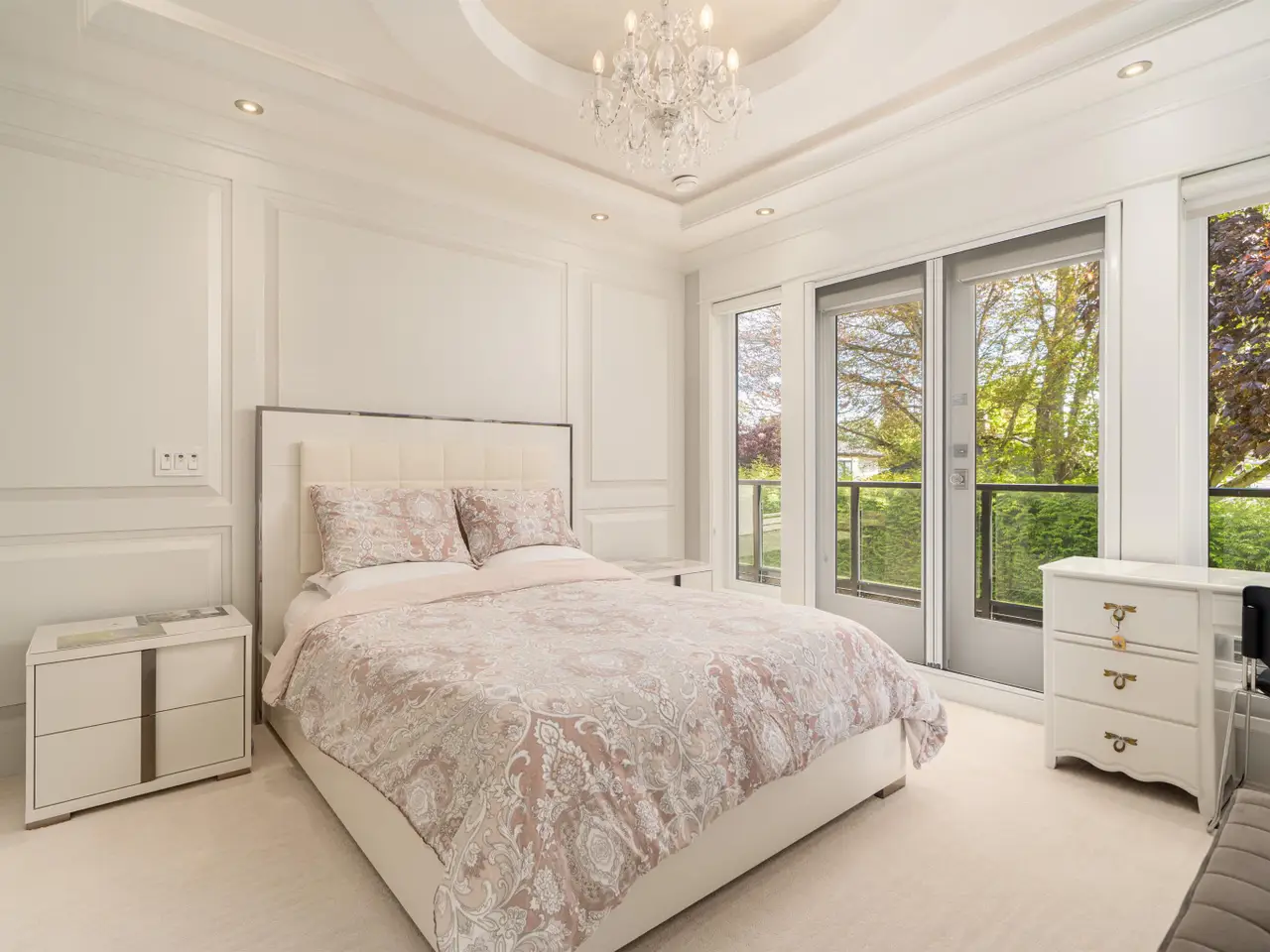 Better than new! Stunning custom home in prestigious Broadmoor. Open-concept design with soaring ceilings in elegant living/dining areas, feature walls, and Schonbek lighting. Gourmet kitchen with premium cabinets, marble counters, and top-tier Sub-Zero & Wolf appliances. Upscale plumbing fixtures, including smart Toto toilet. Main floor media room with ensuite doubles as guest room. Upstairs offers two spacious master suites plus two cozy bedrooms. Huge private deck—perfect for gatherings. Durable diamond-shaped asphalt shingle roof. Smart home system adds comfort and security. Meticulously built for discerning buyers. Walk to top schools, parks, transit, shops, and more. School catchments: Maple Lane Elementary & Steveston-London Secondary.