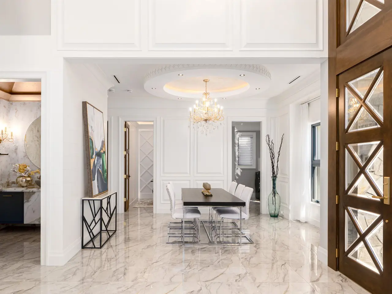 Elegant and luxurious custom home in the prestigious Granville area! North–South facing with a grand foyer featuring a stunning circular ceiling design and artistic wall accents. Italian marble flooring throughout, adorned with dazzling chandeliers. Spacious family room boasts a soaring vaulted ceiling, custom marble wall panel, and a warm fireplace. Gourmet kitchen with European marble countertops, top–tier Miele appliances, and premium cabinetry. Two master bedrooms, one with an expansive sundeck; all four upstairs bedrooms include walk-in closets. Legal suite below. Smart home system with motorized curtains, A/C, HRV, Hikvision intercom. Enjoy a fully equipped media room with wet bar, plus a private sauna. A true masterpiece for the discerning buyer!
