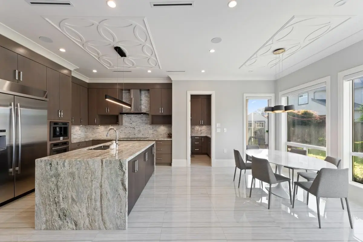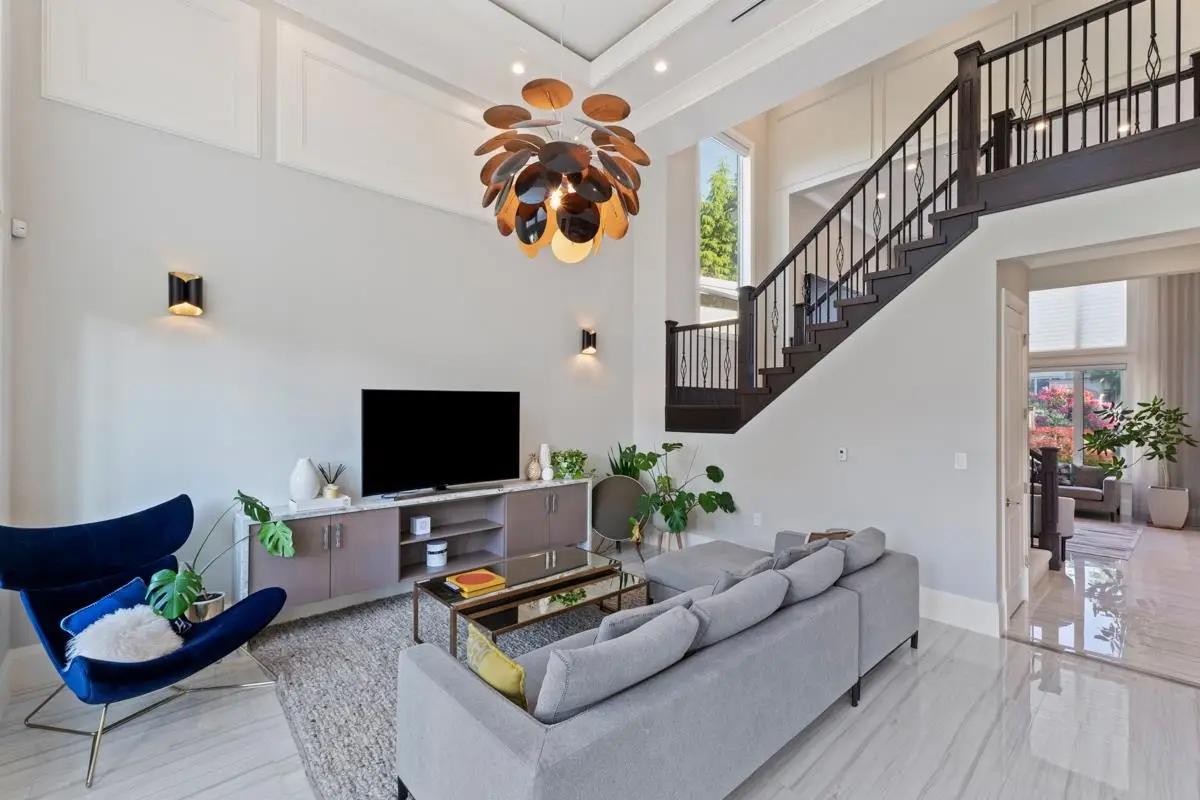 Modern French-inspired home in Richmond's prestigious Riverdale. Offers 5 beds & 6 baths, all bedrooms with ensuites, including one on the main level for added flexibility. Features a grand double-height family room, dedicated media room perfect for movie nights or karaoke, a spacious entertaining kitchen with premium built-in appliances, plus a separate wok kitchen for the culinary enthusiast. The luxurious primary suite includes a spa-like French-inspired bathroom, huge walk-in closet & private balcony. Efficient upper-level layout ensures comfort for the whole family. Well-maintained, sunny backyard ideal for kids & pets. Enjoy a private yet convenient lifestyle near Richmond Centre, top schools, parks, shops & restaurants—perfect for growing families or multi-generational living.